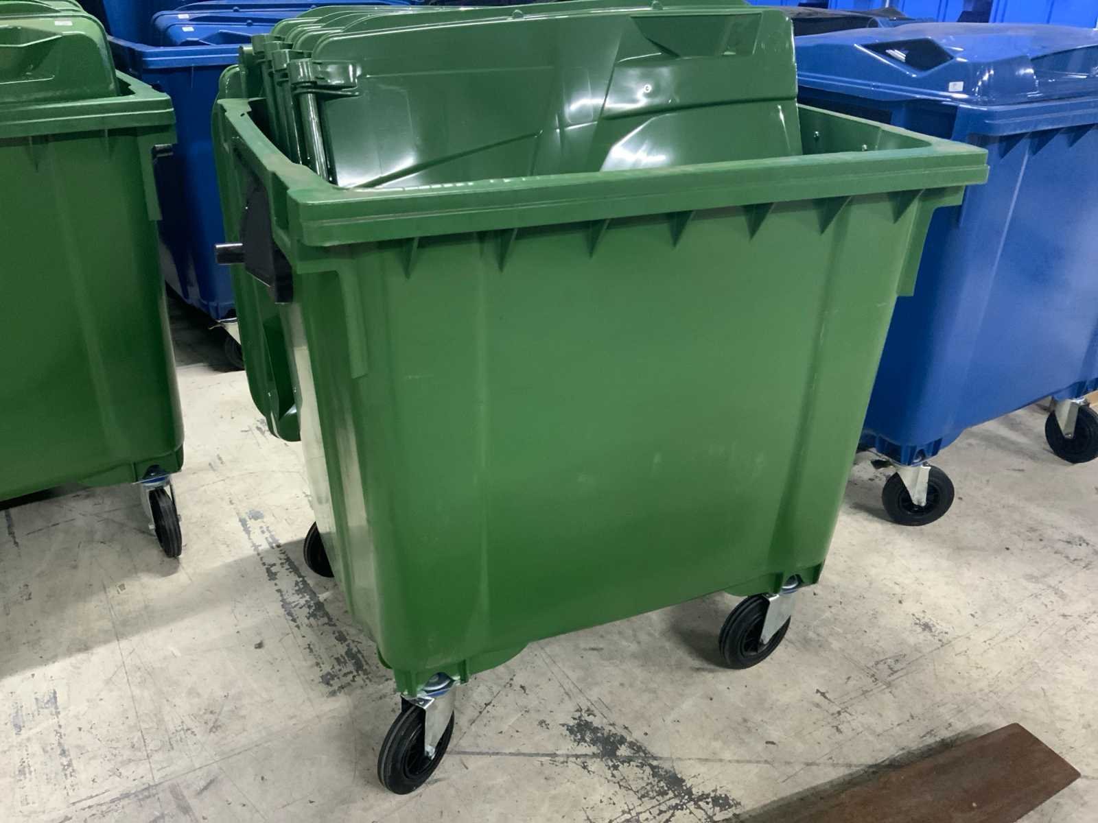 DIN opname. Voorzien van zwenkwielen geremd en stop. “Ongebruikt” Merk: Plastic Gogic Type: 1100 liter Totale afmeting L: 1200mm Totale afmeting Breedte: 1050mm Totale afmeting Hoogte: 1350mm