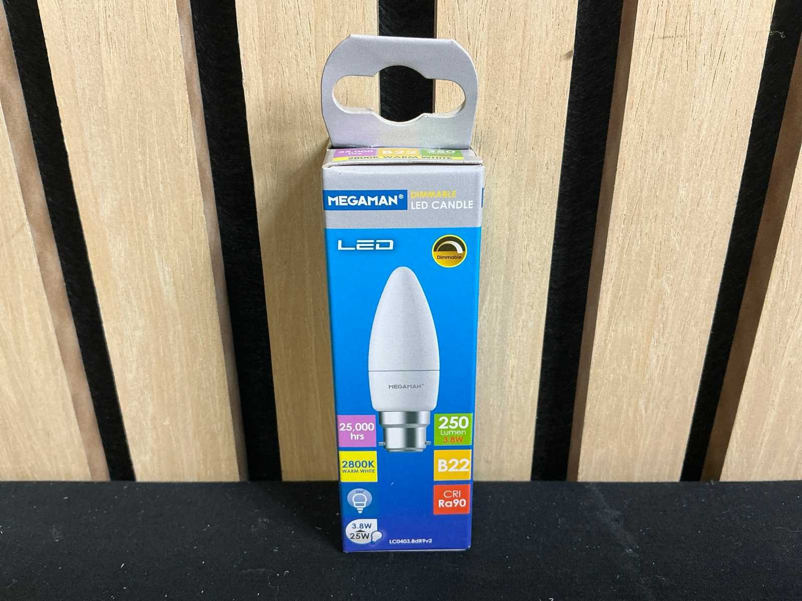 Product zit ongebruikt in de originele verpakking. Merk: Megaman Model: MM9997 Energielabel: A+ Fitting: B22 Dimbaar: Ja Wattage: 3,8W Kleurtemperatuur: 2800k
