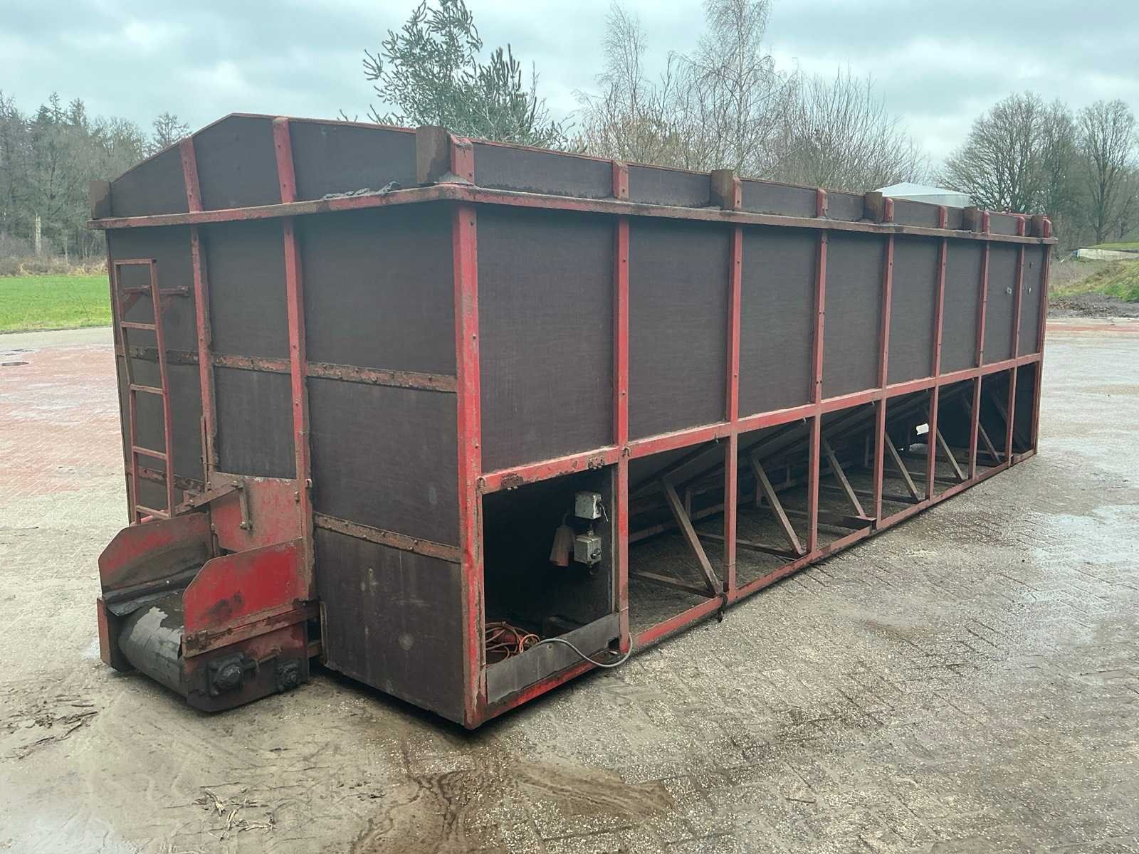 Voorzien van: transportband in de bunker (onderlosser), verdeelstuk Totale afmeting L: 8100mm Totale afmeting Breedte: 2550mm Totale afmeting Hoogte: 2200mm