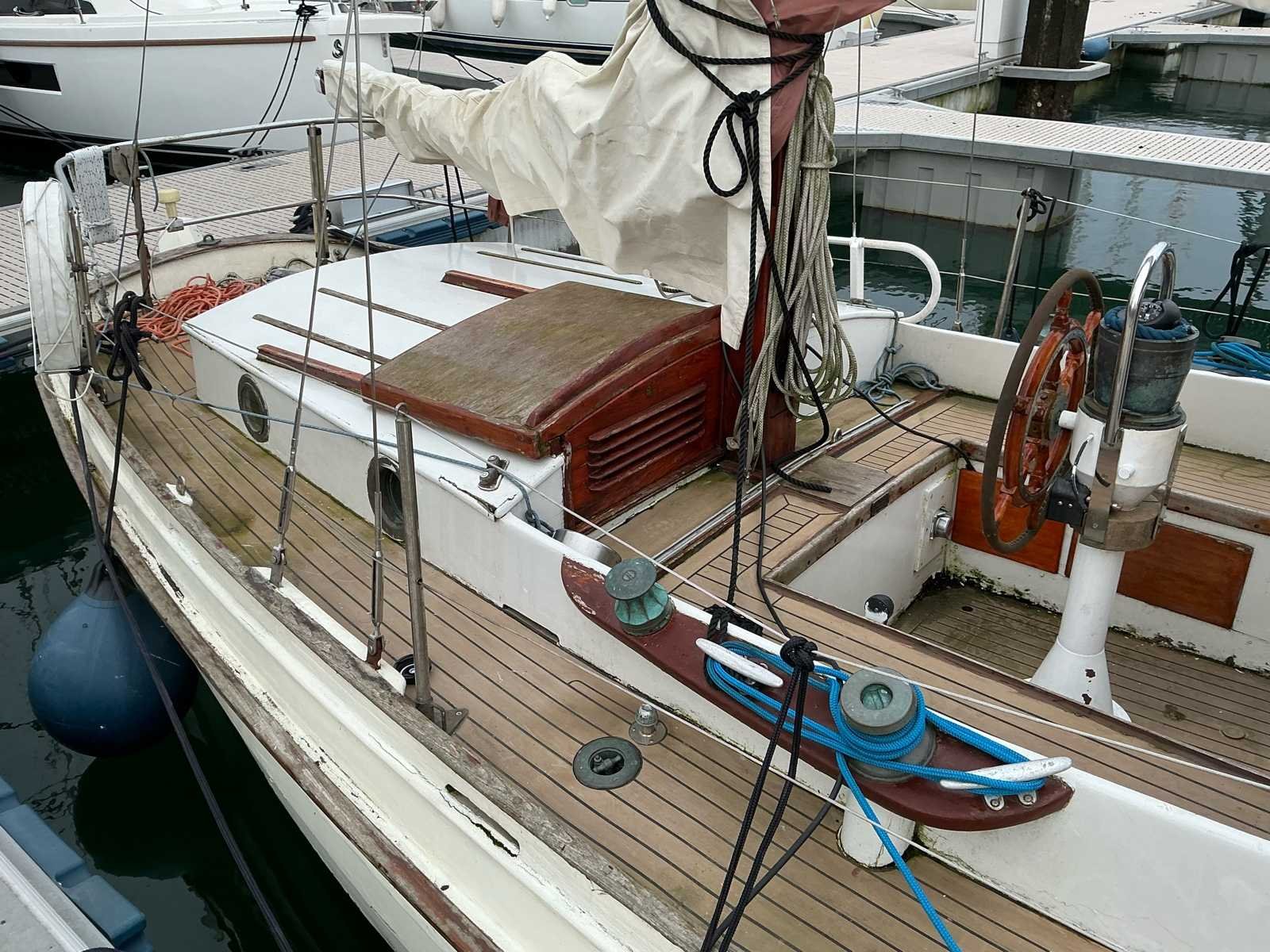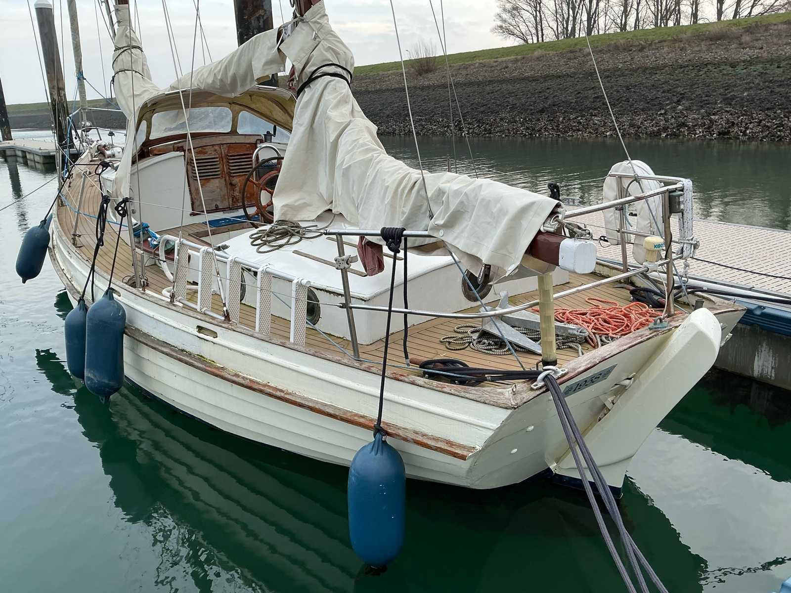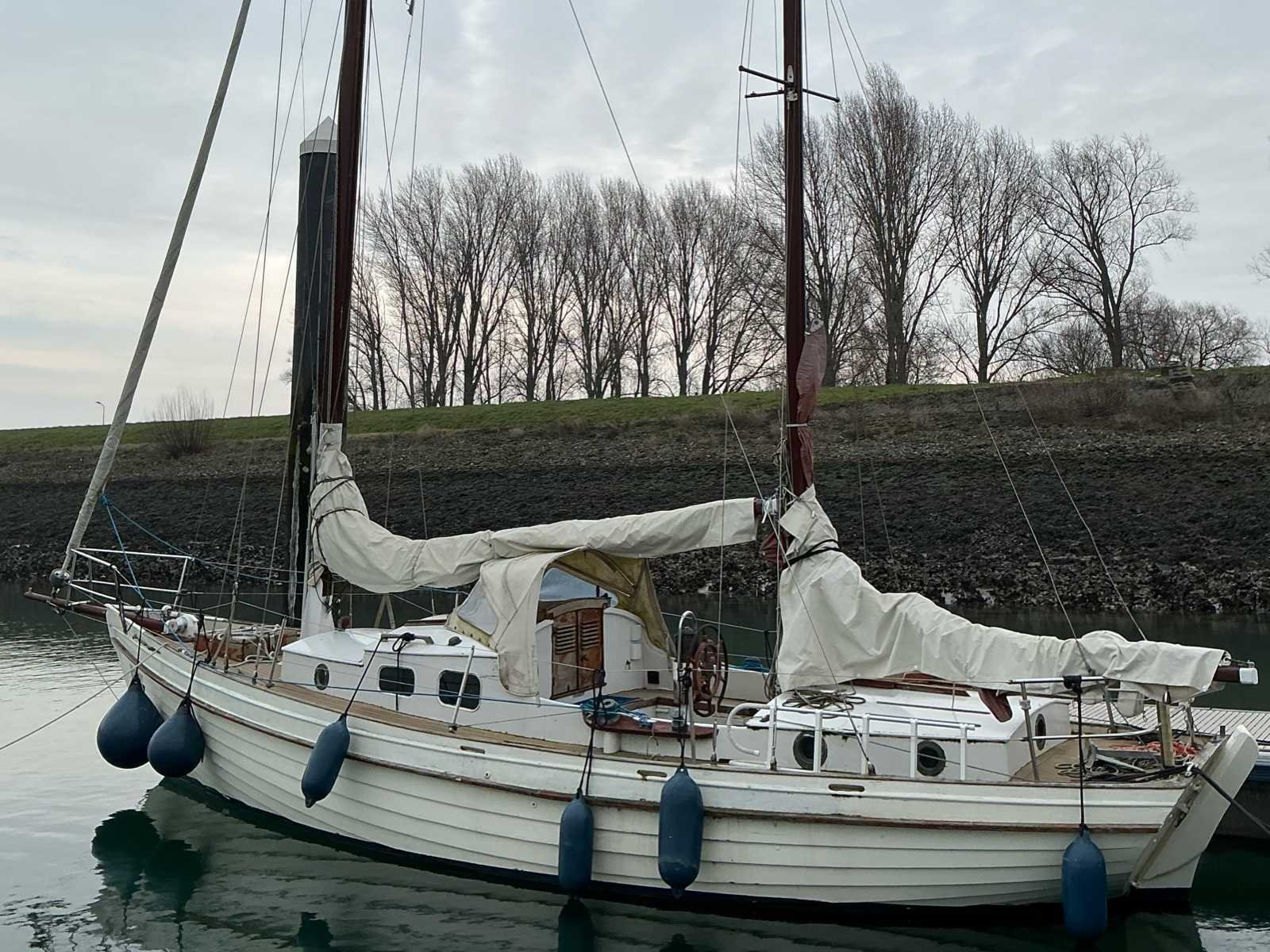 Klassieke houten zeilboot Specificaties: Lengte: 10,7m (13m inclusief boegspriet) Breedte: 2,50m Diepgang: 1m Bouwjaar: Ca. 1958 Stalen kiel Materiaal: hout Aantal masten: 2 Aantal zeilen: 3 Totaal aantal slaapplaatsen: 4 Motor: Craftsman 4 cilinder dieselmotor 42pk (geplaatst in 2023) Stahoogte in kajuit: 195cm en 185 cm Mogelijke bouwer / werf: G.A. Kroes Bootbouwers (niet geverifieerd) Voorzien van: 2 masten 3 zeilen (fok, grootzeil en bezaan) Kajuit voorzijde met 2 slaapplaatsen en koelkast Kajuit Buiskap Bank welke om te bouwen is tot 2 slaapplaatsen Keukenblok met spoelbak Tafel WC Dubbele accu Losse zwemtrap Anker Walstroomaansluiting Fenders De sleutel van de motor ontbreekt / is kwijt. Hier dient een nieuwe voor besteld te worden of een nieuw contactslot voor te worden geplaatst Aantal motoren: 1 Aantal slaapplaatsen: 2 Rompmateriaal: Hout Merk motor: Craftsman CM4.42 Diepgang: 1m Brandstof: Diesel Bouwjaar: 1958 Aantal hutten: 2 Kleur: Wit Lengte: 11m Materiaal: Hout
