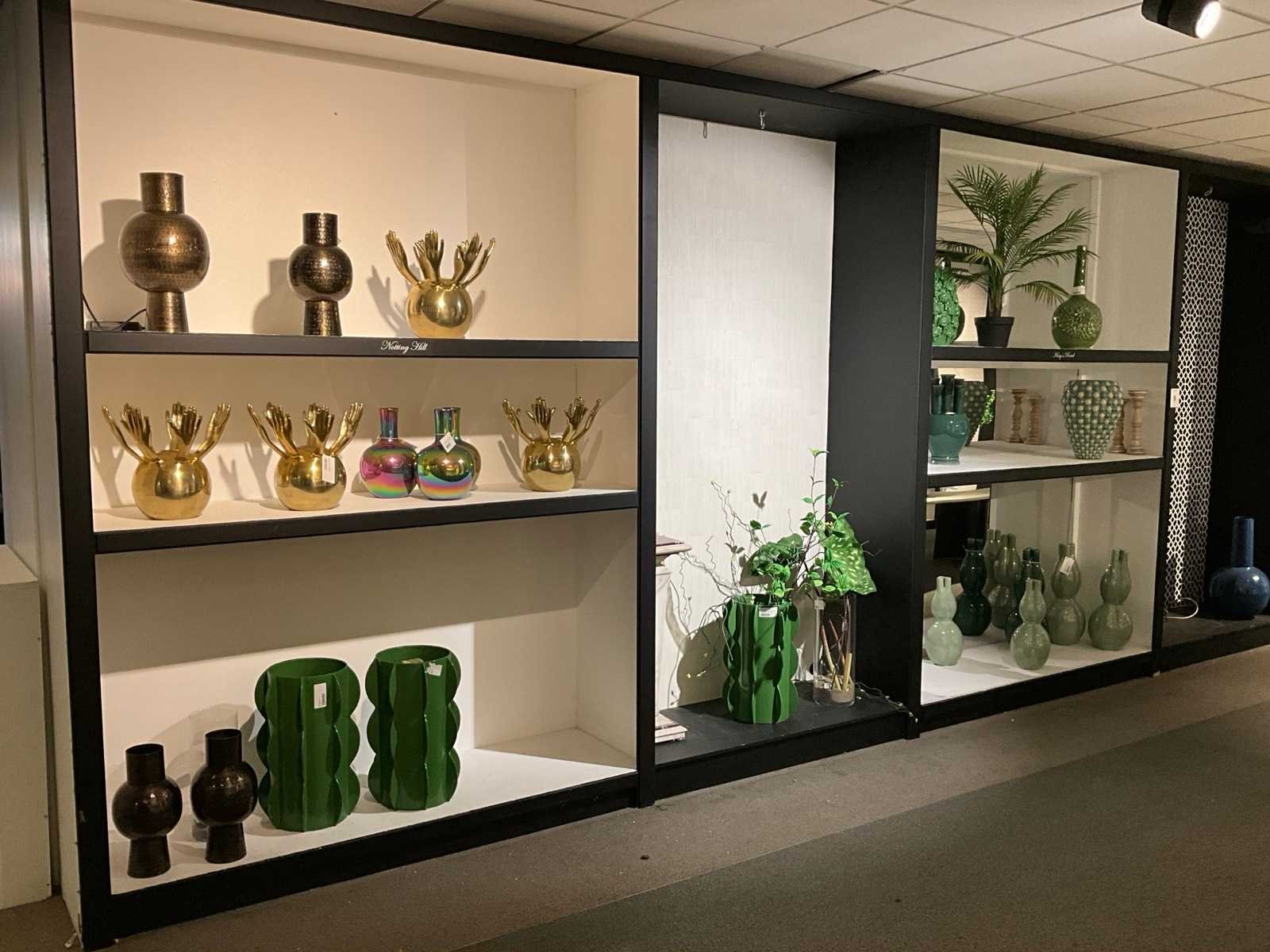 In diverse afmetingen; waaronder 22x22x58 cm; 24x24x51 cm en 21x21x32 cm; inclusief kunstplant en marmeren zuil