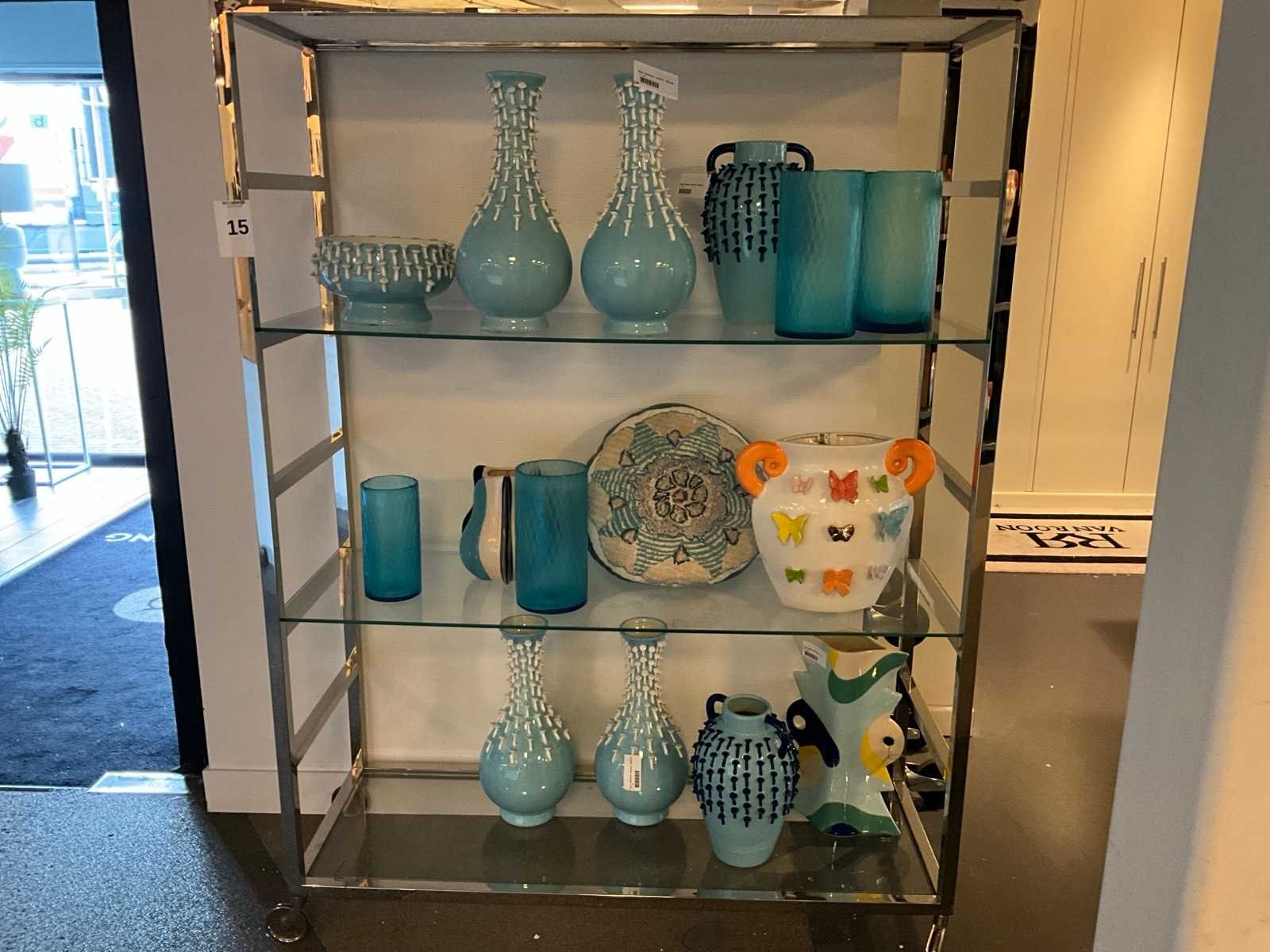 In diverse afmetingen; waaronder 20x20x38 cm en 24x24x35 cm; presentatiemeubel niet inbegrepen