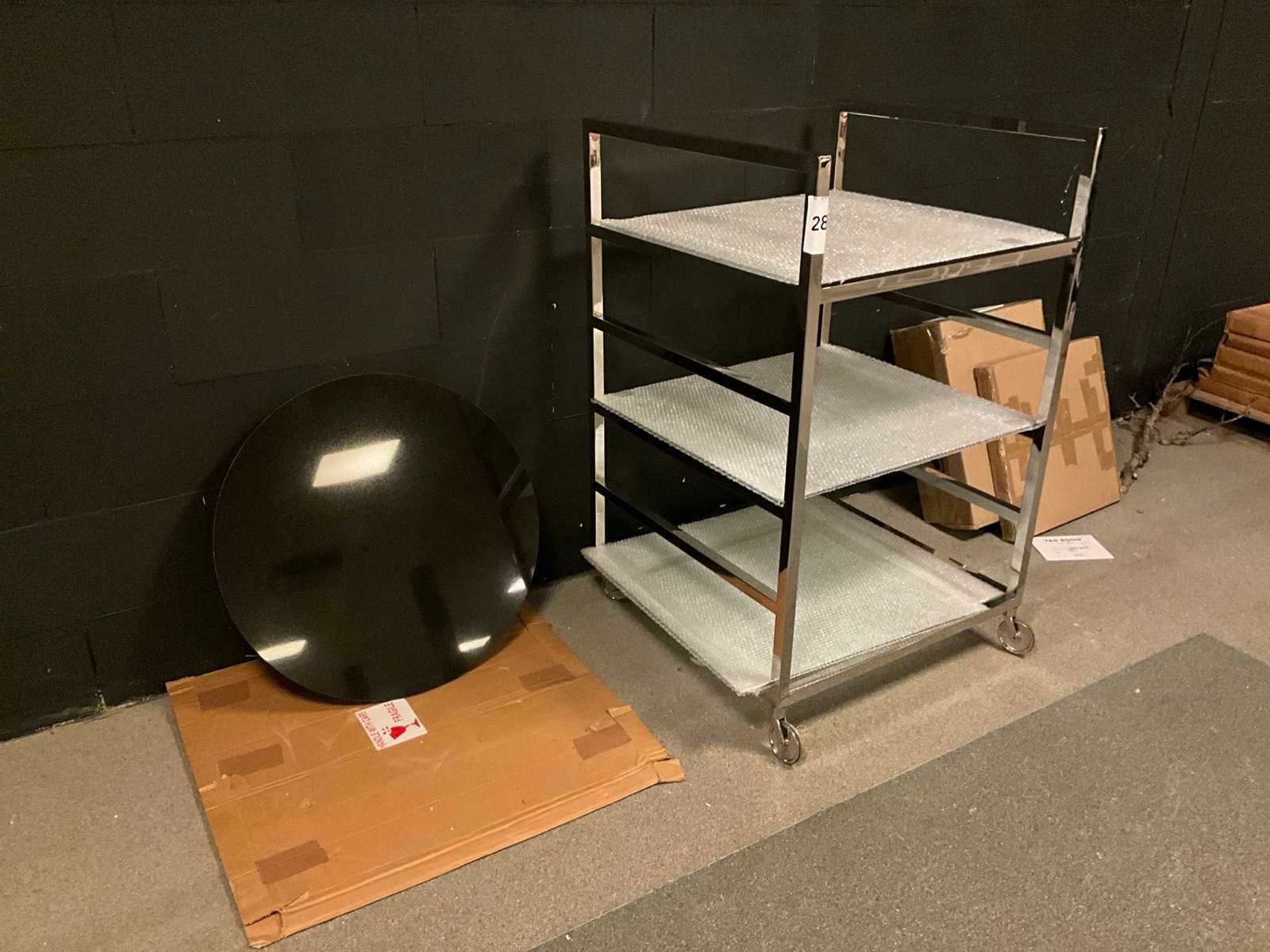 Waaronder verrijdbaar presentatierek; marmeren tafelbladen; albast schalen en kunst kerstboom