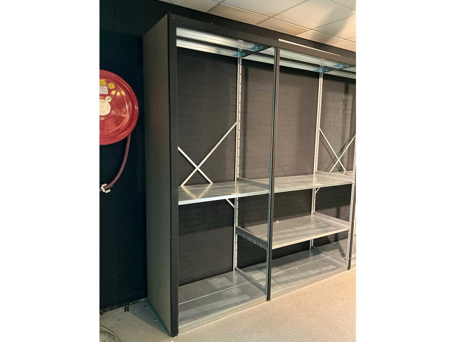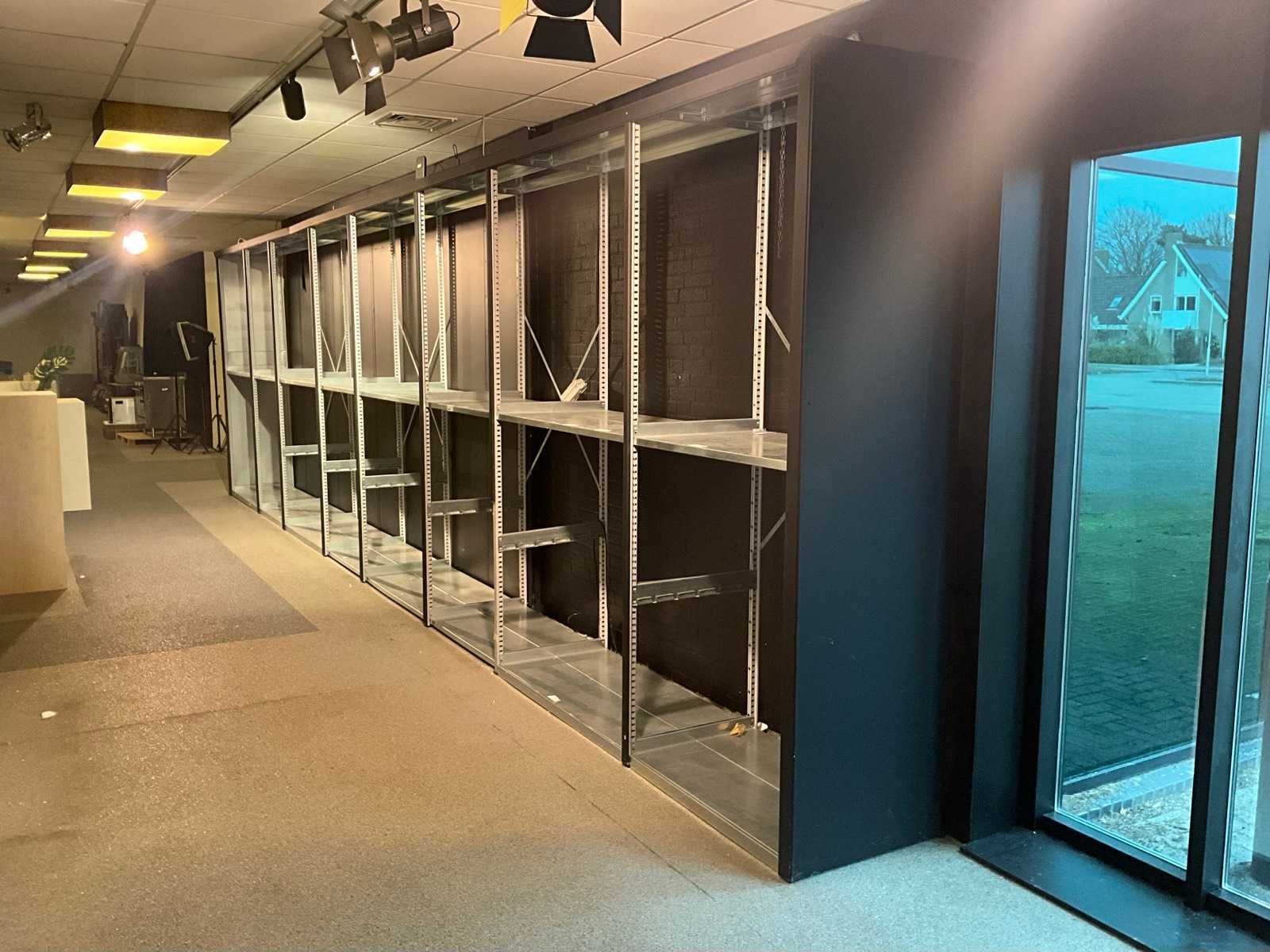 Bestaande uit 10 secties van 97,5 cm breed en 10 secties van 127,5 cm breed; inclusief houten afwerkdelen Sectie diepte: 600mm Demontabel: true Totale afmeting Hoogte: 250cm