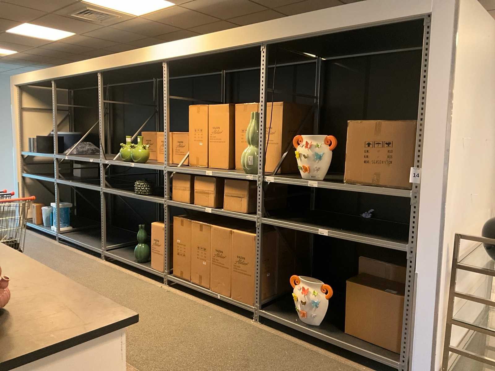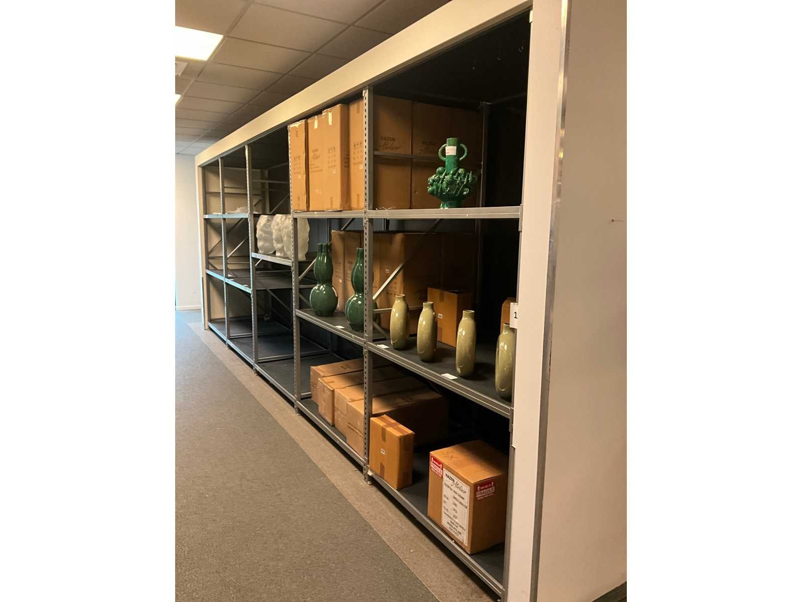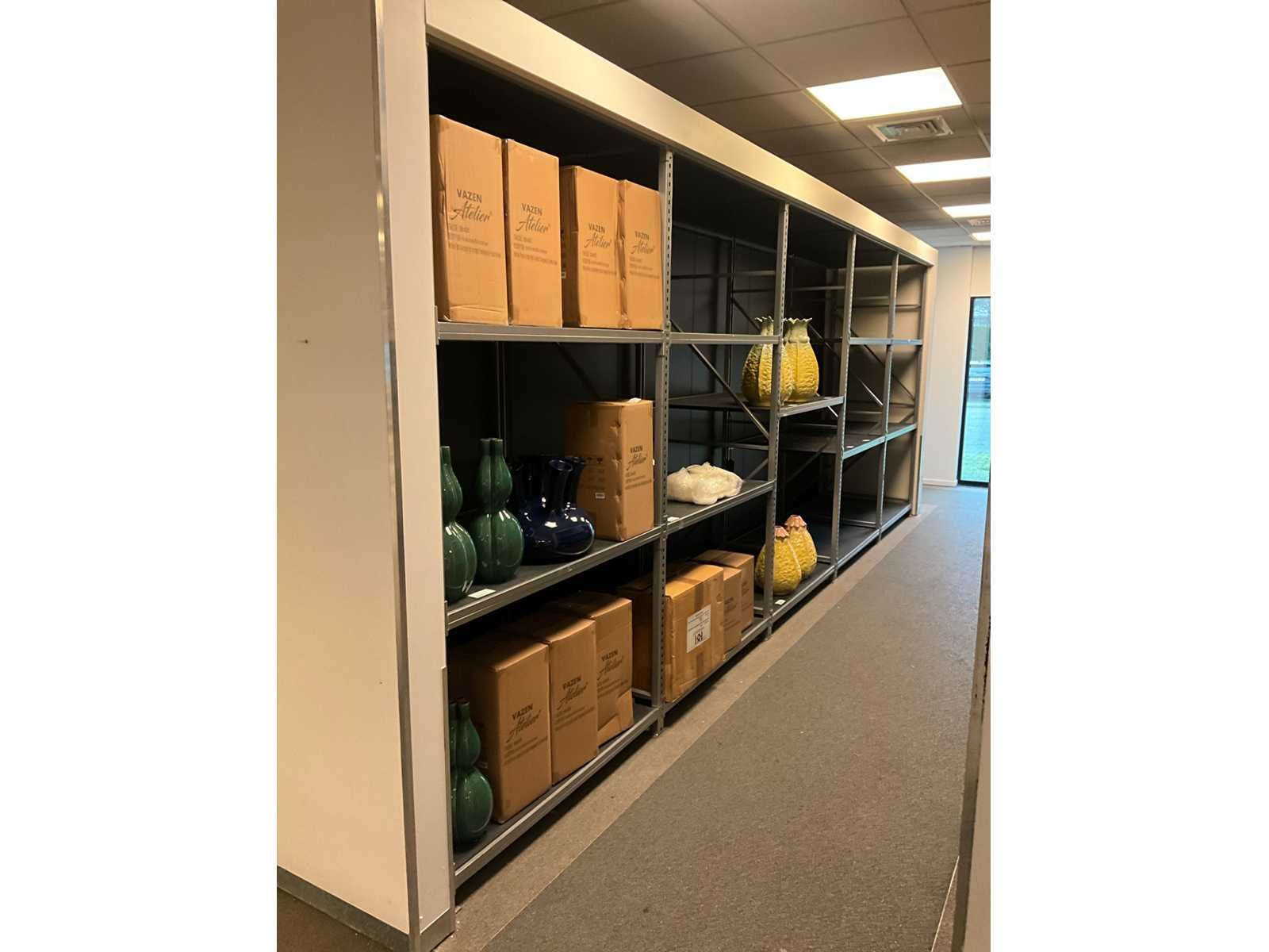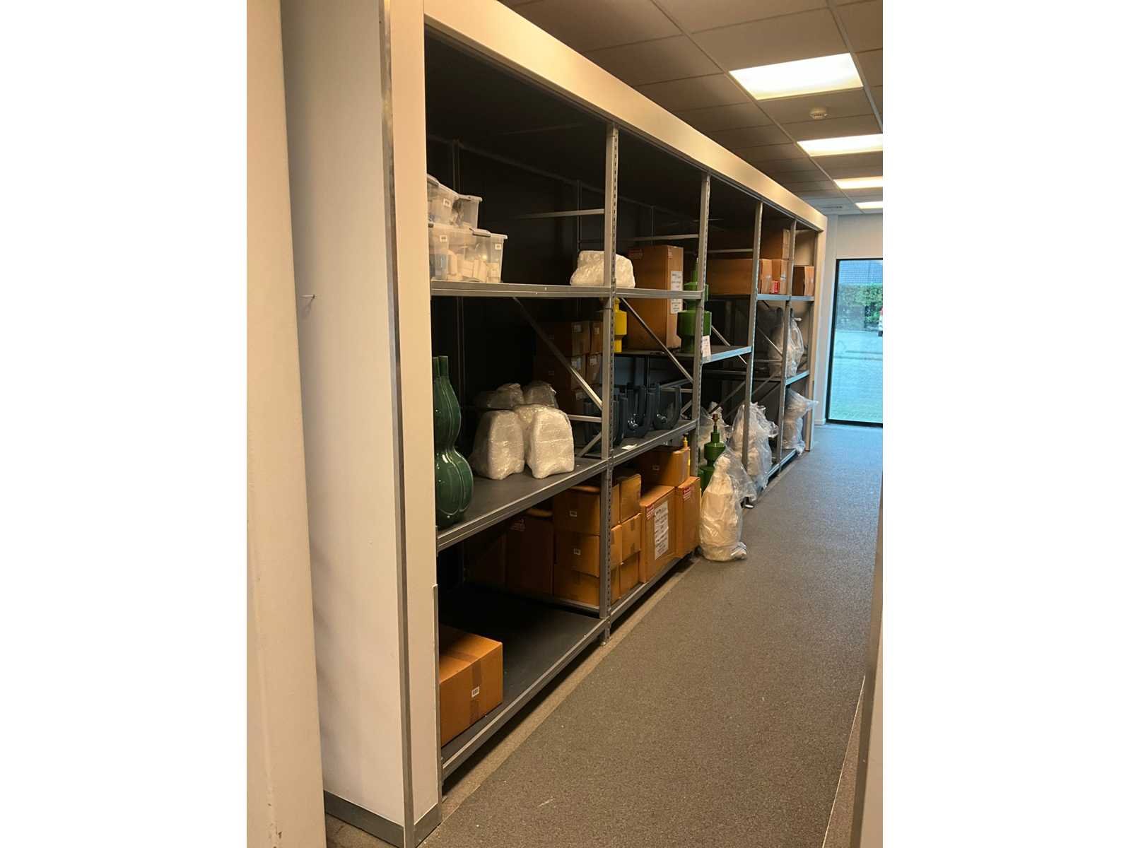Let op, inhoud en houten ombouw niet inbegrepen; dit kavel kan uitsluitend afgehaald worden op dinsdag 31-03-2026 Aantal secties: 50 Sectie afm. b: 1250mm Sectie diepte: 900mm Aantal staanders: 60 Aantal liggers: 370 Aantal legborden: 185 Demontabel: true Totale afmeting Hoogte: 250cm