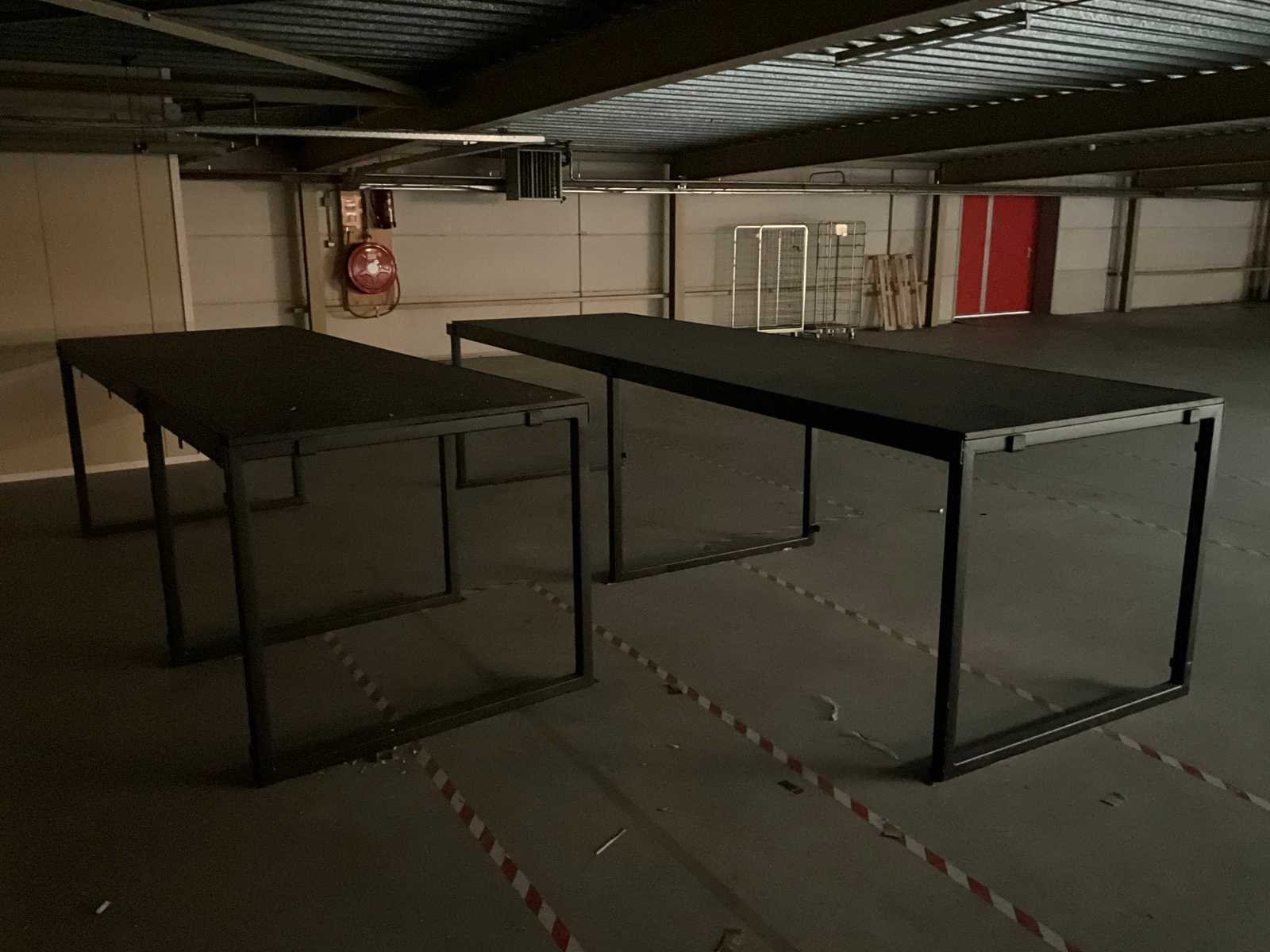 Bestaande uit 12 staanders en diverse legborden; sectie afmeting 122x205 cm Hoogte: 1090mm Materiaal: Staal