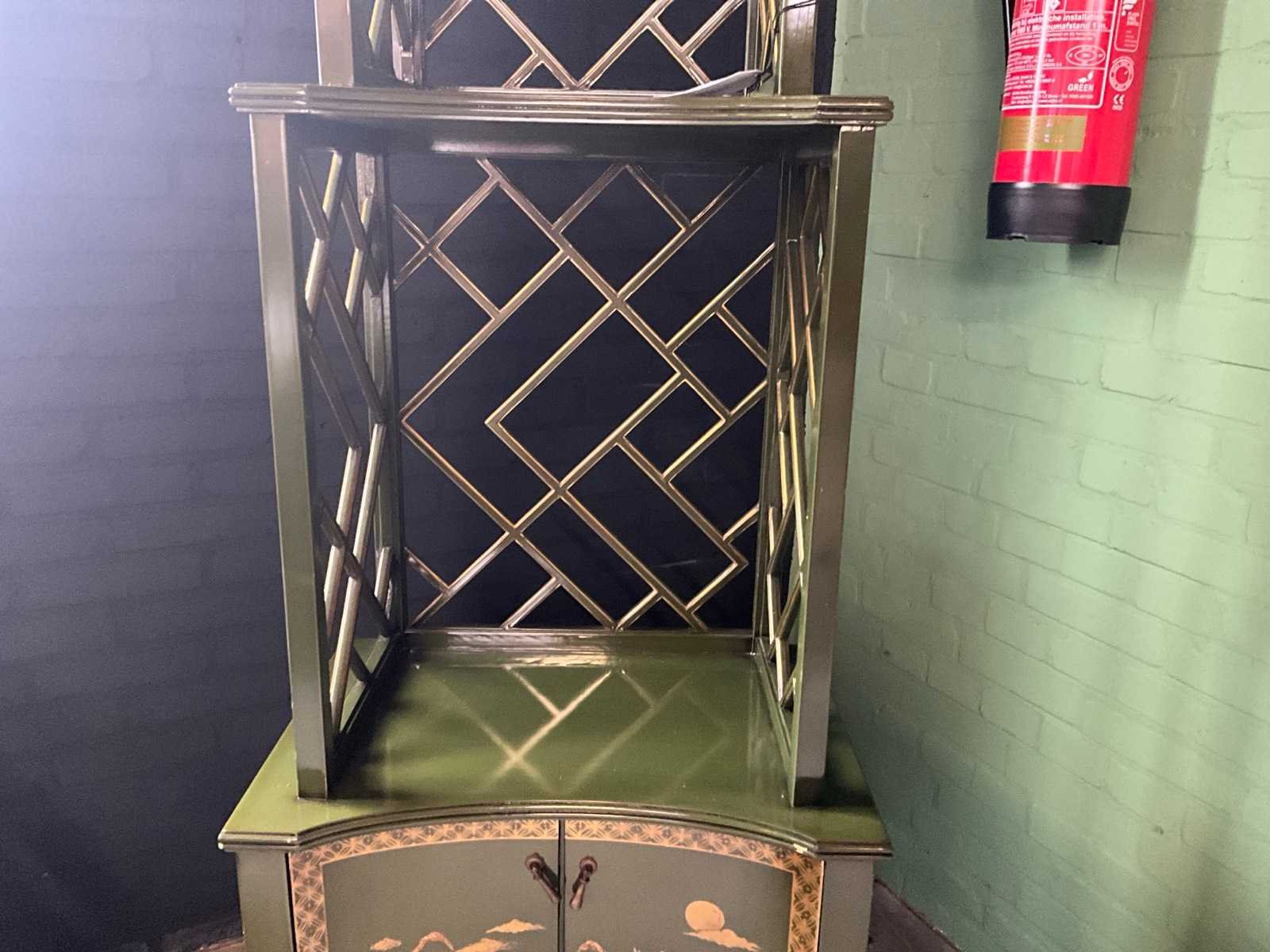 Merk: Jansen Furniture Model: Chinoiserie Kleur: Groen Lengte: 37cm Breedte: 54cm Hoogte: 220cm Diepte: 28cm Materiaal: Mahoniehout
