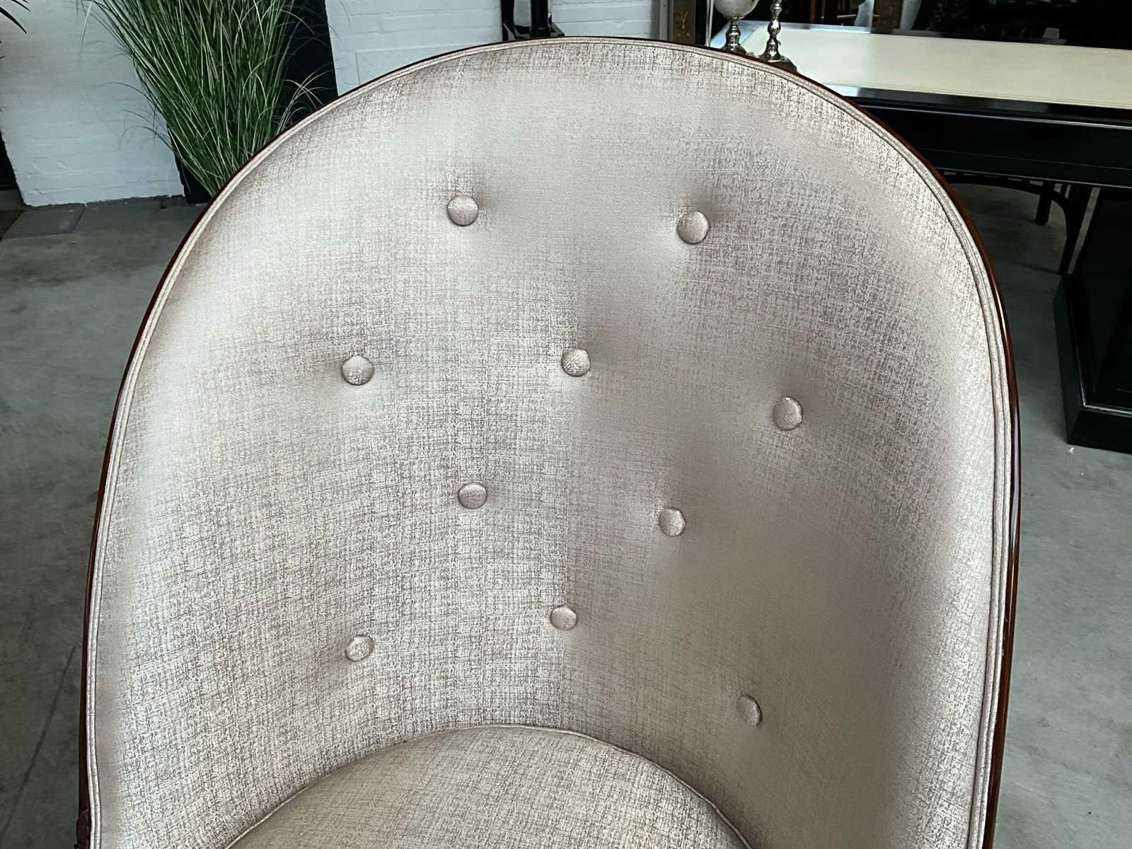 Merk: Jansen Furniture Model: Fireside Evita Lengte: 84cm Breedte: 91cm Hoogte: 117cm Zithoogte: 52cm Materiaal: Mahoniehout