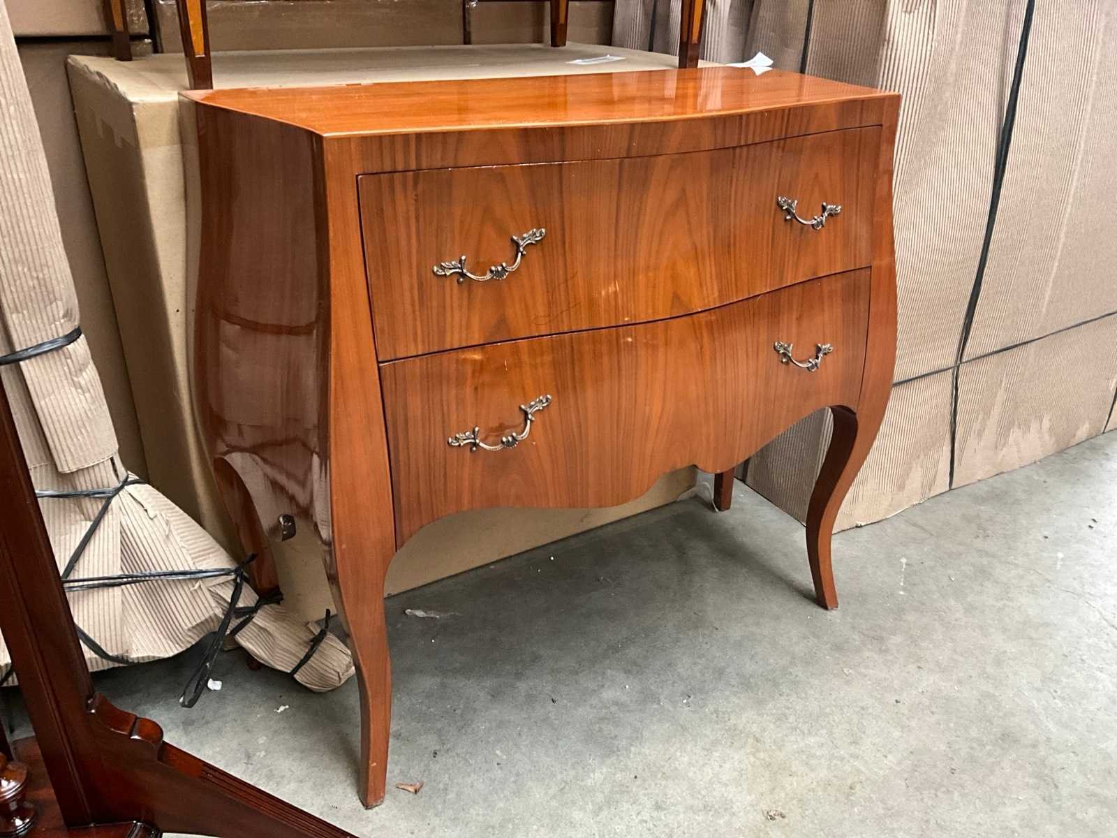 Voorzien van 2 lades. Merk: Jansen Furniture Lengte: 37cm Breedte: 85cm Hoogte: 79cm Diepte: 33cm Materiaal: Mahoniehout