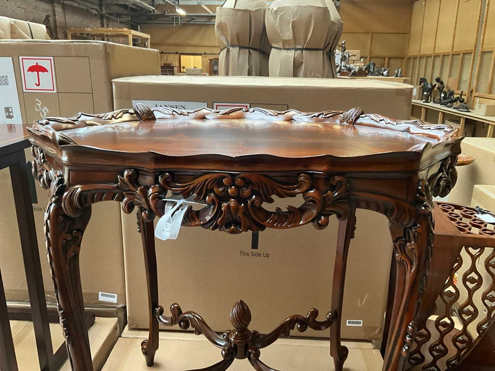 Merk: Jansen Furniture Model: Louis XV Vorm: Ovaal Lengte: 57cm Breedte: 80cm Hoogte: 75cm Materiaal: Mahoniehout