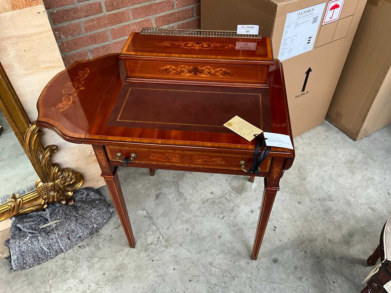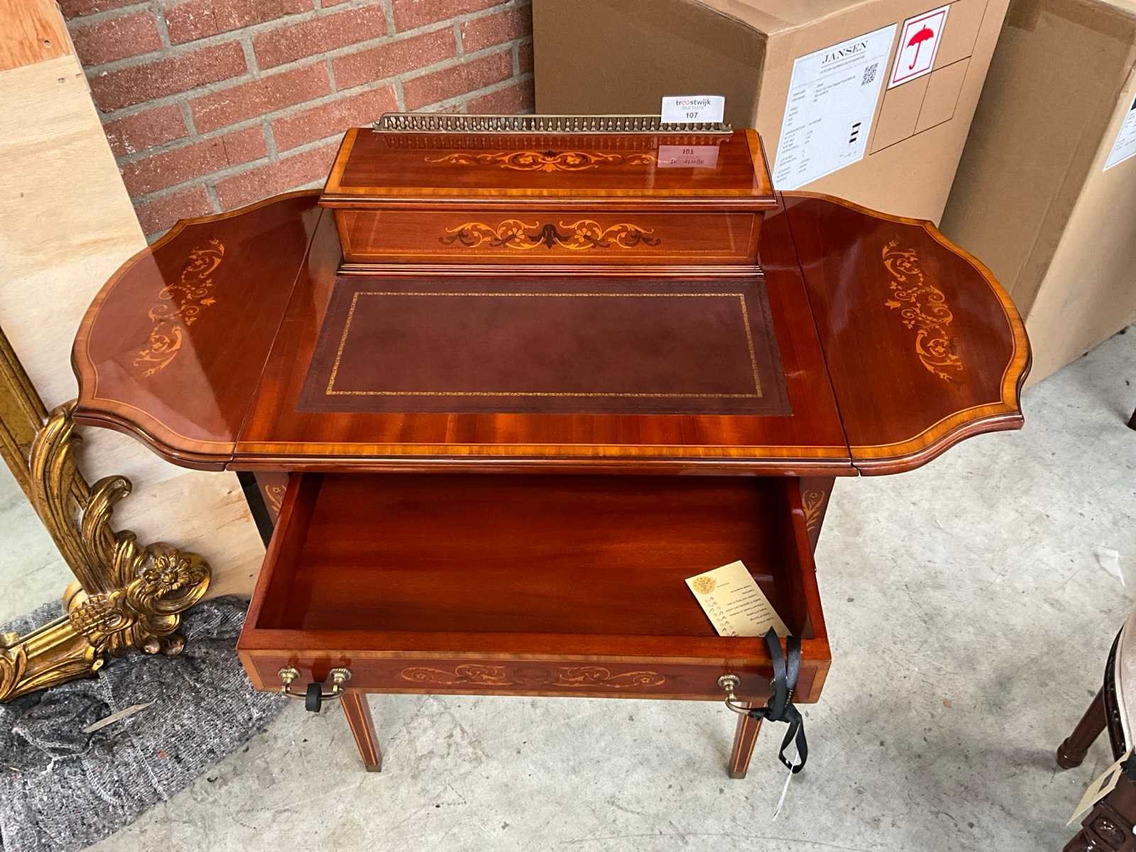 Inclusief 1x stoel Paris, Merk: Jansen Furniture Model: Dropleafe Lengte: 48cm Breedte: 82cm Hoogte: 85cm Materiaal: Mahoniehout