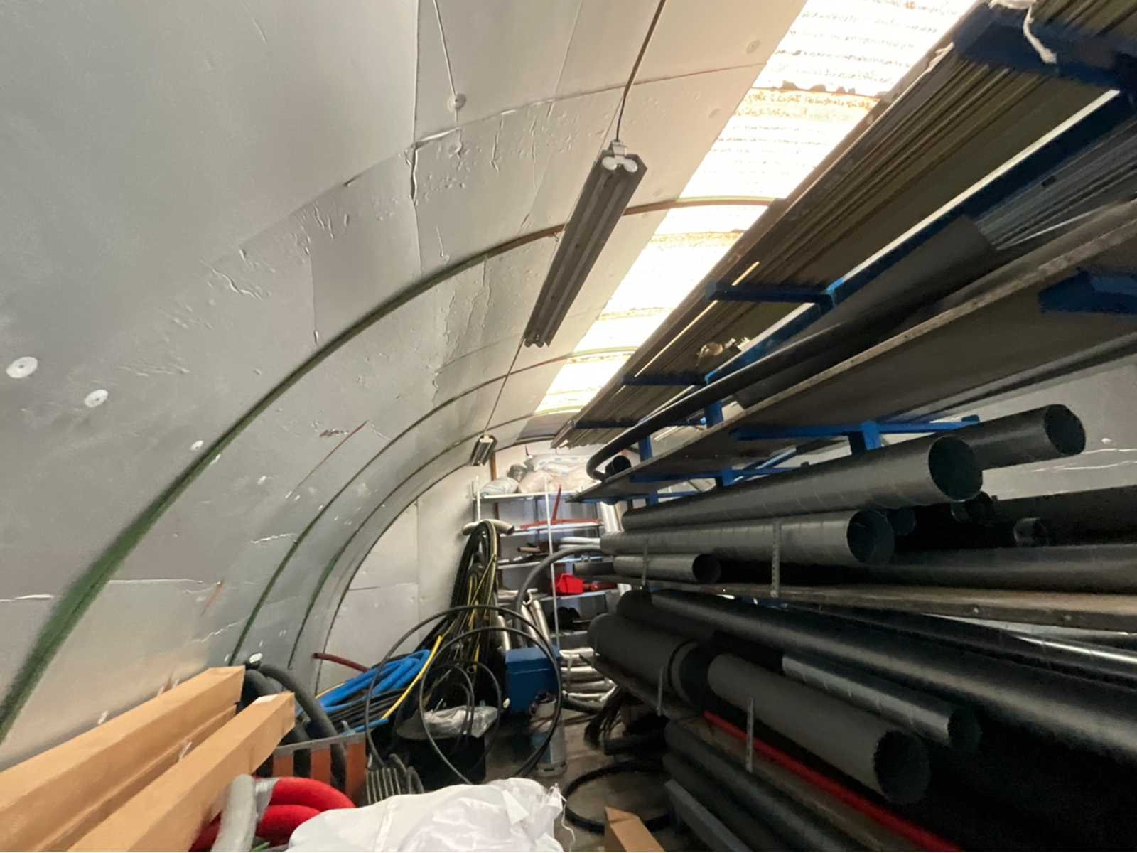 Geïsoleerde loods voorzien van dubbele deur en loopdeur. Verlichting en elektra aanwezig Totale afmeting L: 14000mm Totale afmeting Breedte: 7700mm Totale afmeting Hoogte: 3850mm
