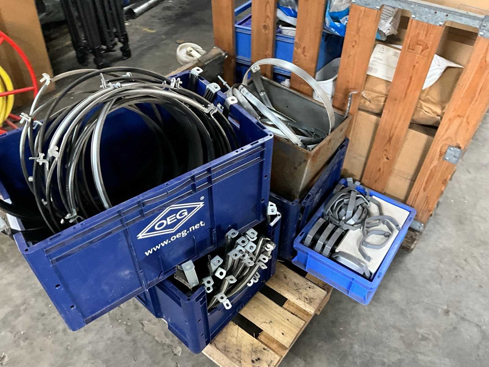 Op 2 pallets, diverse flexpluggen, schroeven en buisklemmen