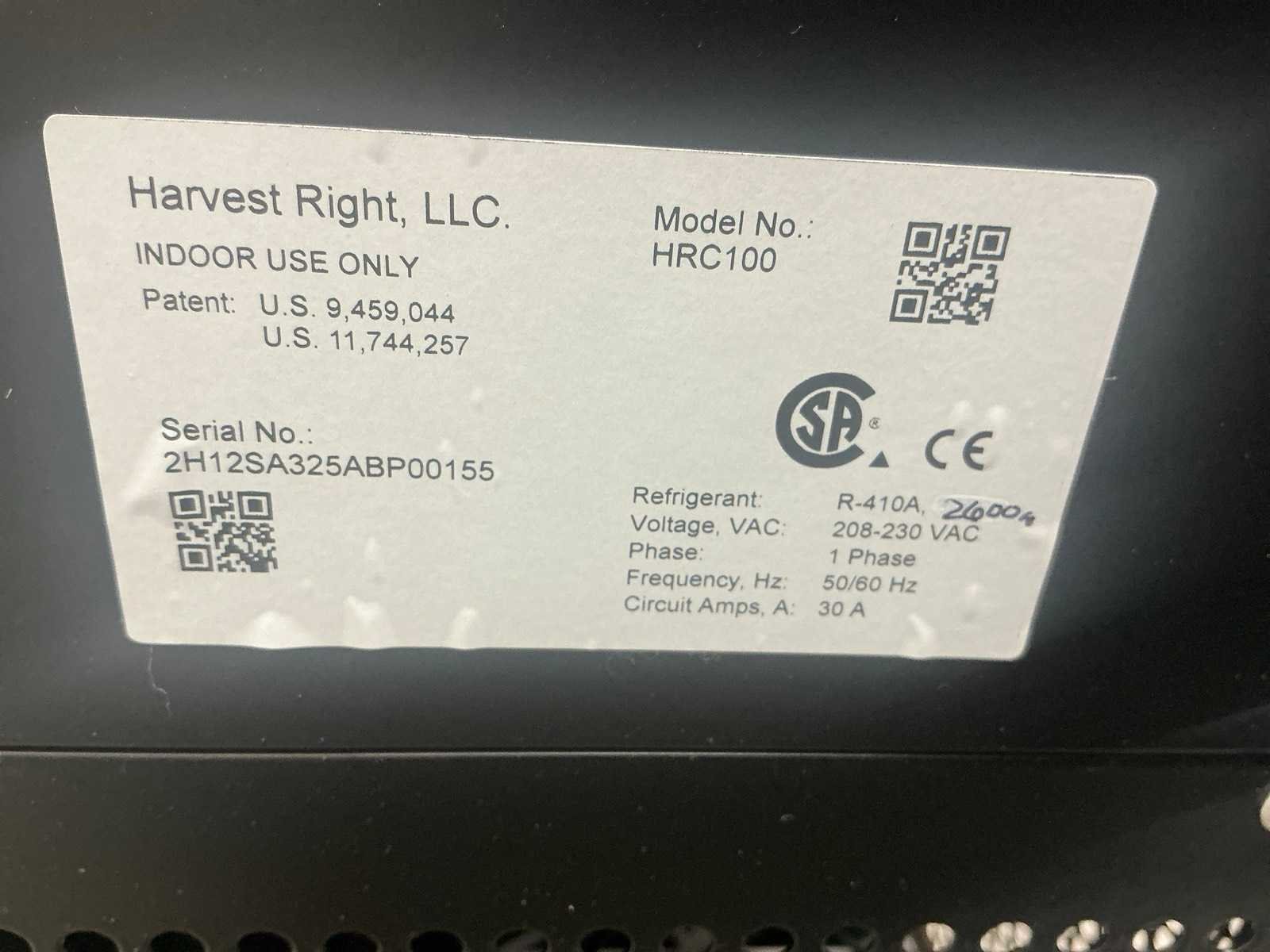 Voorzien van 9 roestvrijstalen lades 18" W x 26" D x 0.9" H; Vacuümpomp; Capaciteit: Verwerkt 65-100 lbs Merk: Harvest Right Type: HRC100 Serienummer: 2H12SA325ABR00155 Rvs: true Aansluiting: 230V Totale afmeting L: 85mm Totale afmeting Breedte: 85mm Totale afmeting Hoogte: 180mm