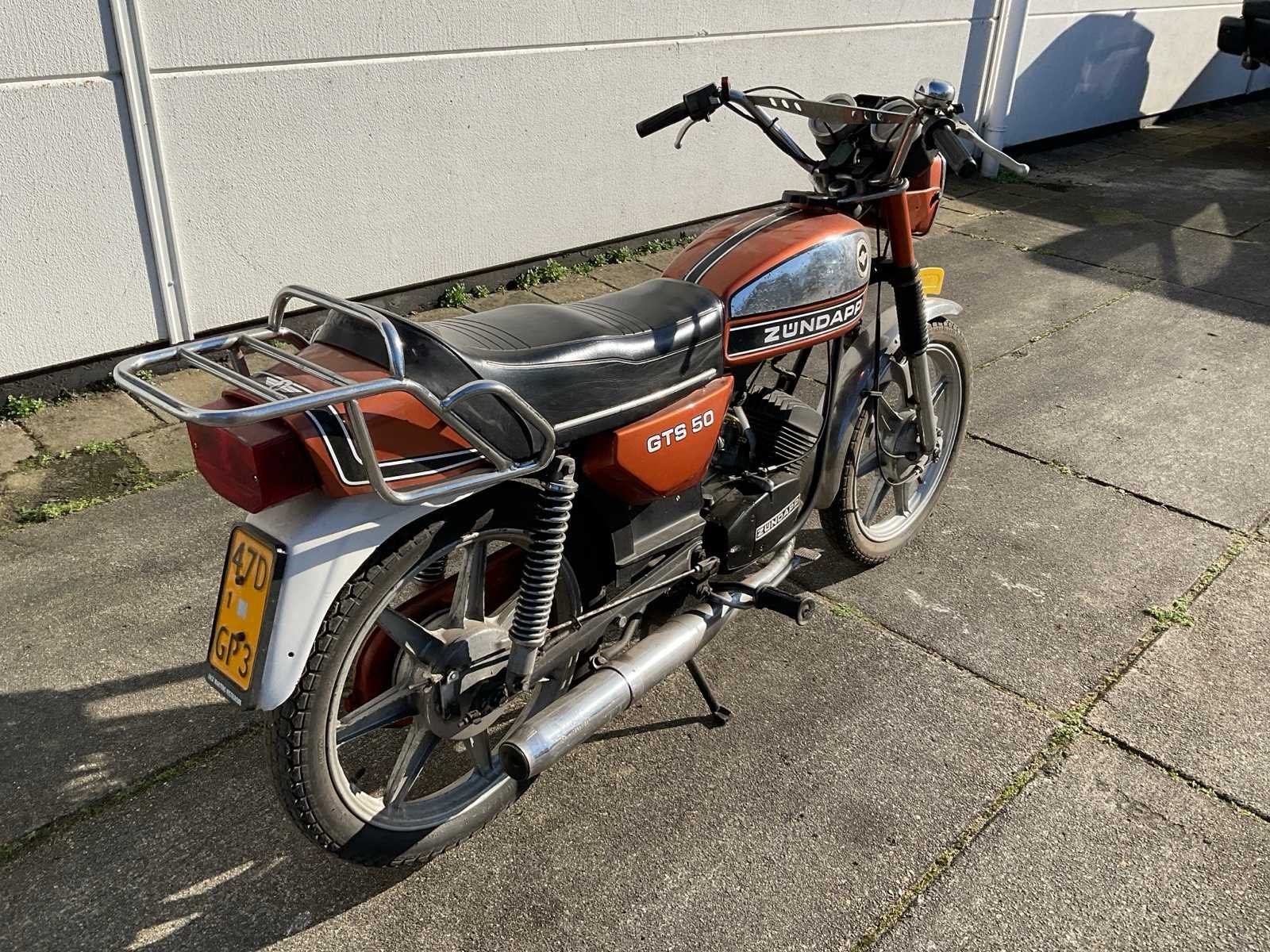 Merk: Zundapp Model: Bromfiets Type: GTS50 Kenteken: 47-DGP-3 Datum eerste toelating: 1987-12-31 Transmissie: Handgeschakeld Brandstof: benzine Kleur: niet van toepassing Bouwjaar: 1987 Afgelezen kilometerstand: 41401km
