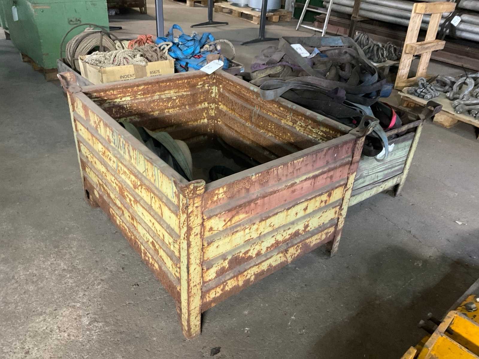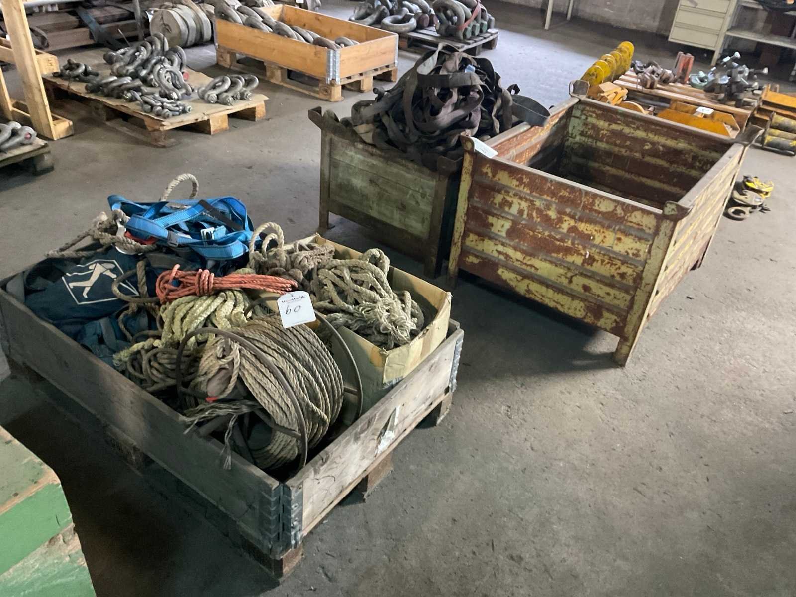 Waaronder harnassen, stuurtouwen. Inclusief partij hijsstroppen, 2x stapelbak en palletkrat