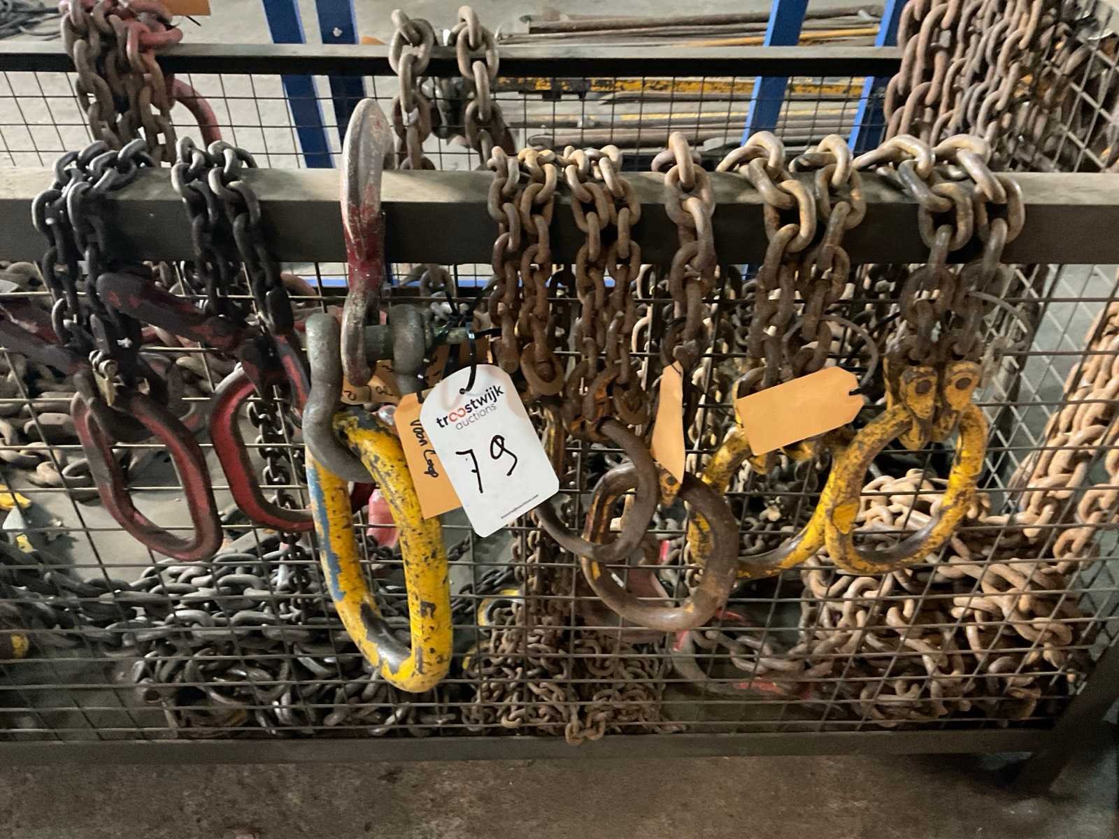 Waaronder 2x 2-sprong L 400cm 4.5t, 1x L 100cm 3.2t, 2x 2-sprong L350cm 2.9t, 2x L450cm 1.5t met inkortklauwen, 1x voorloper 6.5t