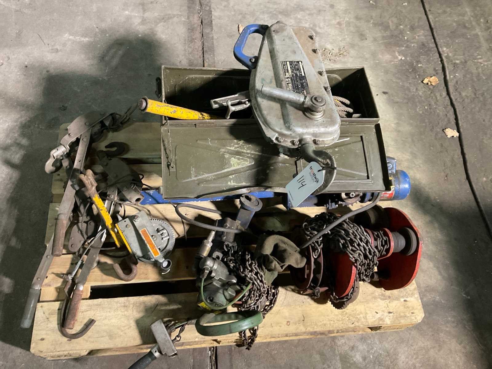 Waaronder 1x Tirfor 1.5t, kettingtakel, loopkat, etc