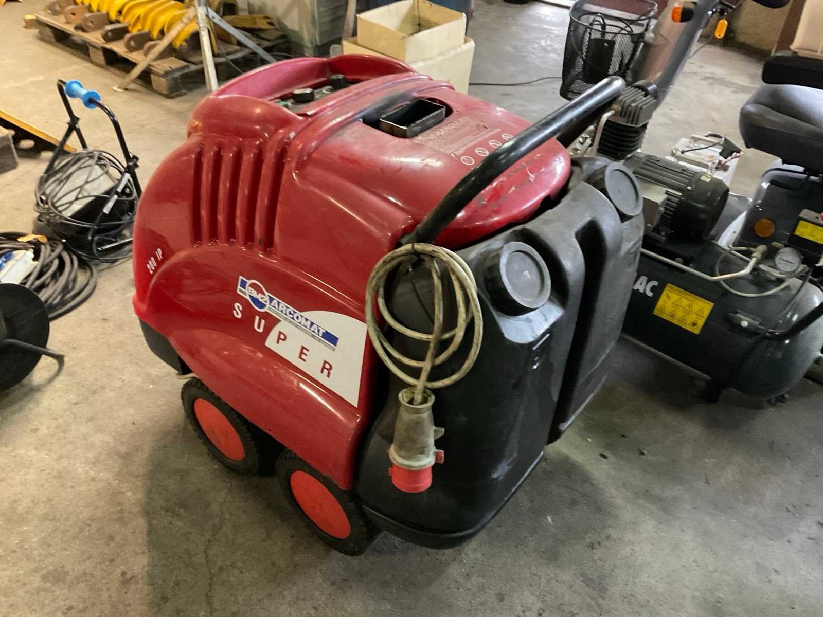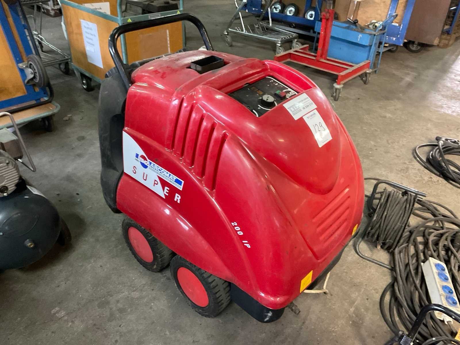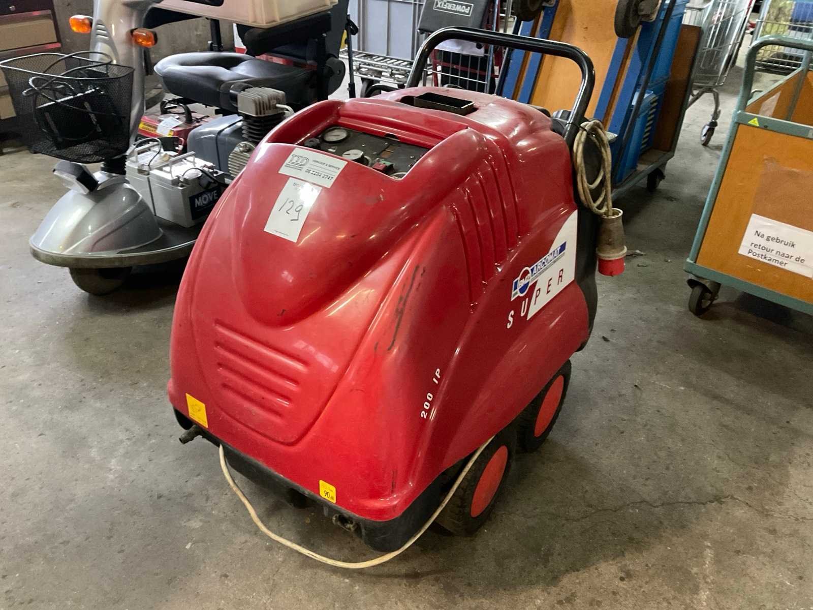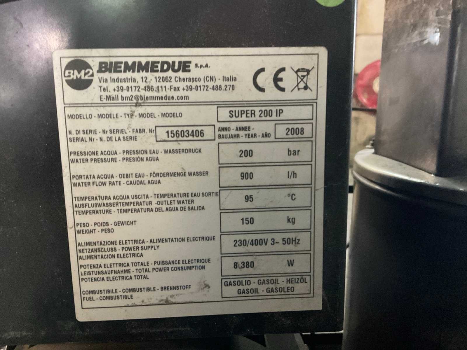 Inclusief slang en lans Merk: BM2 Type: Super 200IP Bouwjaar: 2008 Serienummer: 15603406 Maximale werkdruk: 200bar Temperatuurbereik max.: 95°c Capaciteit.: 900l/hr Dieselgestookt: true Mobiel: true Vermogen: 8kW Aansluiting: 400V Eigen gewicht: 150kg Totale afmeting L: 1050mm Totale afmeting Breedte: 700mm Totale afmeting Hoogte: 950mm