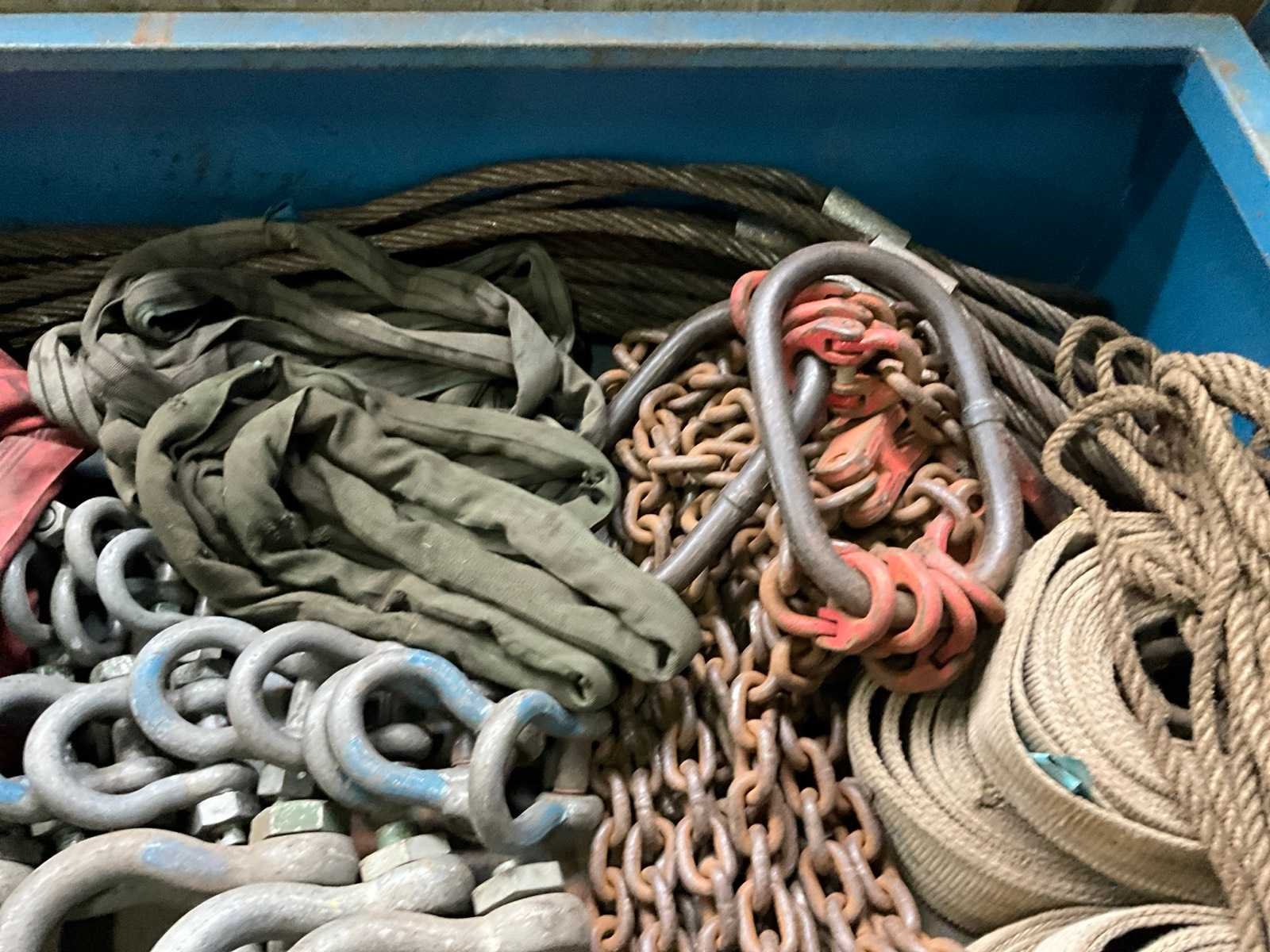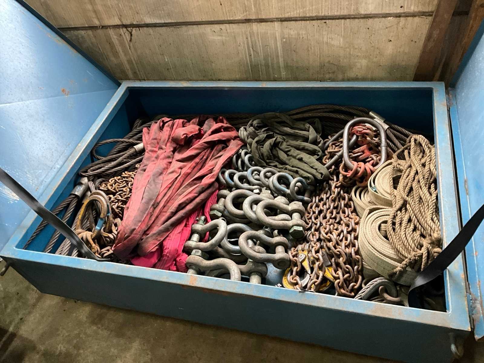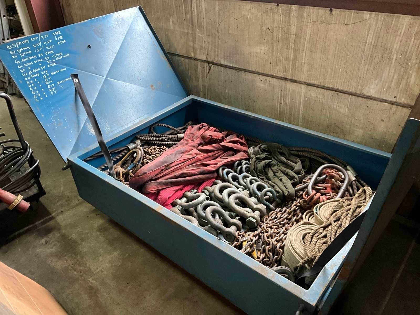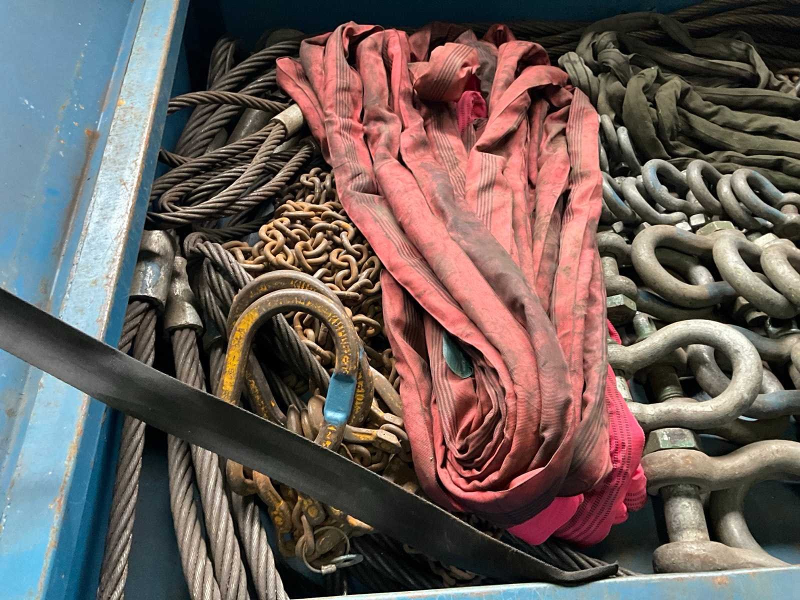 Bestaande uit: transportkist, hijsstroppen, hijsbanden, hijsharpen, hijskettingen, staalstroppen. Totale afmeting L: 1350mm Totale afmeting Breedte: 1850mm Totale afmeting Hoogte: 560mm