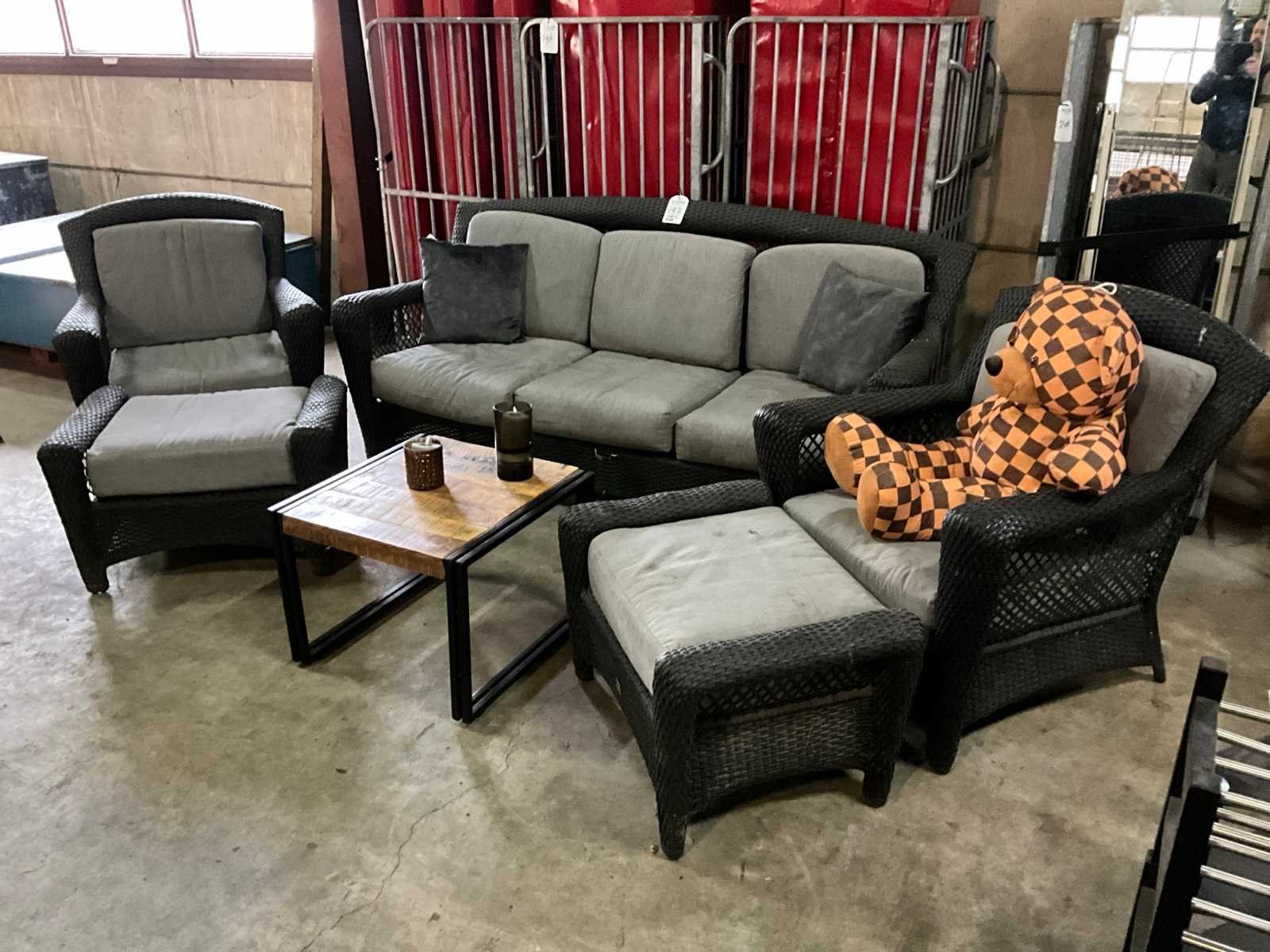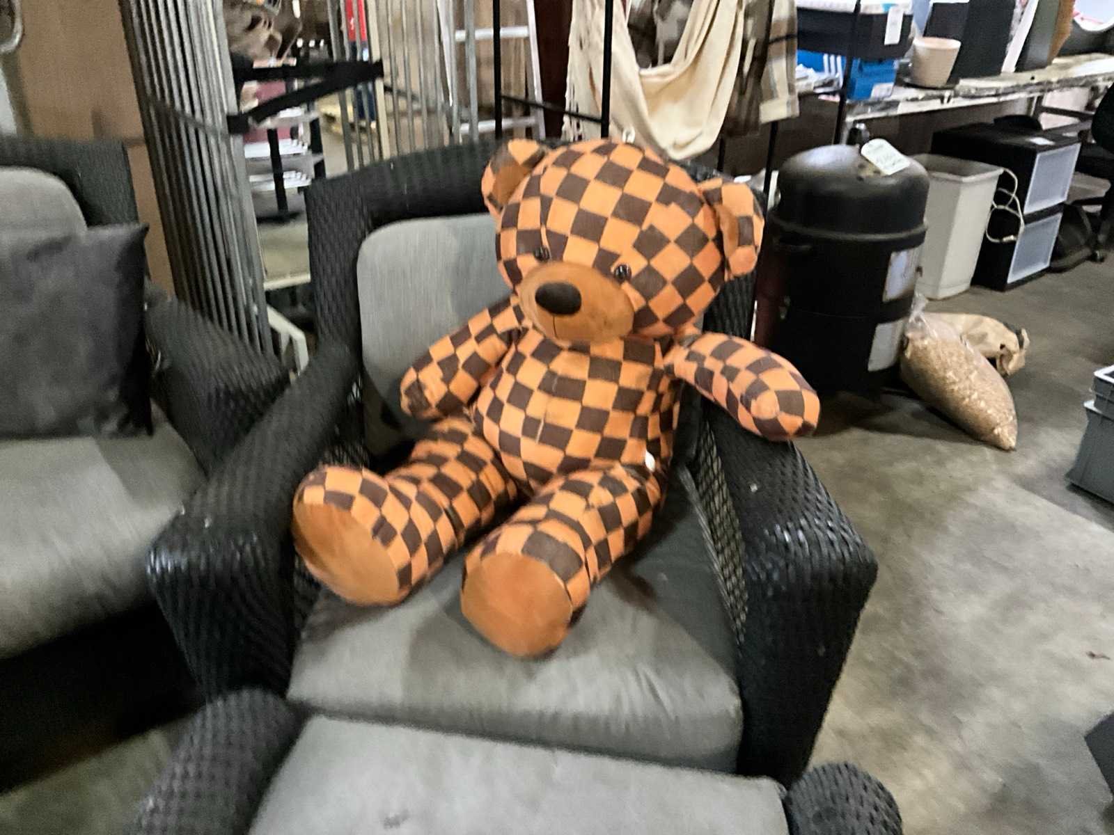 Bestaande uit: bank, 2x stoel, salontafel, pluche beer