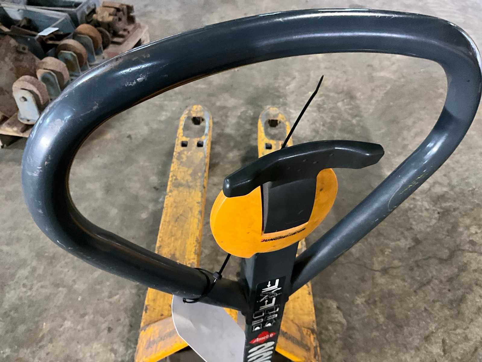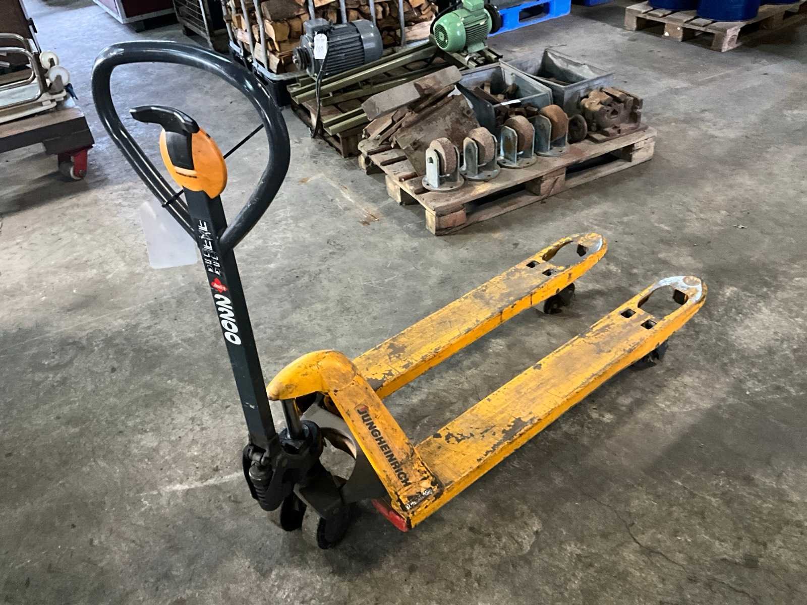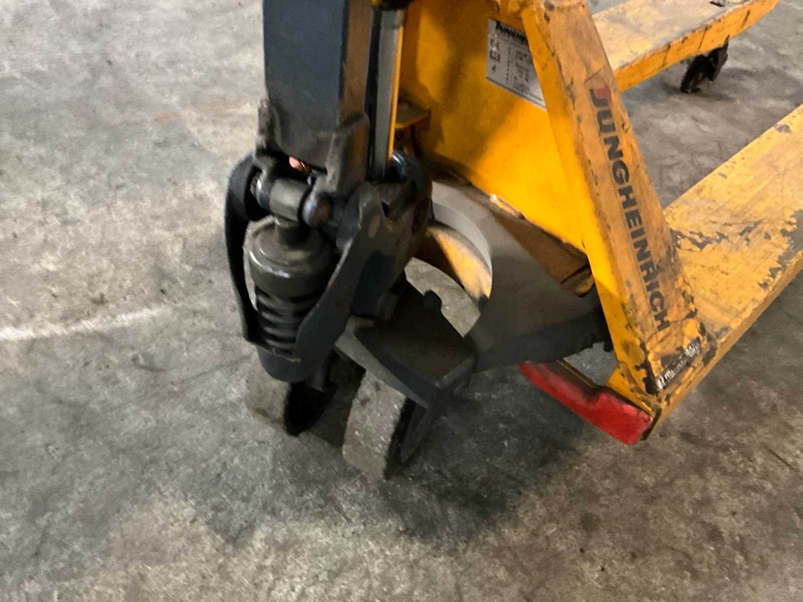 Merk: Jungheinrich Type: Ameise 2200 Hefvermogen: 2200kg Hefhoogte: 200mm Lepellengte: 1150mm Eigen gewicht: 61kg Totale afmeting L: 1500mm Totale afmeting Breedte: 520mm Totale afmeting Hoogte: 1250mm