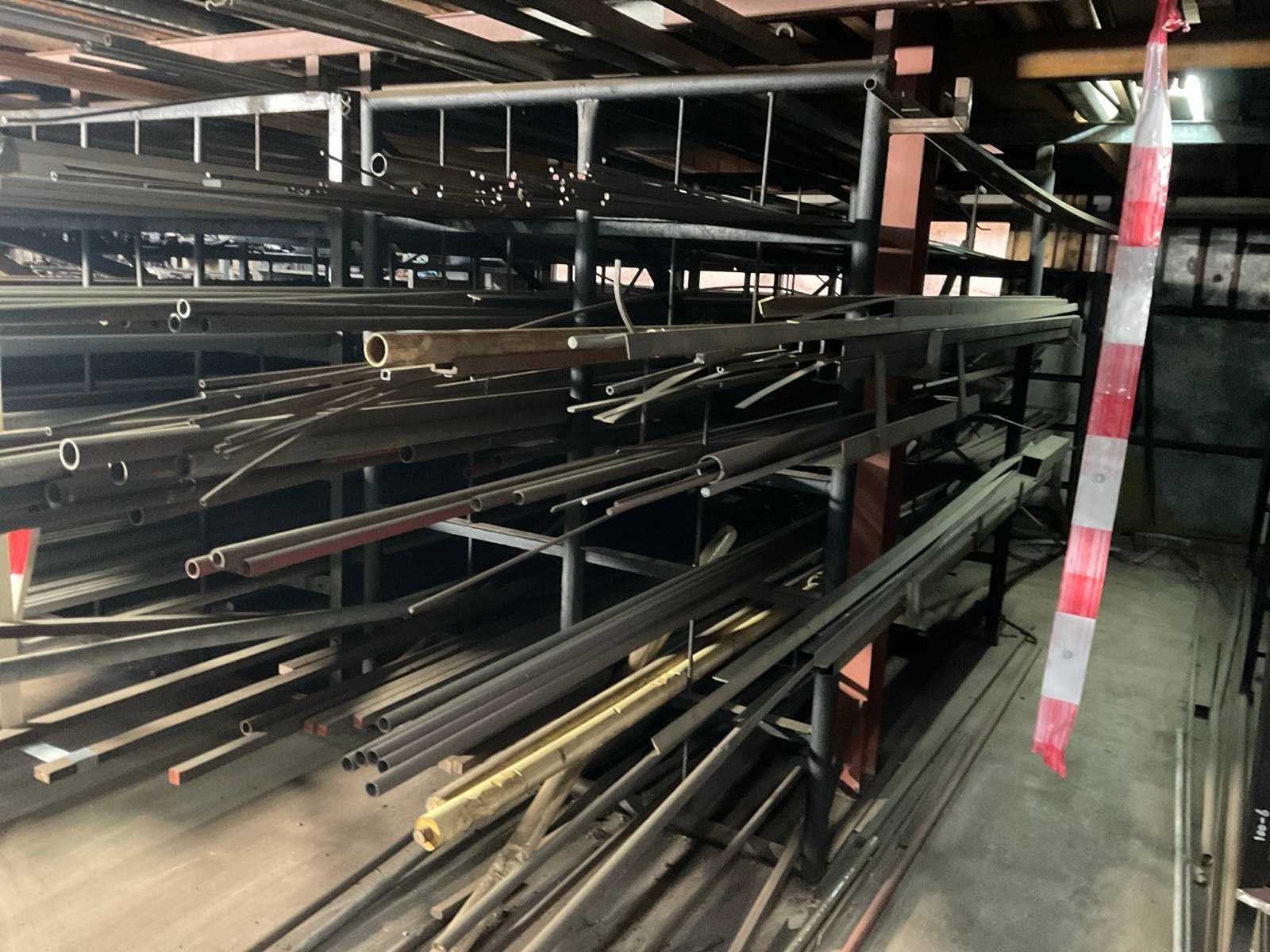 Waaronder vierkant staal, buizen, kokers, etc. L tot 6m. Betreft de inhoud van een stafmateriaal stelling met de afmeting bxh circa 160x200cm