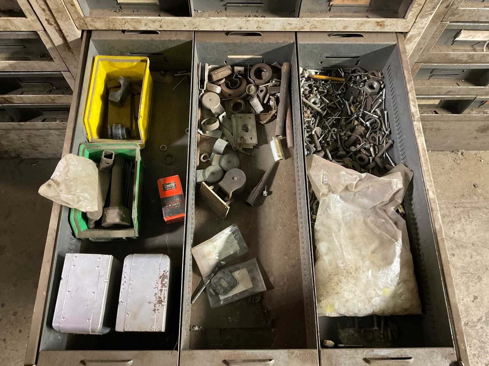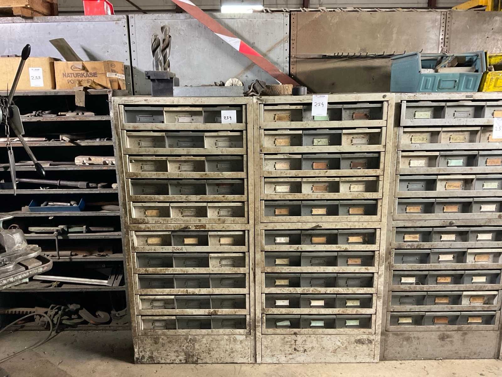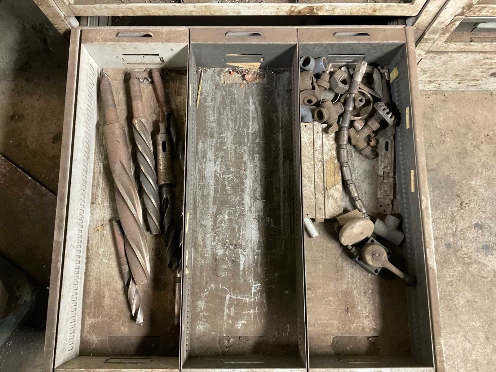 Voorzien van magazijnbakken inclusief inhoud waaronder machine toebehoren waaronder opnames, ruimers, boren, handgereedschap, etc Merk: Staalmeubel Lengte: 90 Breedte: 65cm Hoogte: 150cm Materiaal: Staal