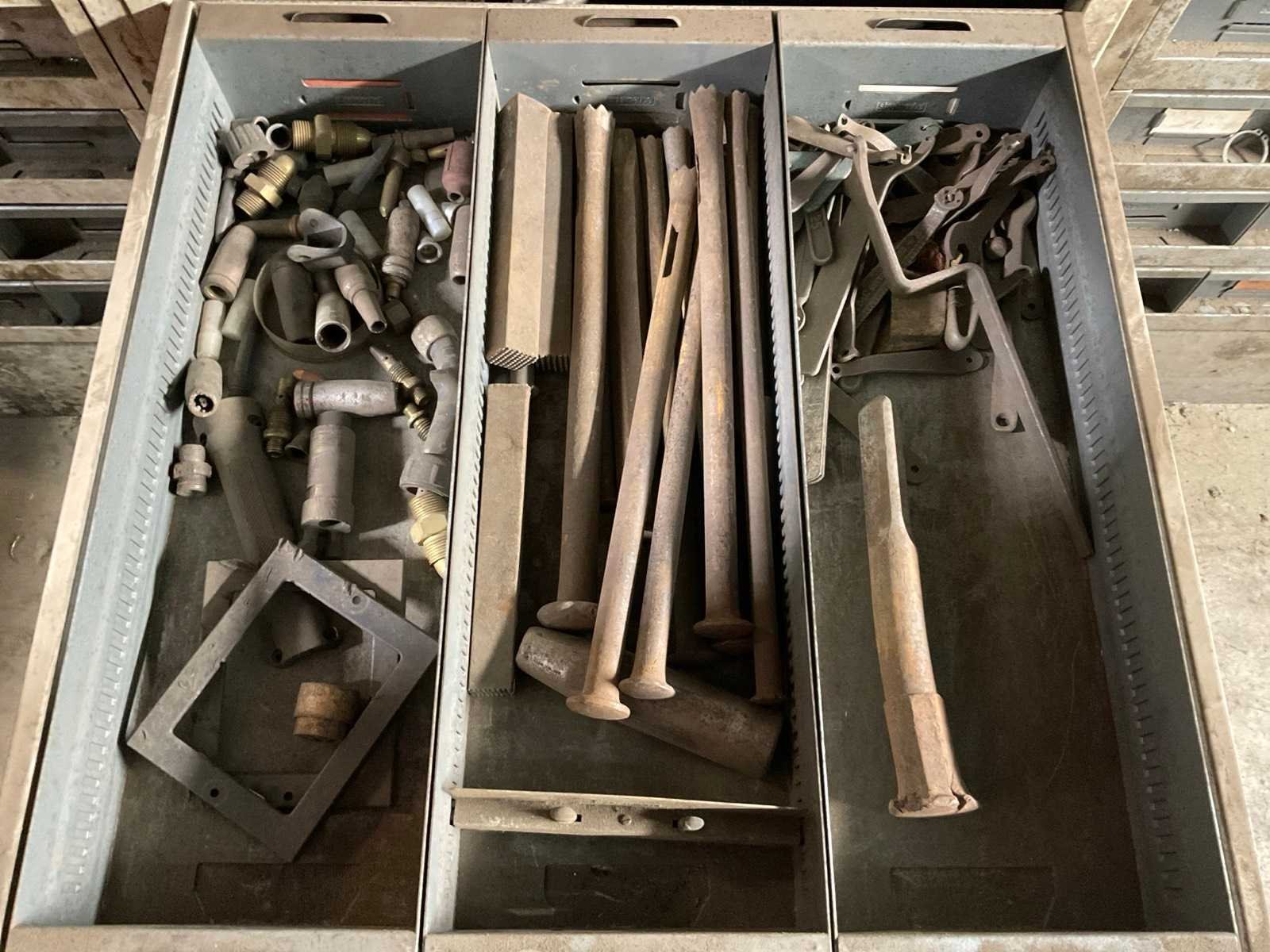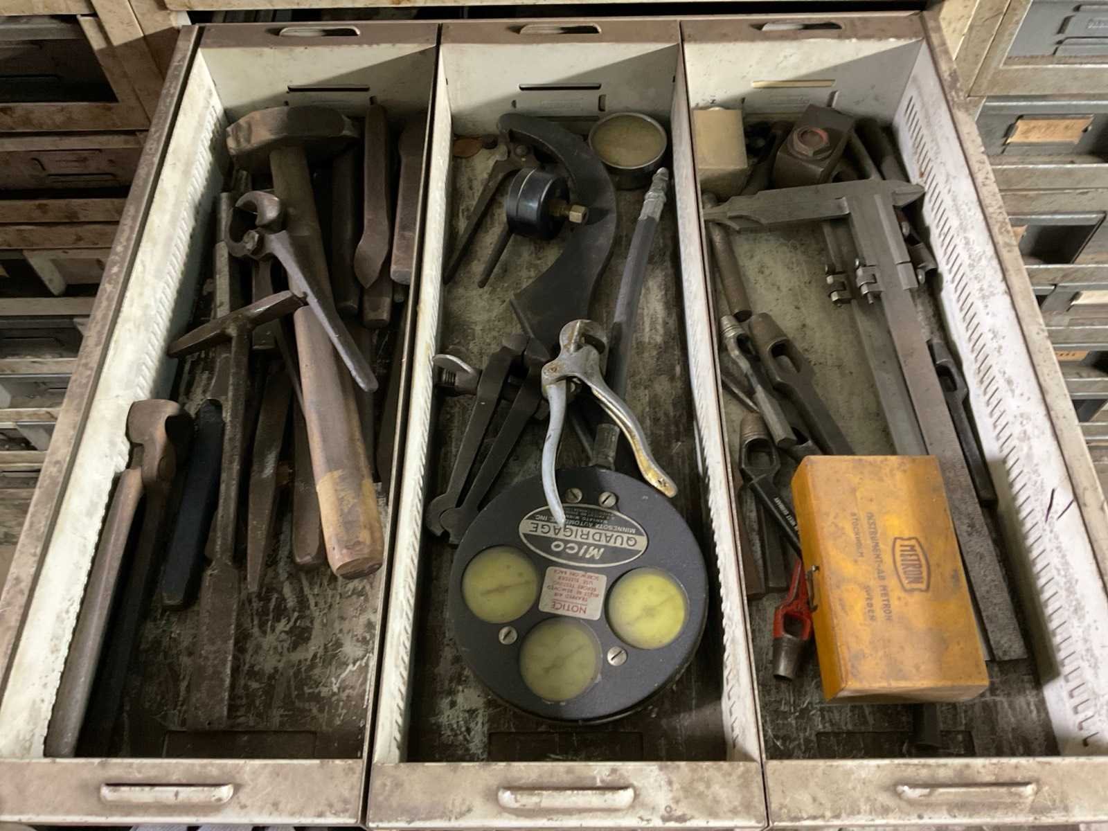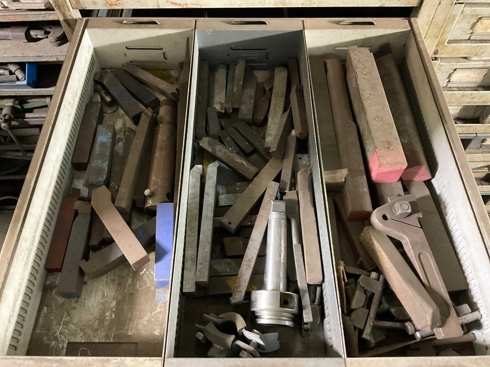 Voorzien van magazijnbakken inclusief inhoud waaronder machine toebehoren waaronder opnames, ruimers, boren, handgereedschap, etc Merk: Staalmeubel Lengte: 90 Breedte: 65cm Hoogte: 150cm Materiaal: Staal