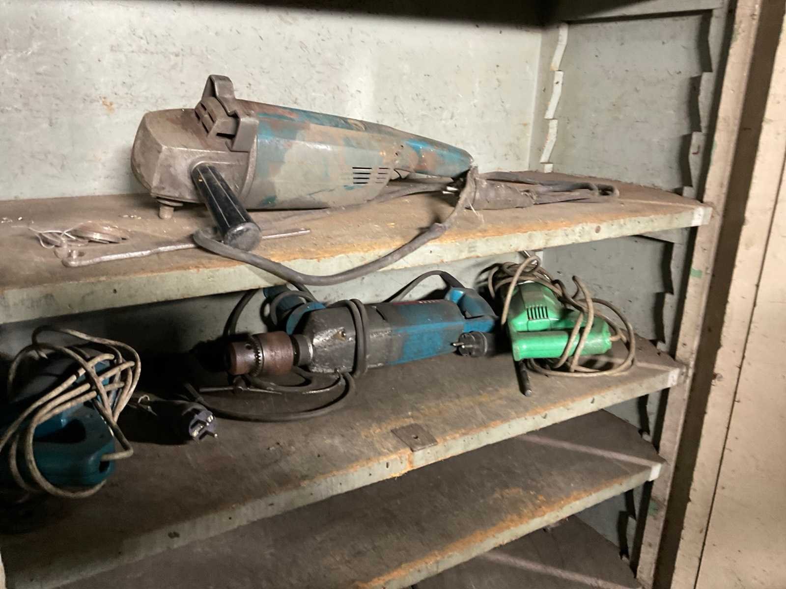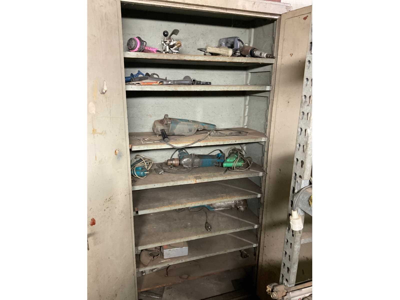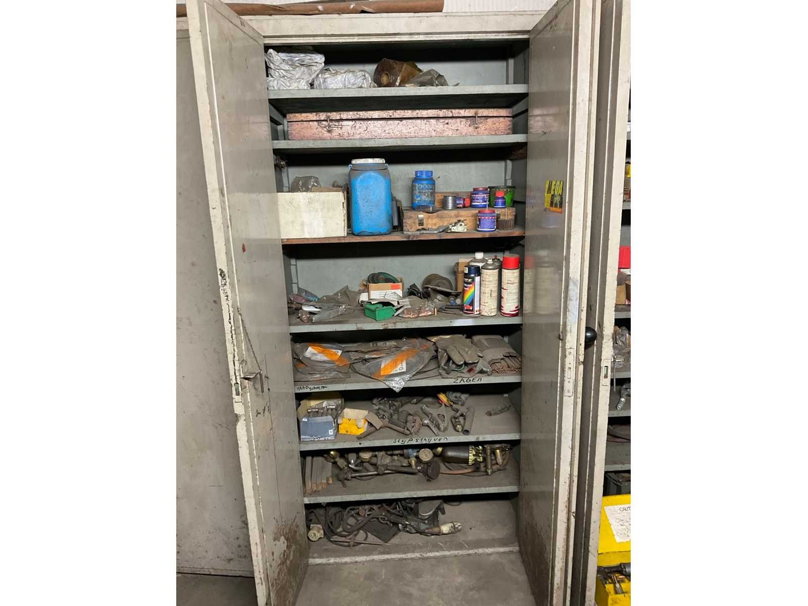 Kast is 1 geheel, inclusief inhoud waaronder ruimers, lastoebehoren, bevestigingsmaterialen, elektrisch gereedschap. Inclusief 1x gegalvaniseerde legbordstelling 100x46x200cm Lengte: 3850 Breedte: 470cm Hoogte: 2100cm Materiaal: Hout