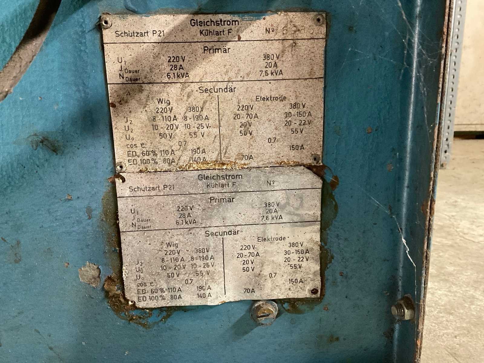 Merk: WIG Type: Uniarc 3 Inschakelduur: 60% Max. lasvermogen: 110A Aansluiting: 400V Afmeting l: 1050mm Afmeting b: 550mm Afmeting h: 800mm