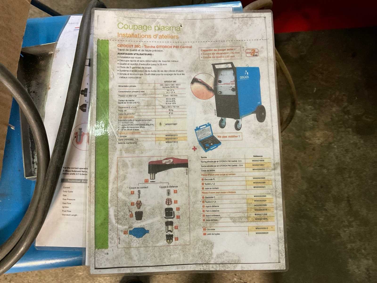 Merk: Oerlikon Type: Citocut 25 Ampère belasting: 80A Inschakelduur: 40% Machinegewicht: 80kg Afmeting l: 800mm Afmeting b: 500mm Afmeting h: 900mm