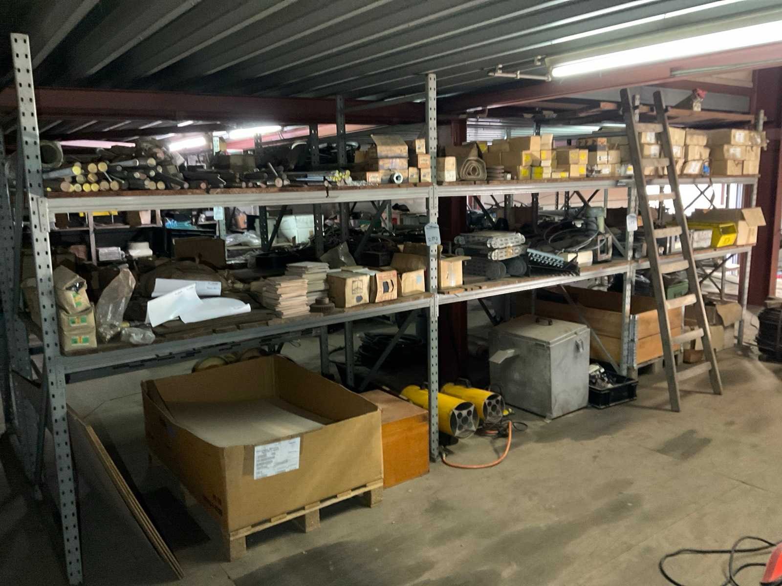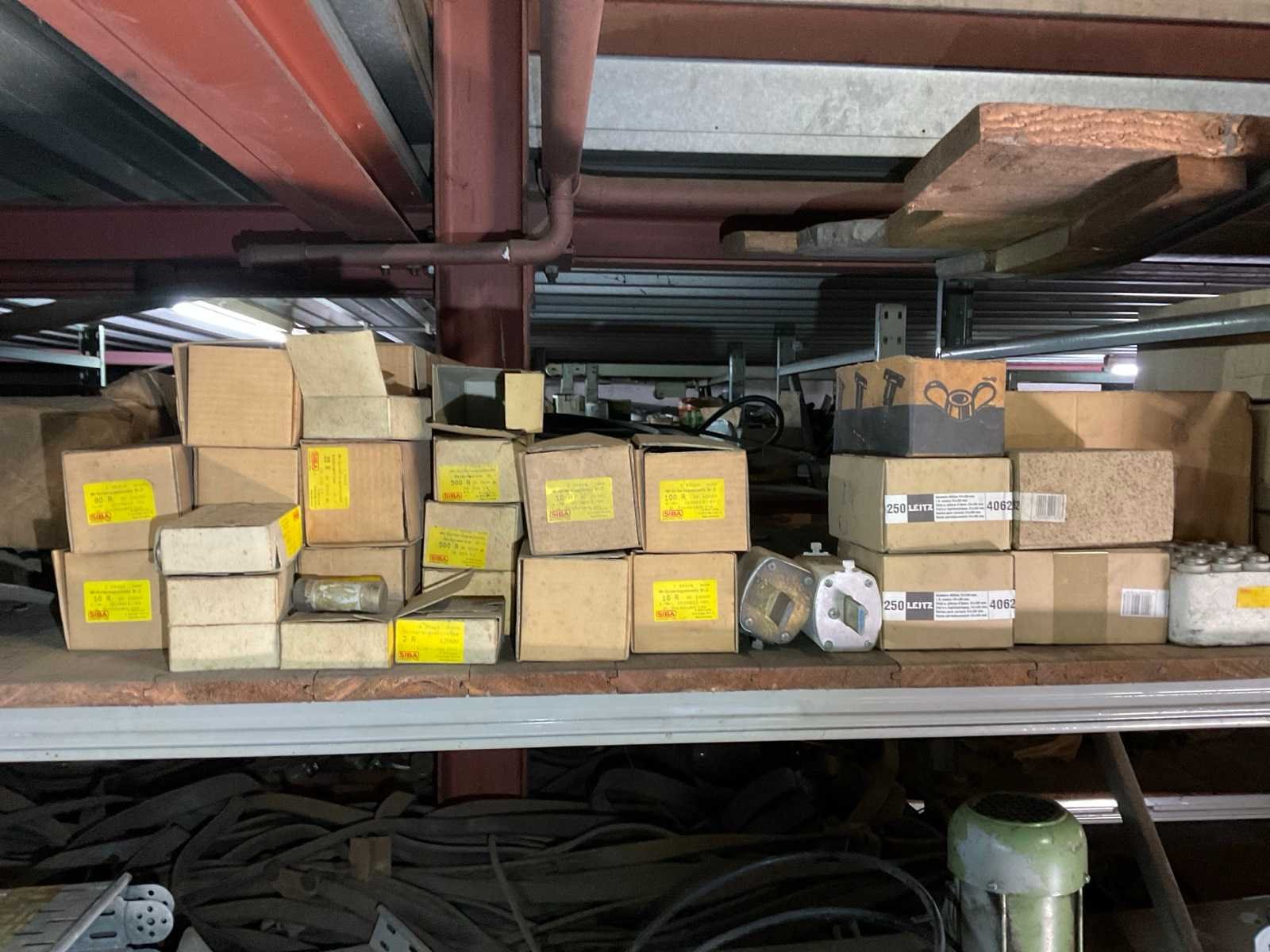 Waaronder draadeinden, heaters, 3-polige wandcontactdozen, zekeringen, mespatronen, schakelmateriaal, hydrauliekslangen, etc. In en inclusief 2x legbordstelling afmeting per stelling 800x90x215cm