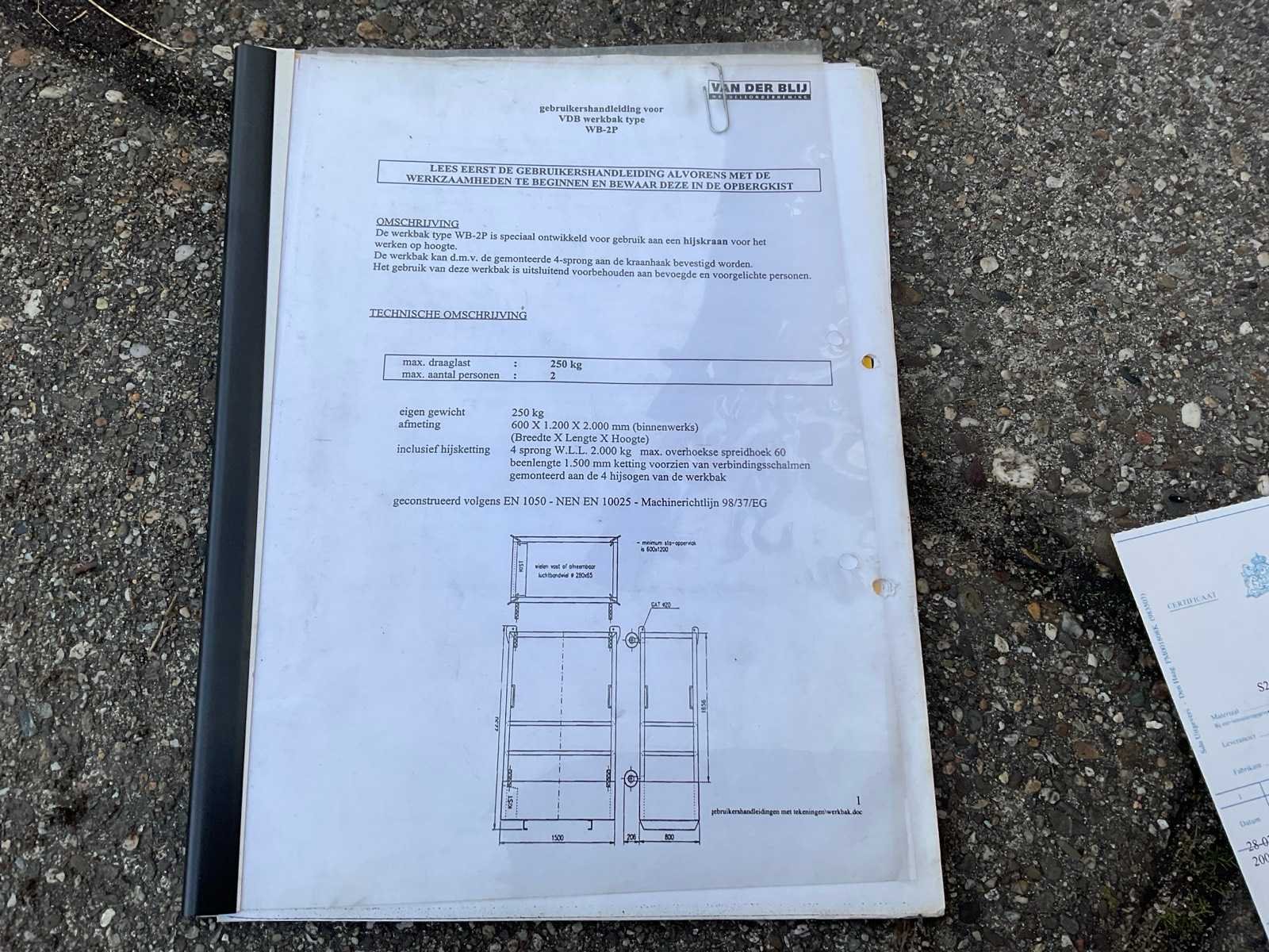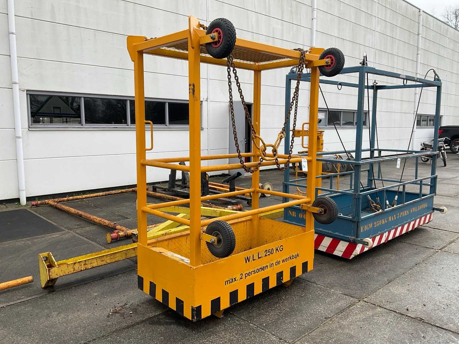 Merk: BSV Type: VDB / WB 2P Serienummer: 99 01 151 Hijsvermogen: 250kg Afmeting l: 2200mm Afmeting b: 800mm Afmeting h: 2200mm Eigen gewicht: 250kg Totale afmeting L: 1500mm Totale afmeting Breedte: 1100mm Totale afmeting Hoogte: 2200mm