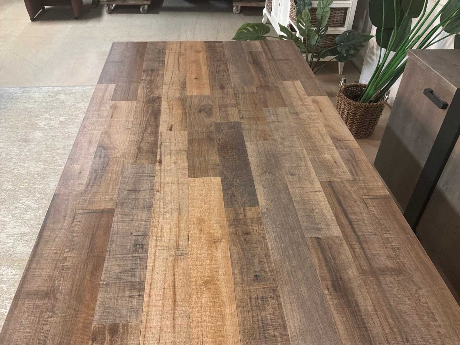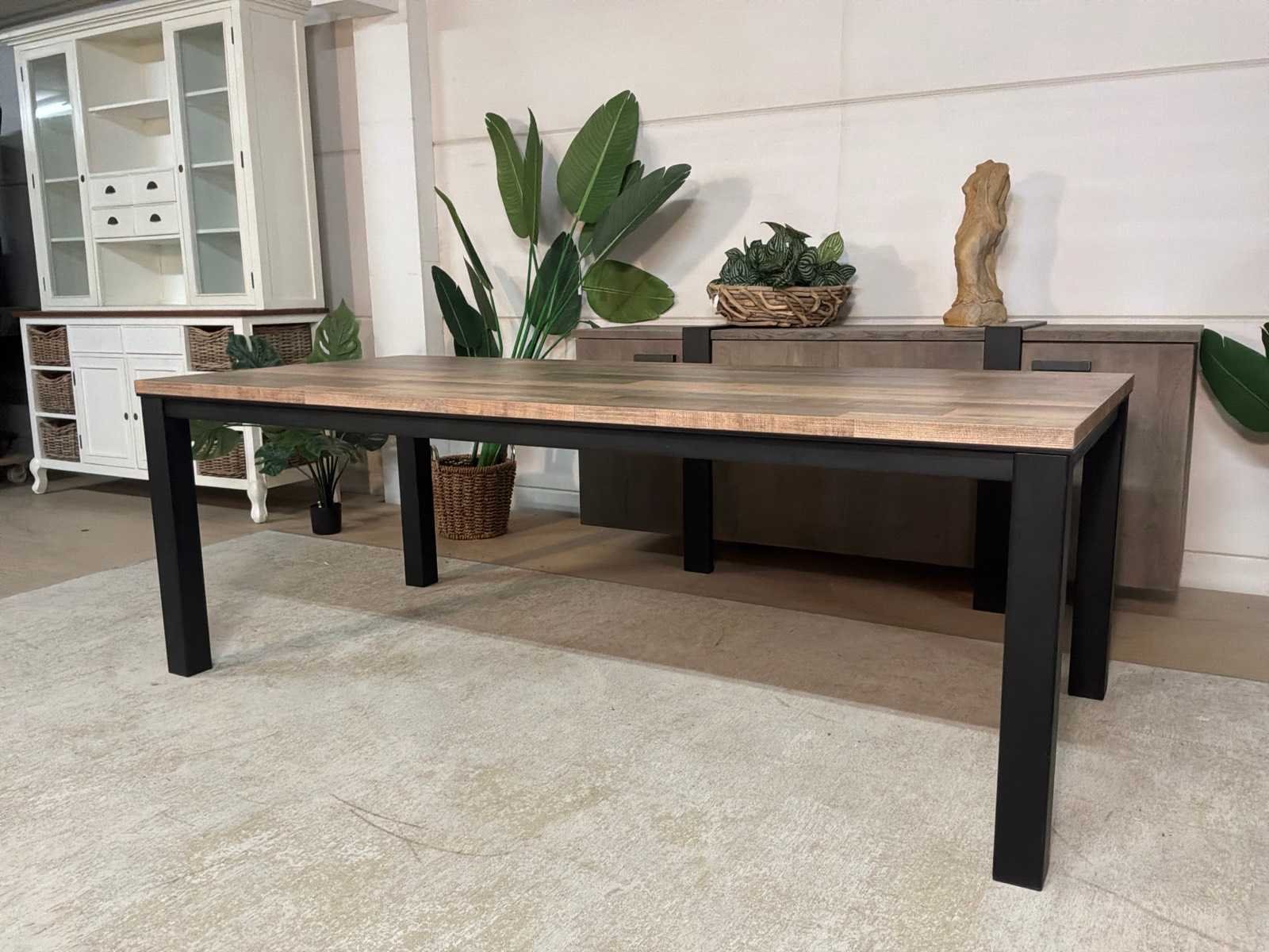 Zware uitvoering. Eetkamertafel beschikt over een ijzeren frame Model: Björne Lengte: 100cm Breedte: 220cm Hoogte: 78cm