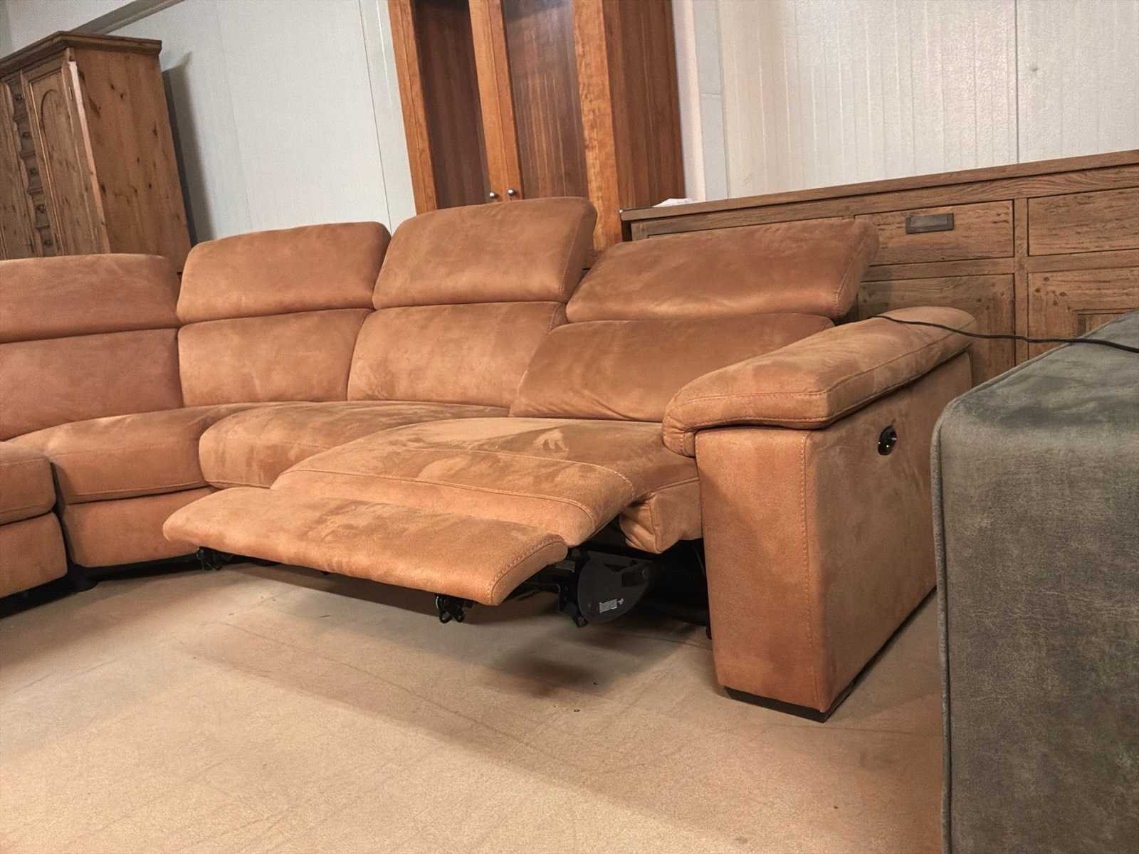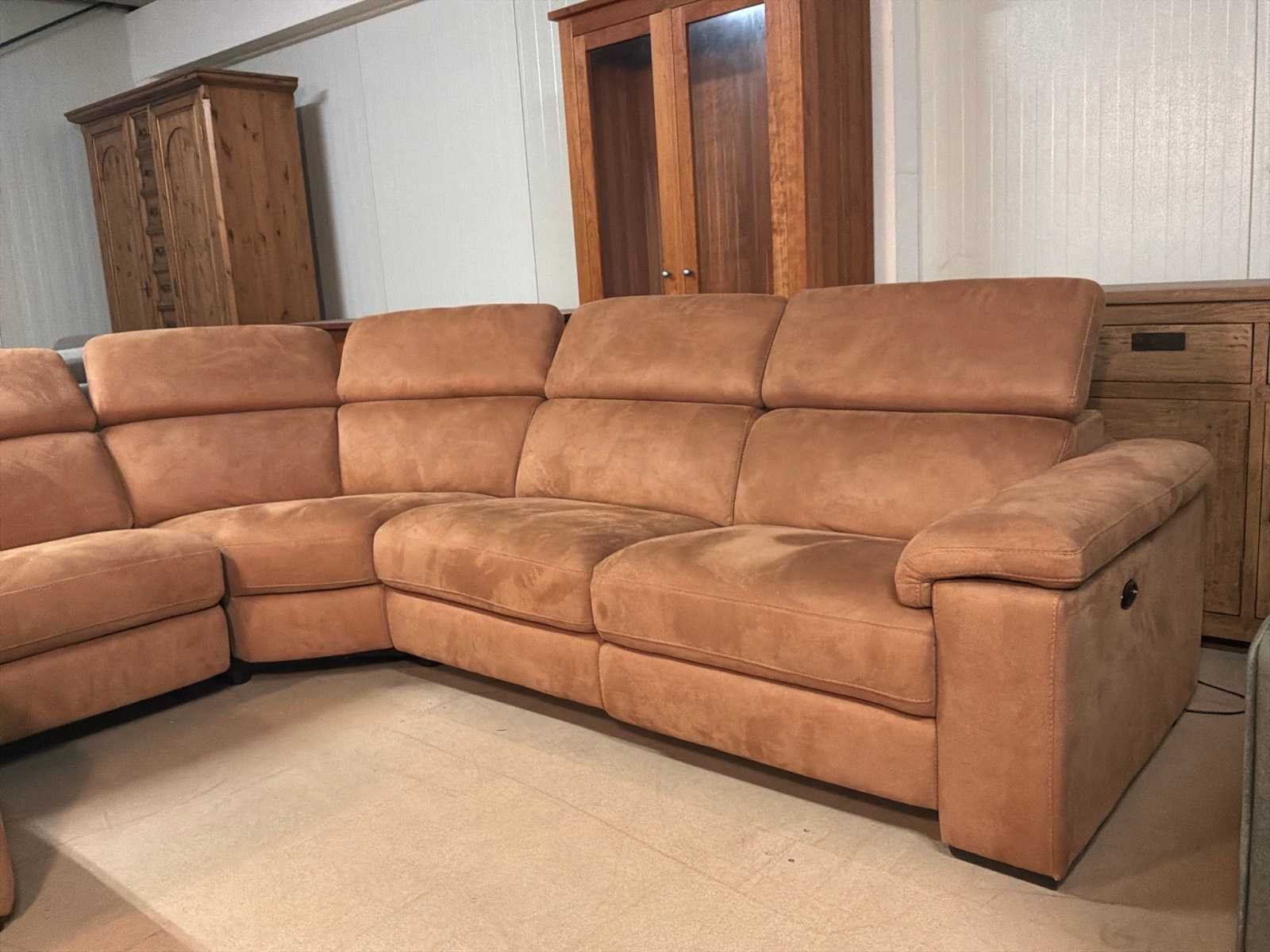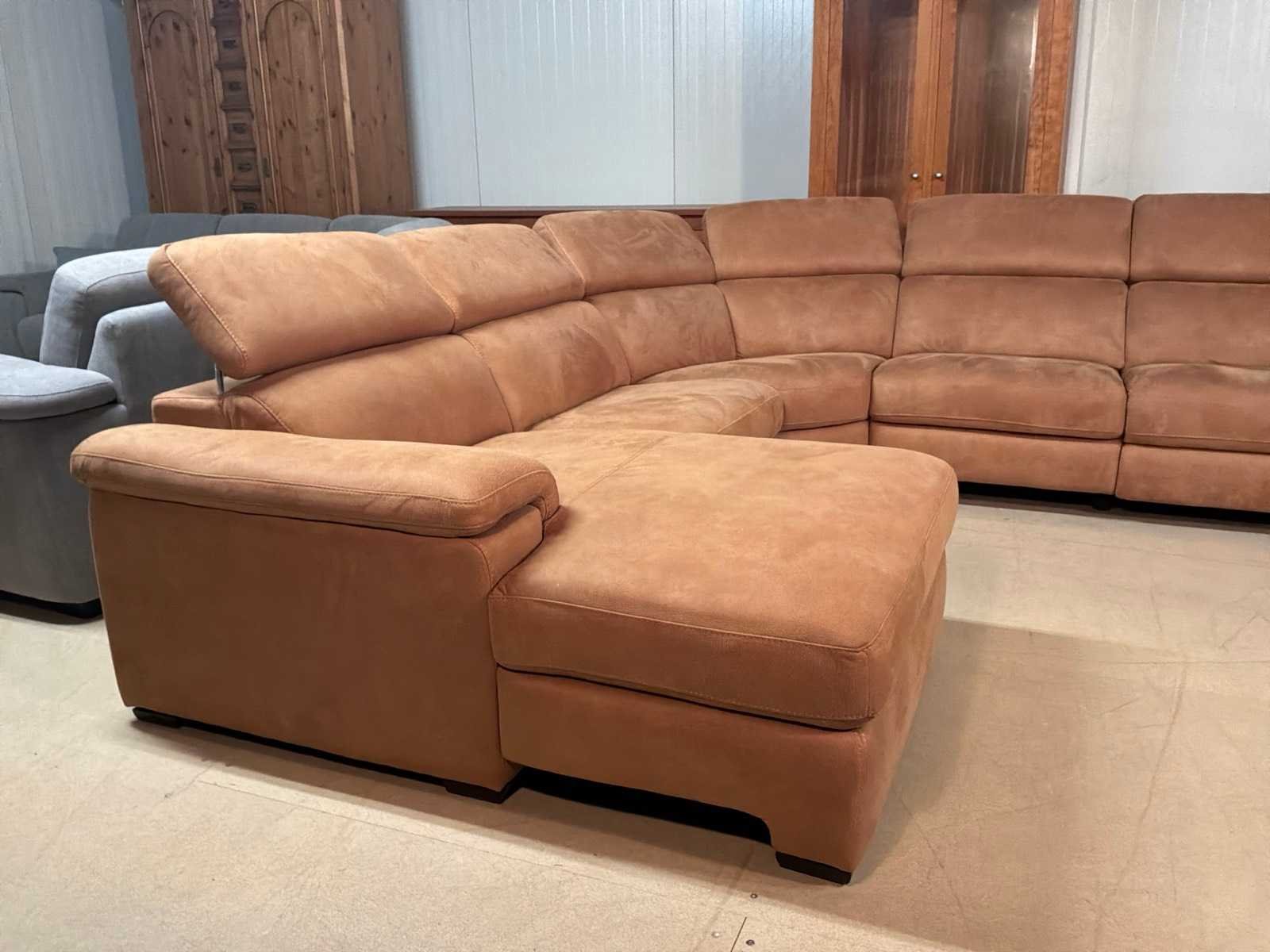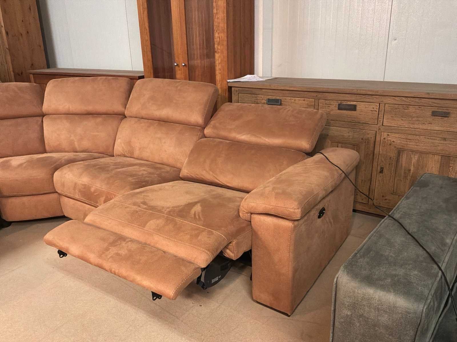 Bankstel bestaat uit 4-delen. Bankstel beschikt over verstelbare hoofdsteun over de gehele bank. Model: Libre Kleur: Cognac Lengte: 285cm Breedte: 285cm Hoogte: 77cm Zithoogte: 42cm Diepte: 52cm Materiaal: Geborsteld leer