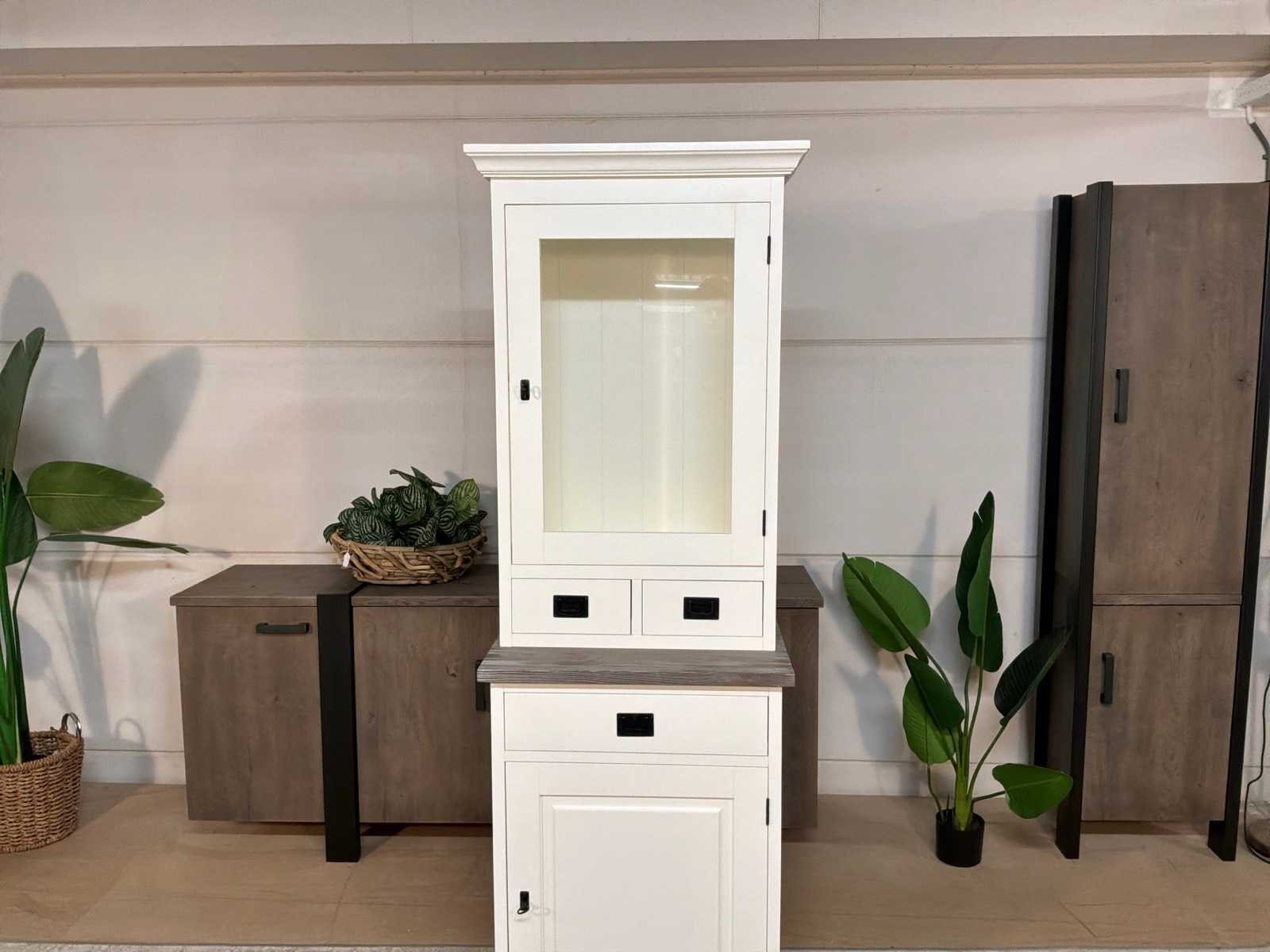 Lichte uitvoering. Inclusief 2 plankjes. Model: Saar Lengte: 48cm Breedte: 65cm Hoogte: 200cm