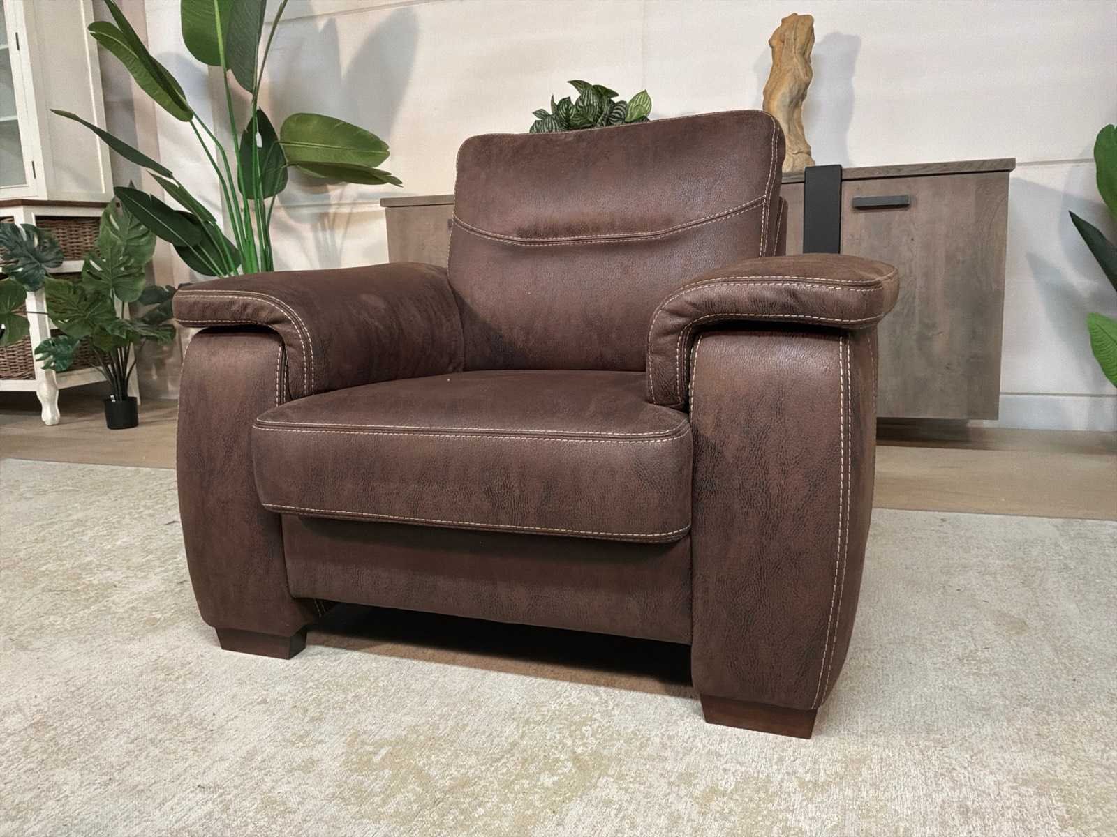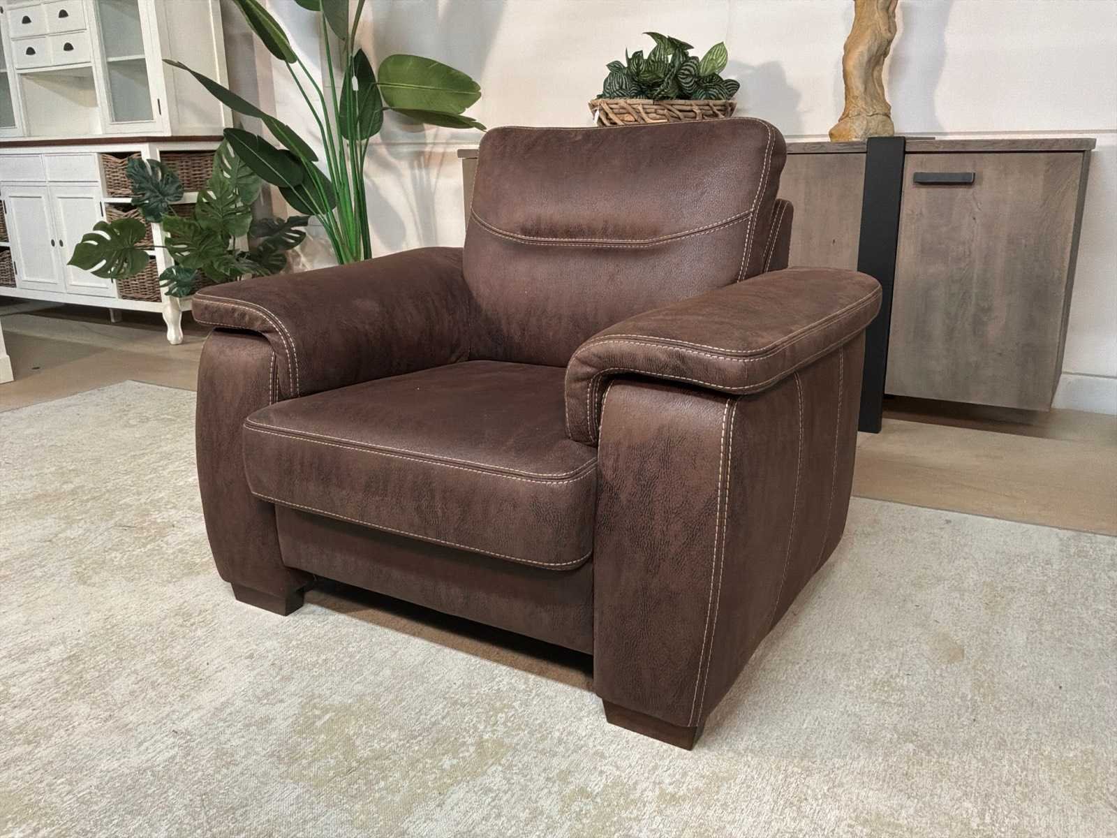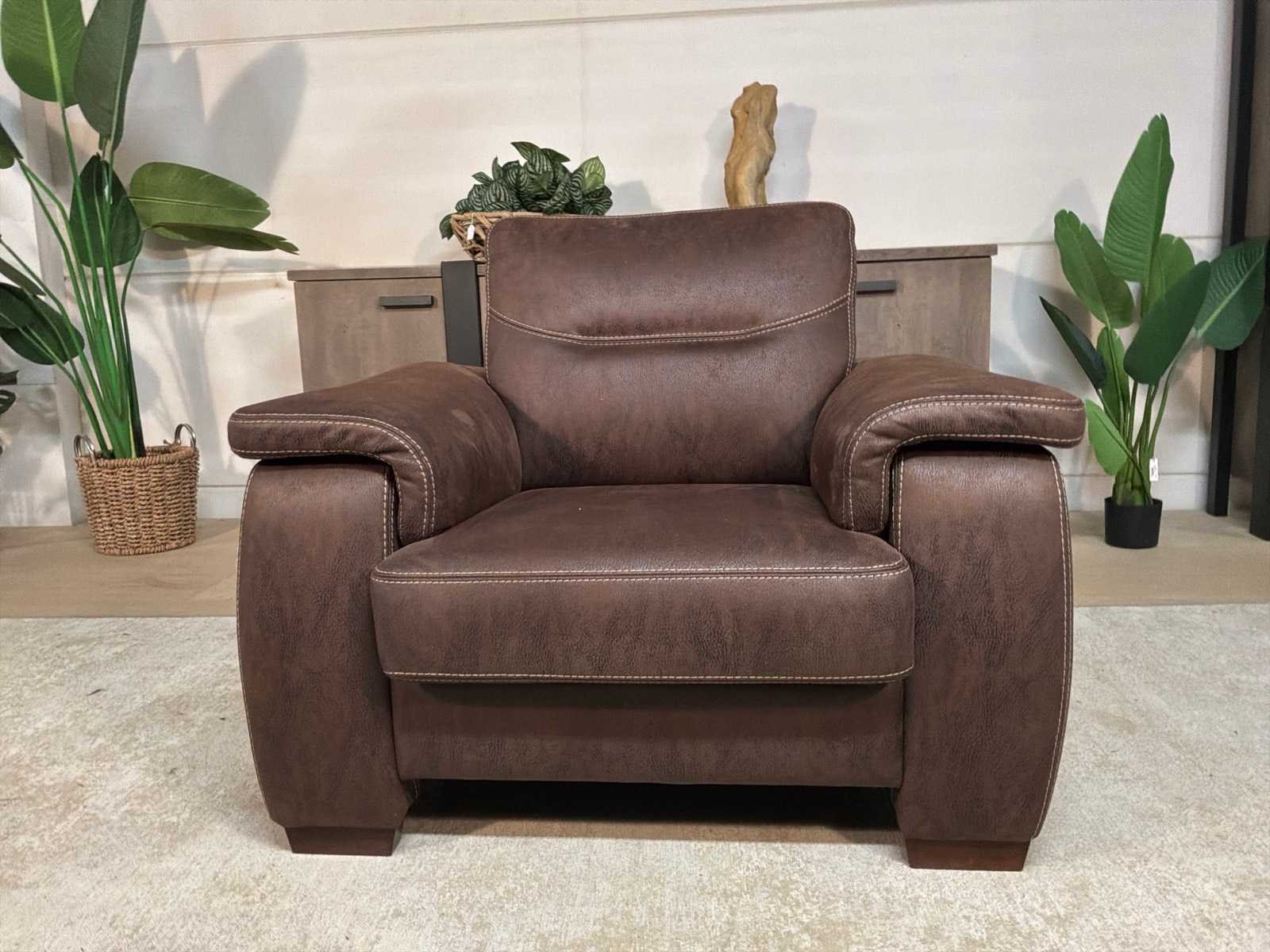 Model: Melvin Lengte: 95cm Breedte: 100cm Hoogte: 75cm Materiaal: Geborsteld leer