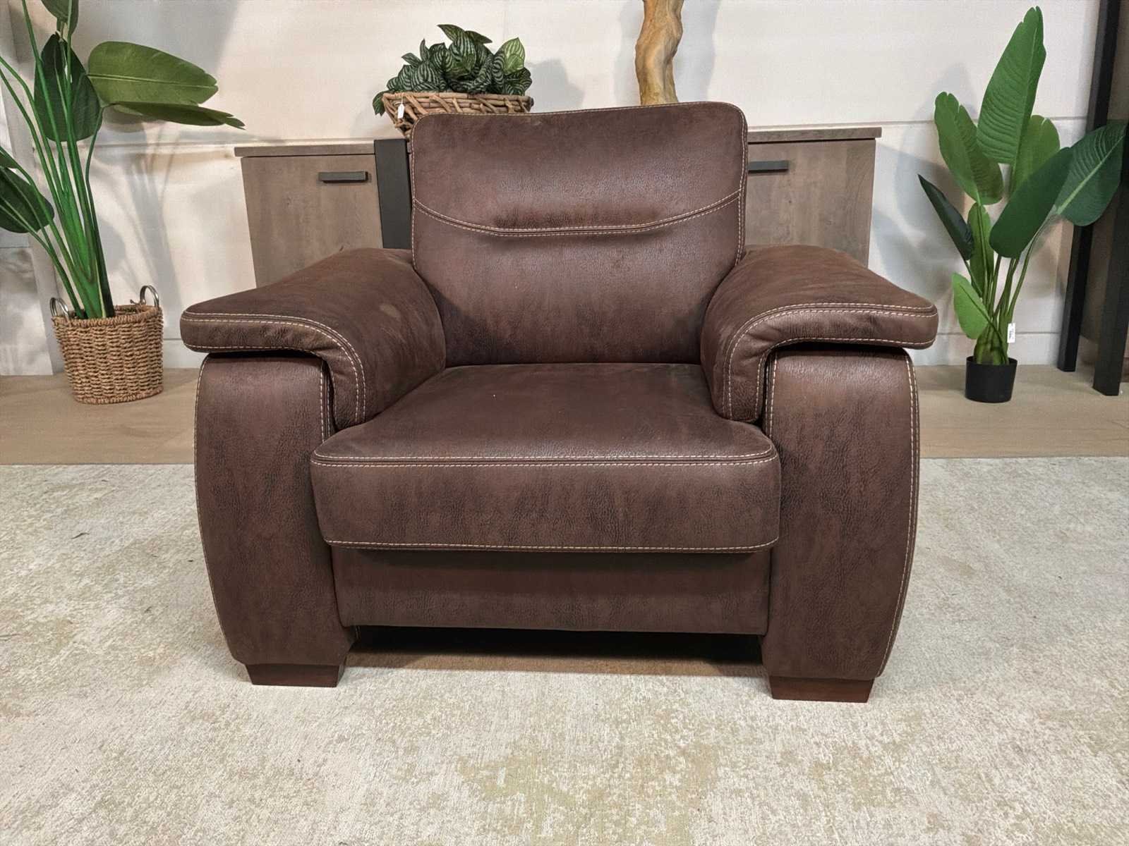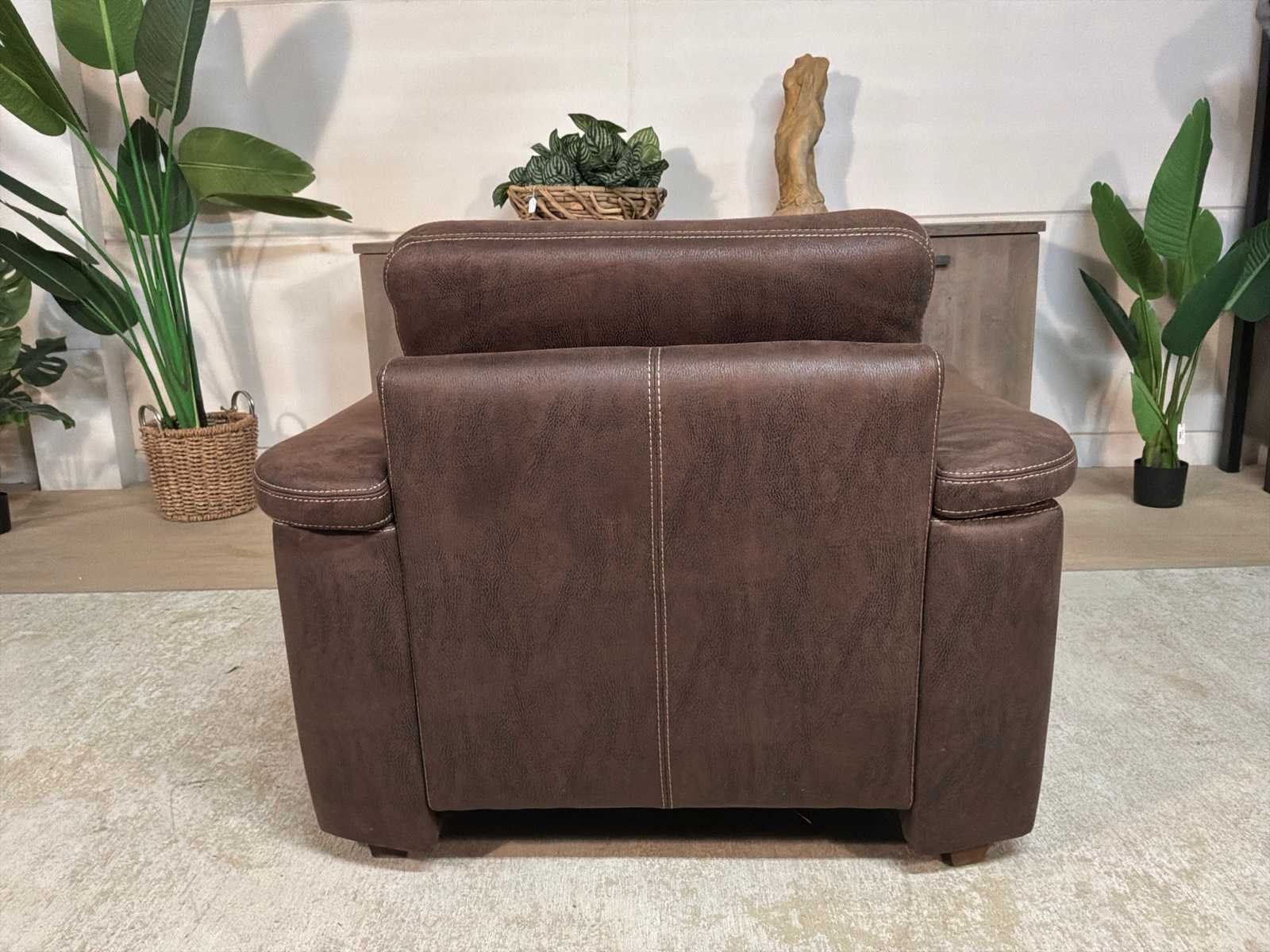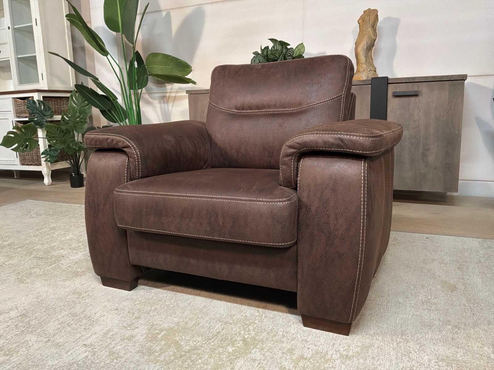 Model: Melvin Lengte: 95cm Breedte: 100cm Hoogte: 75cm Materiaal: Geborsteld leer