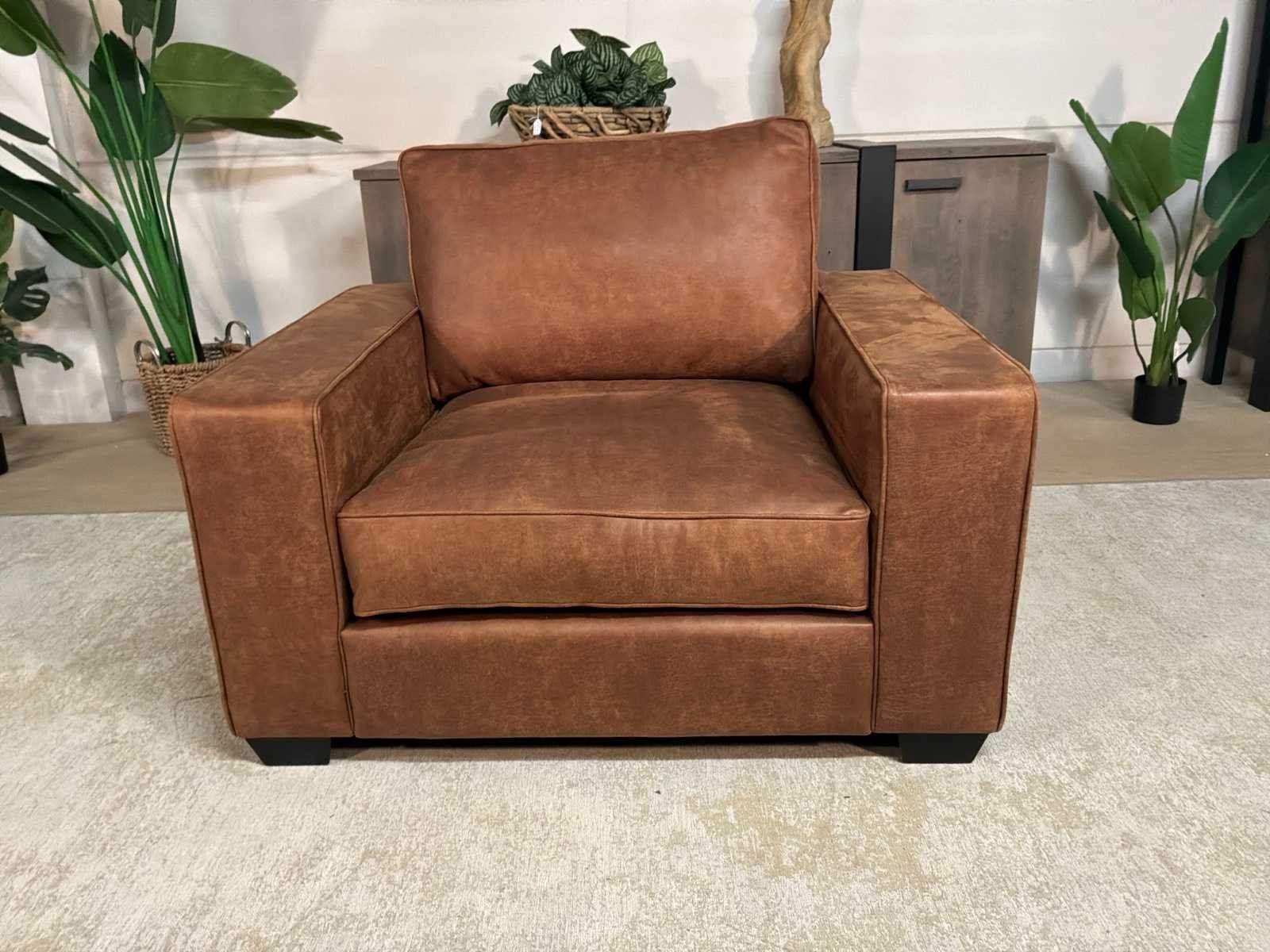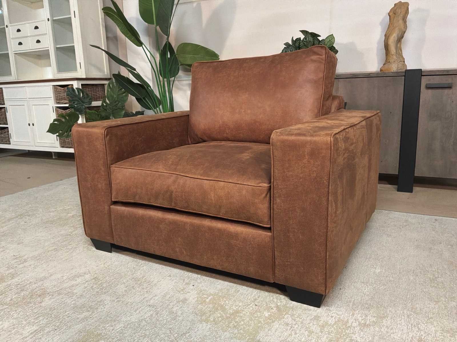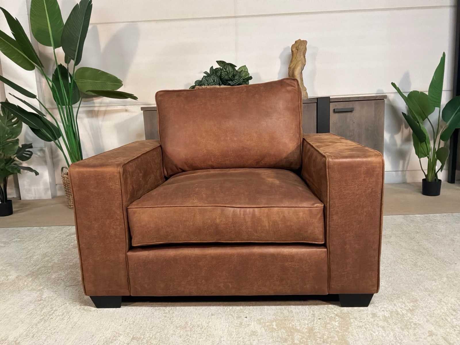 Model: Marcello Kleur: Cognac Lengte: 100cm Breedte: 120cm Hoogte: 72cm Materiaal: Geborsteld leer
