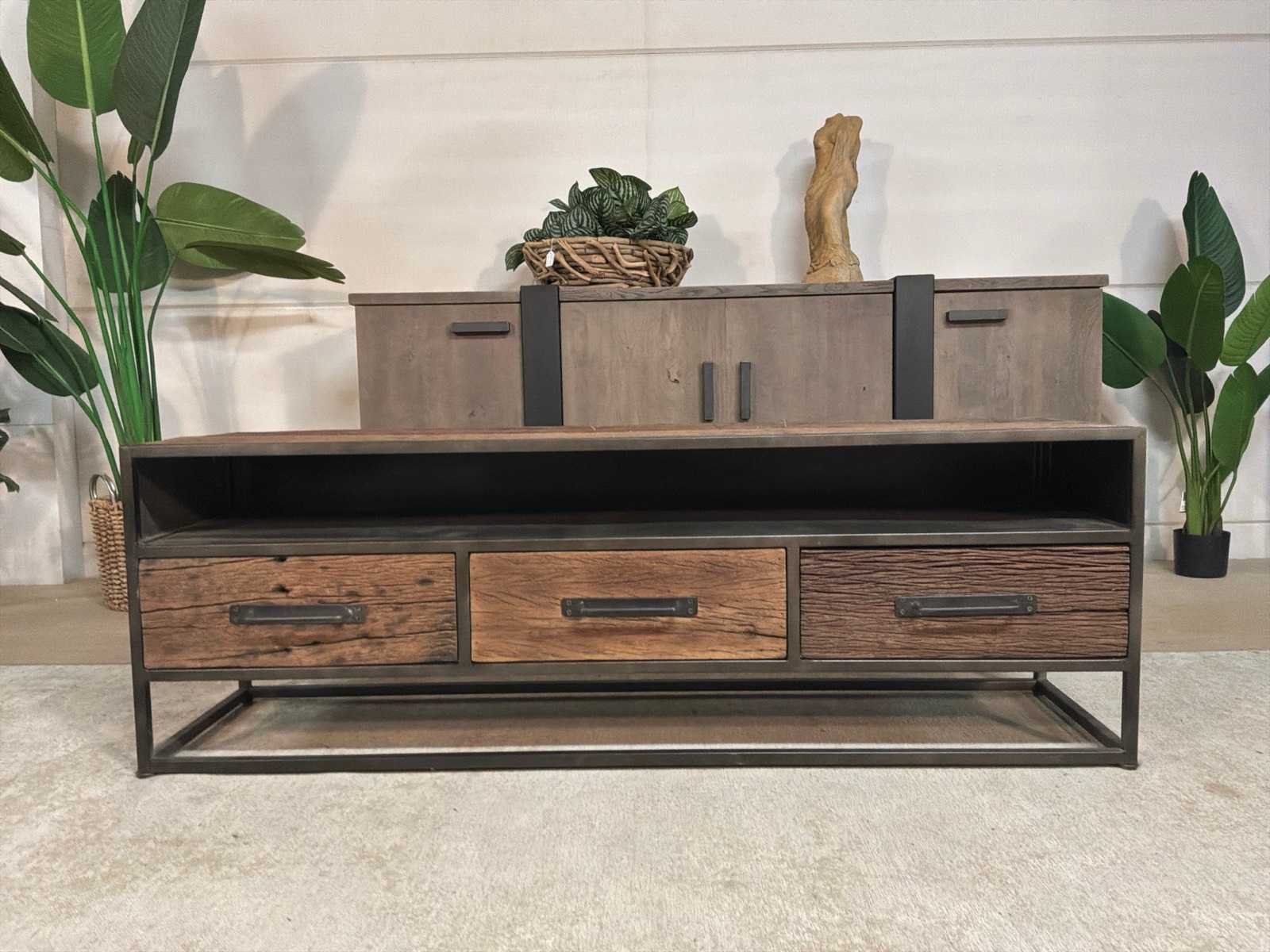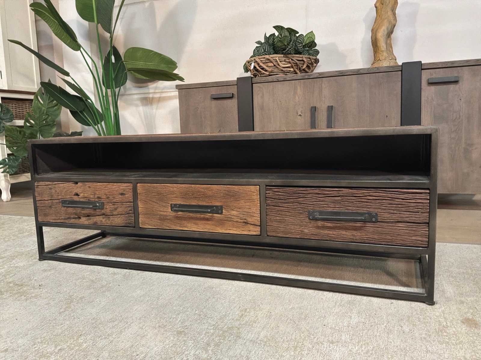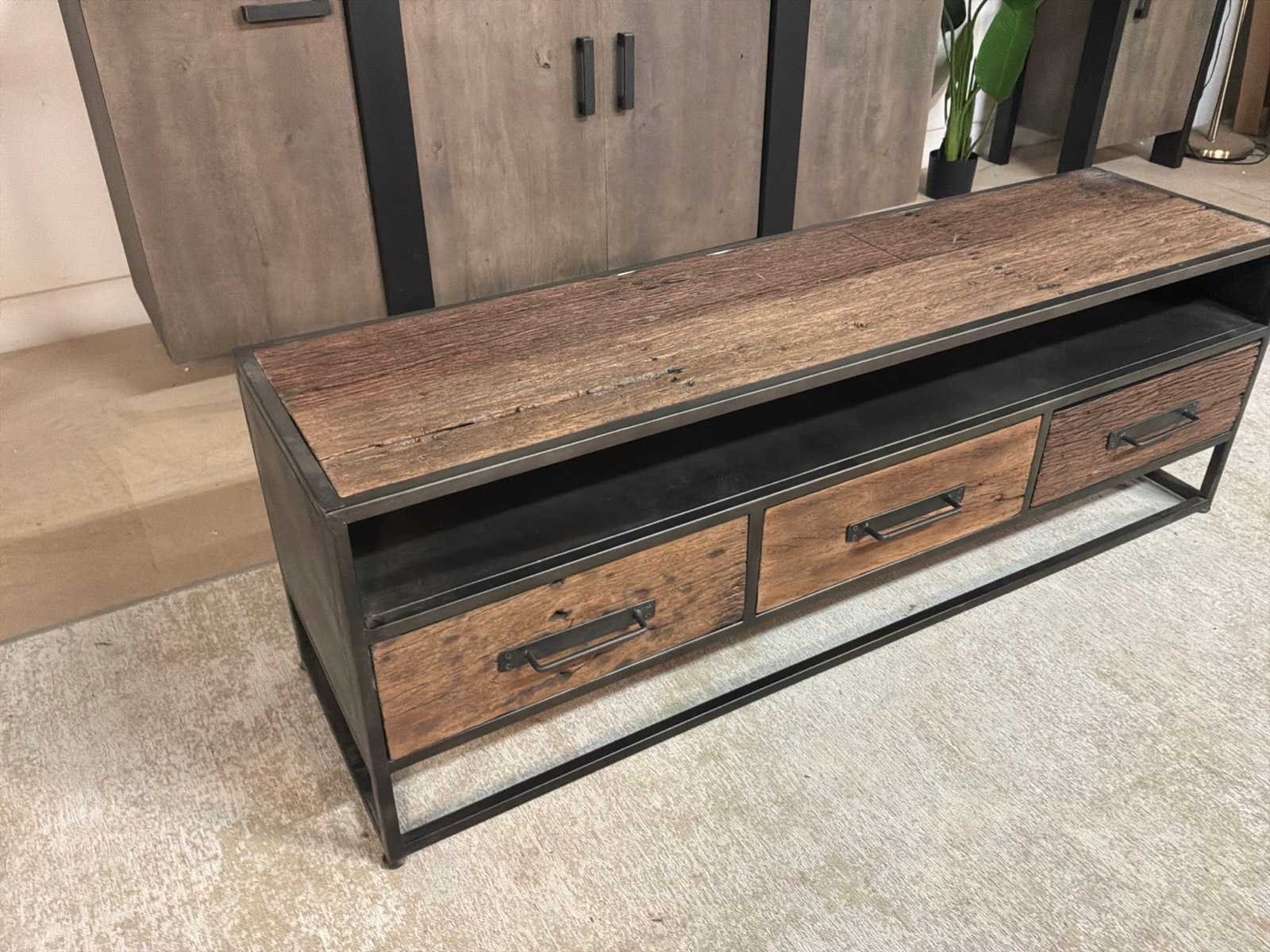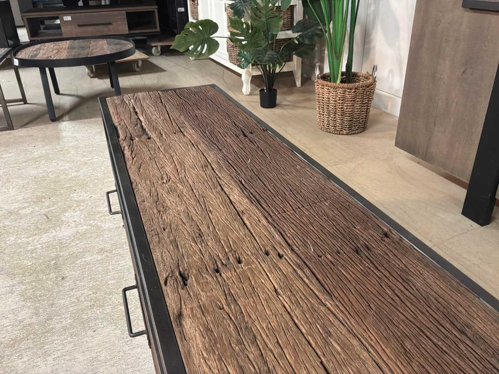 Model: Industrieel Lengte: 40cm Breedte: 150cm Hoogte: 50cm Materiaal: Hout en ijzer