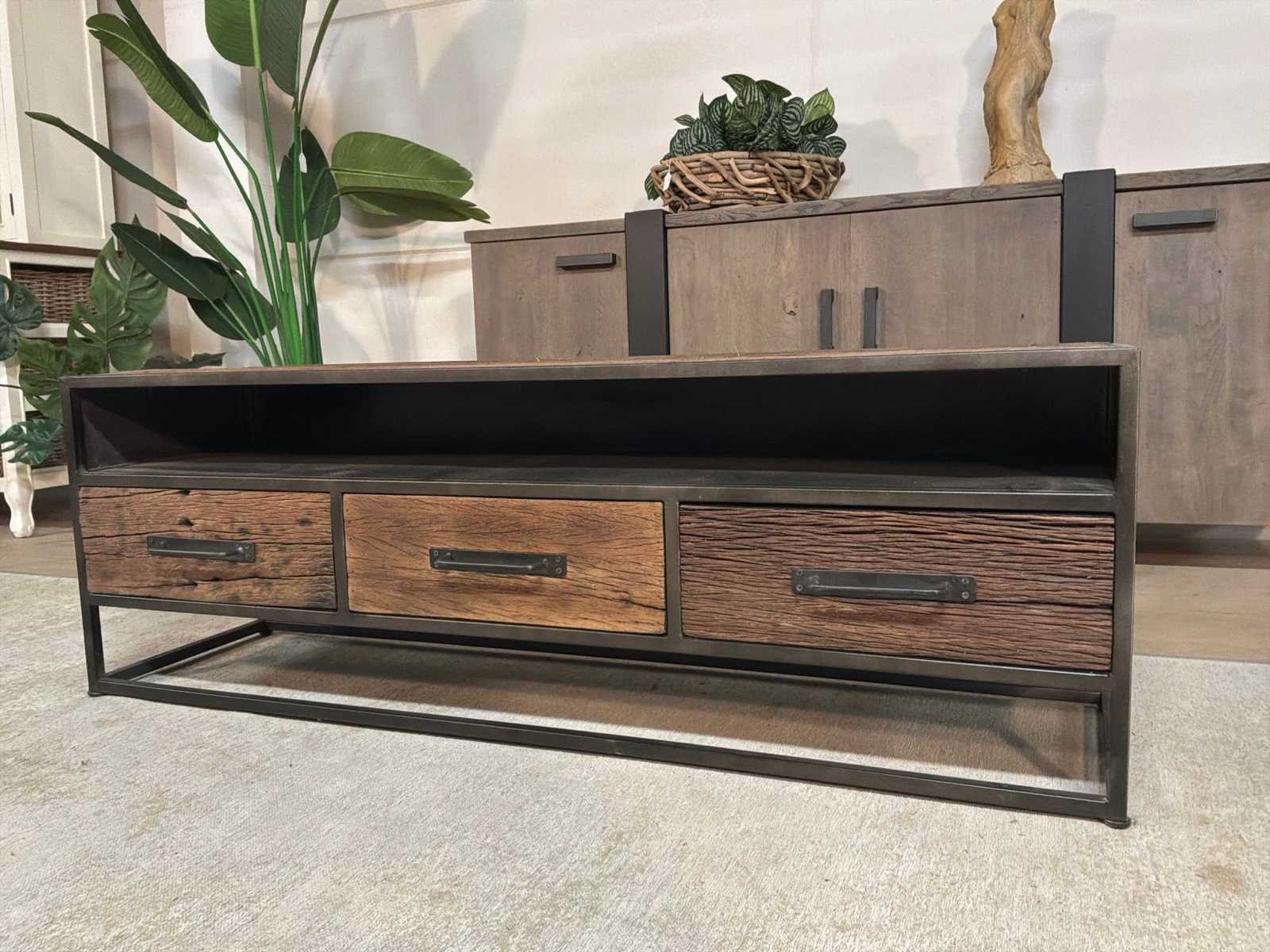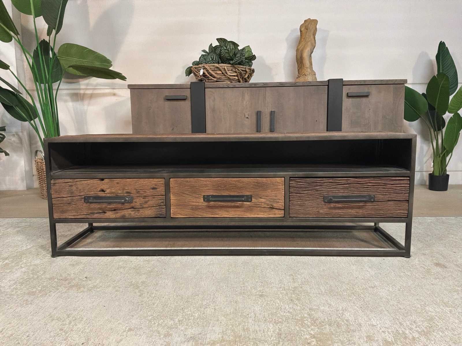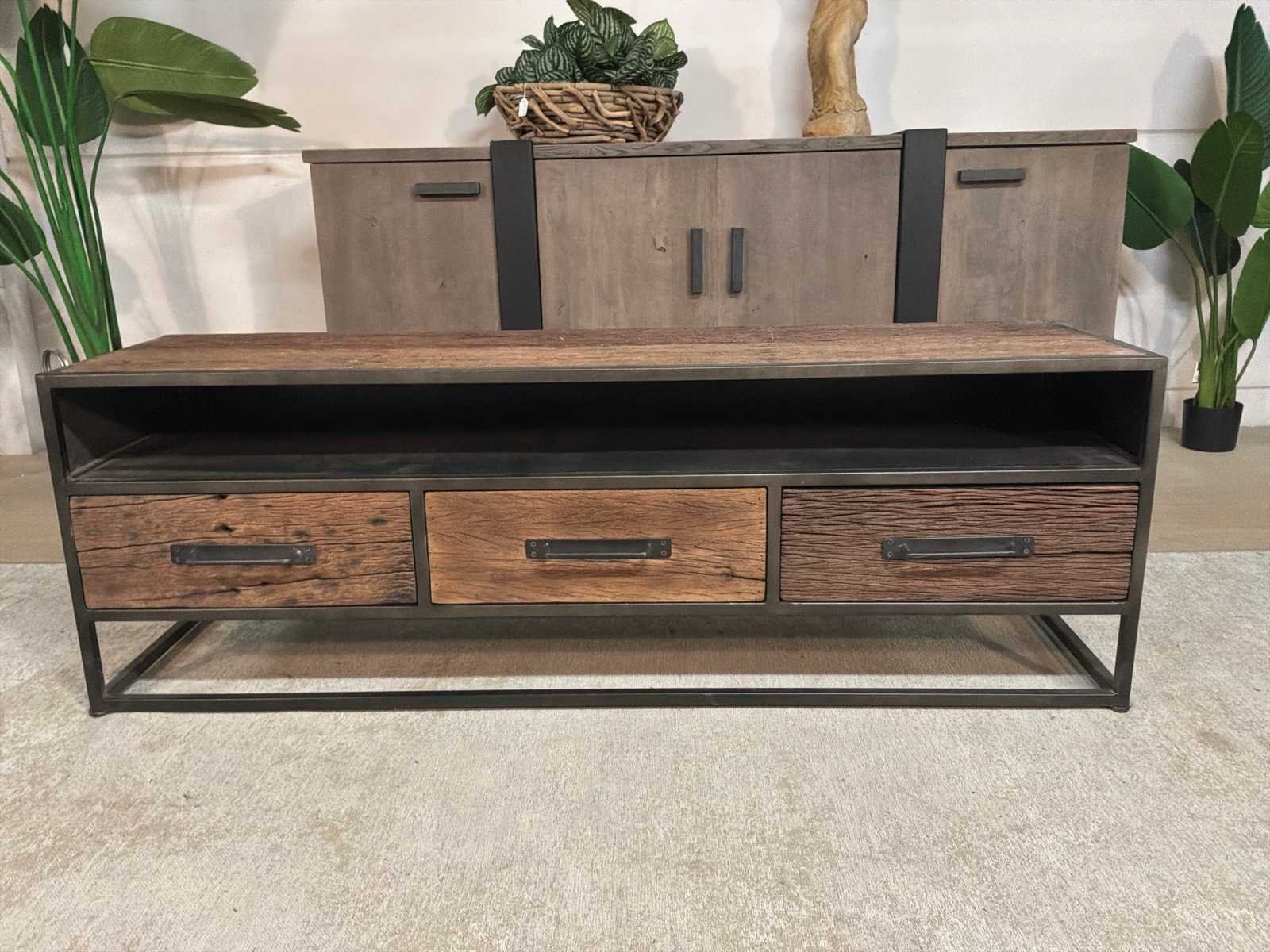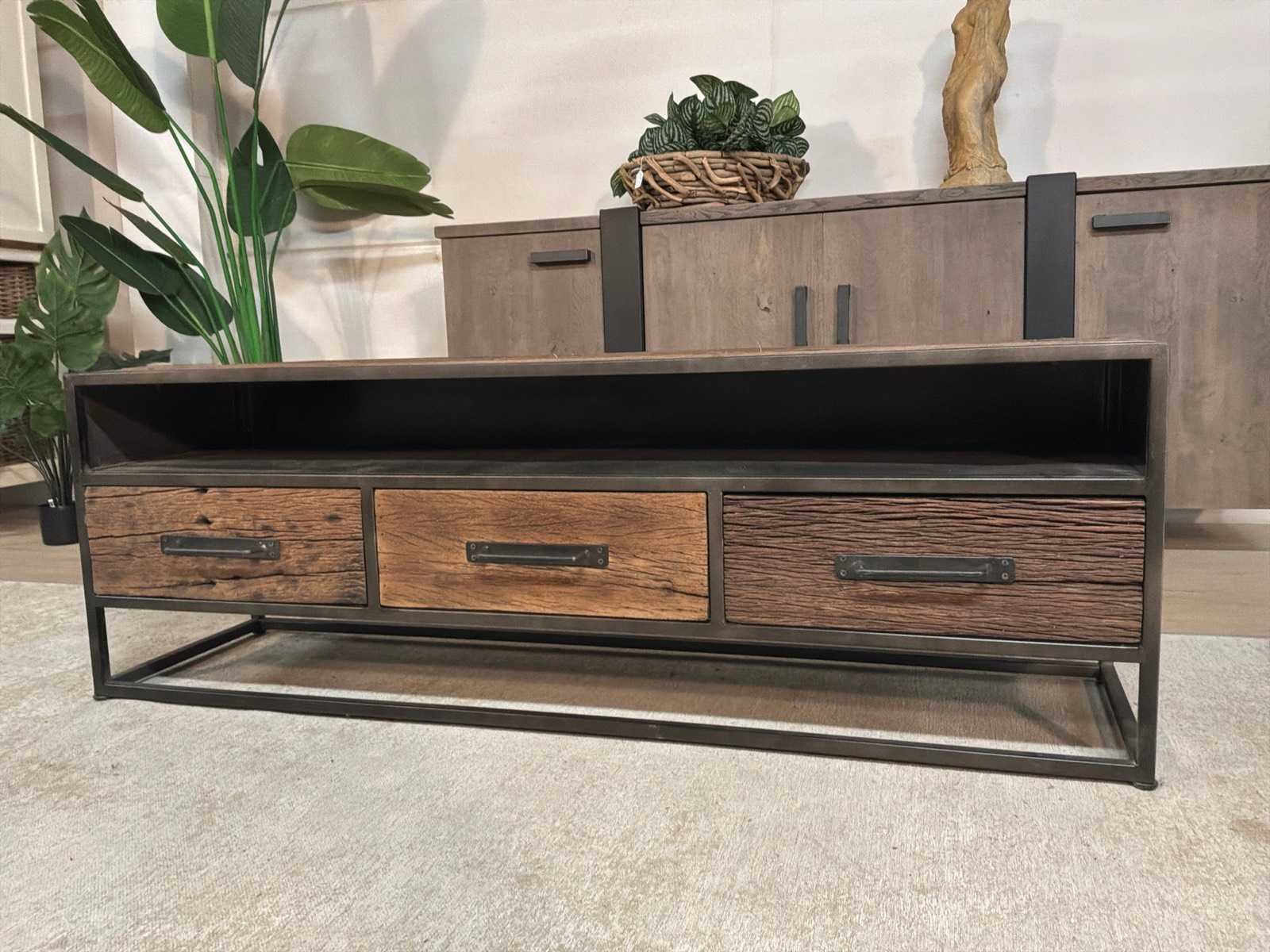 Model: Industrieel Lengte: 40cm Breedte: 150cm Hoogte: 50cm Materiaal: Hout en ijzer