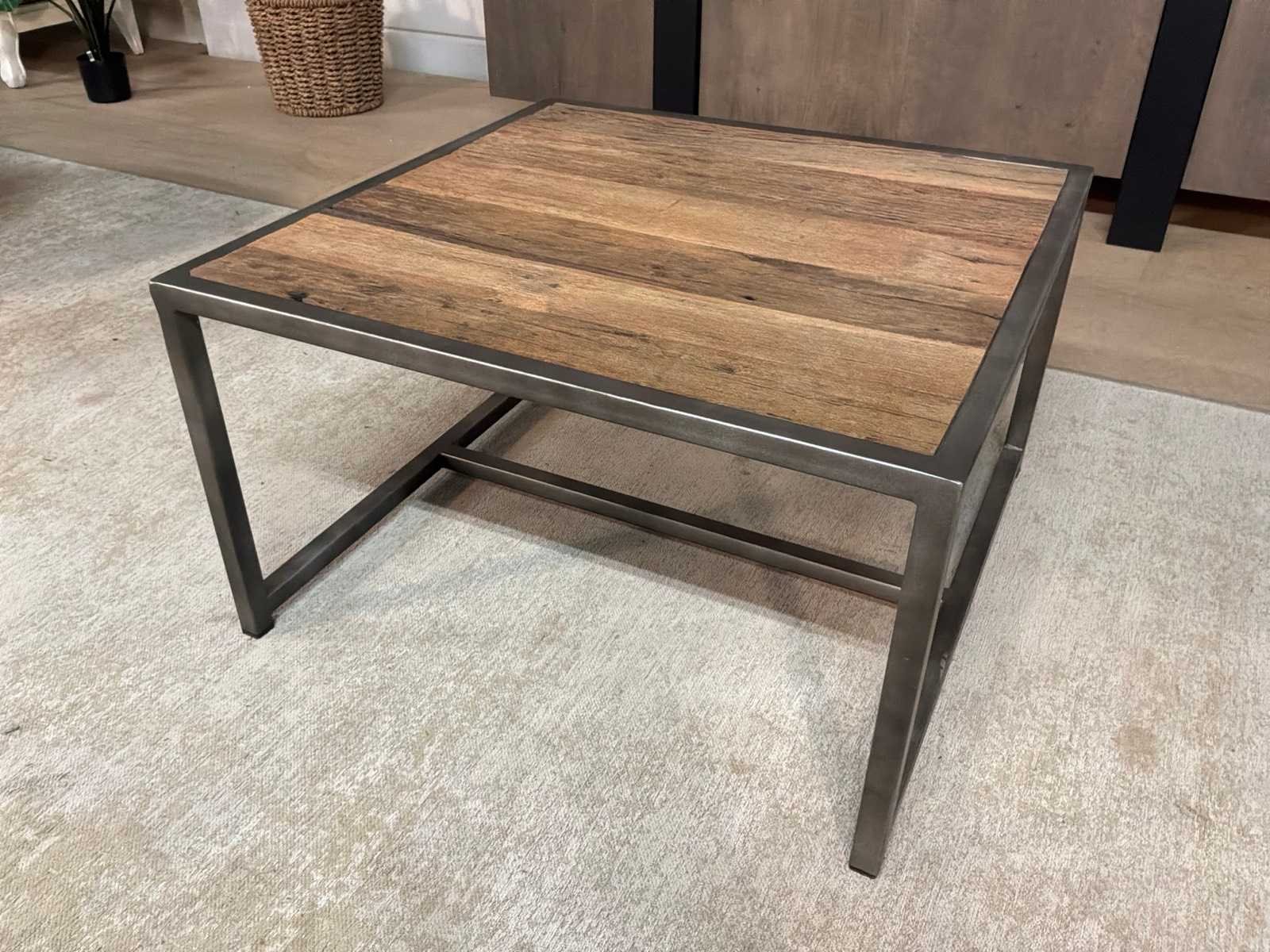 Kavel bevindt zich in doos, Model: Imre Lengte: 70cm Breedte: 70cm Hoogte: 41cm Materiaal: Hout en ijzer