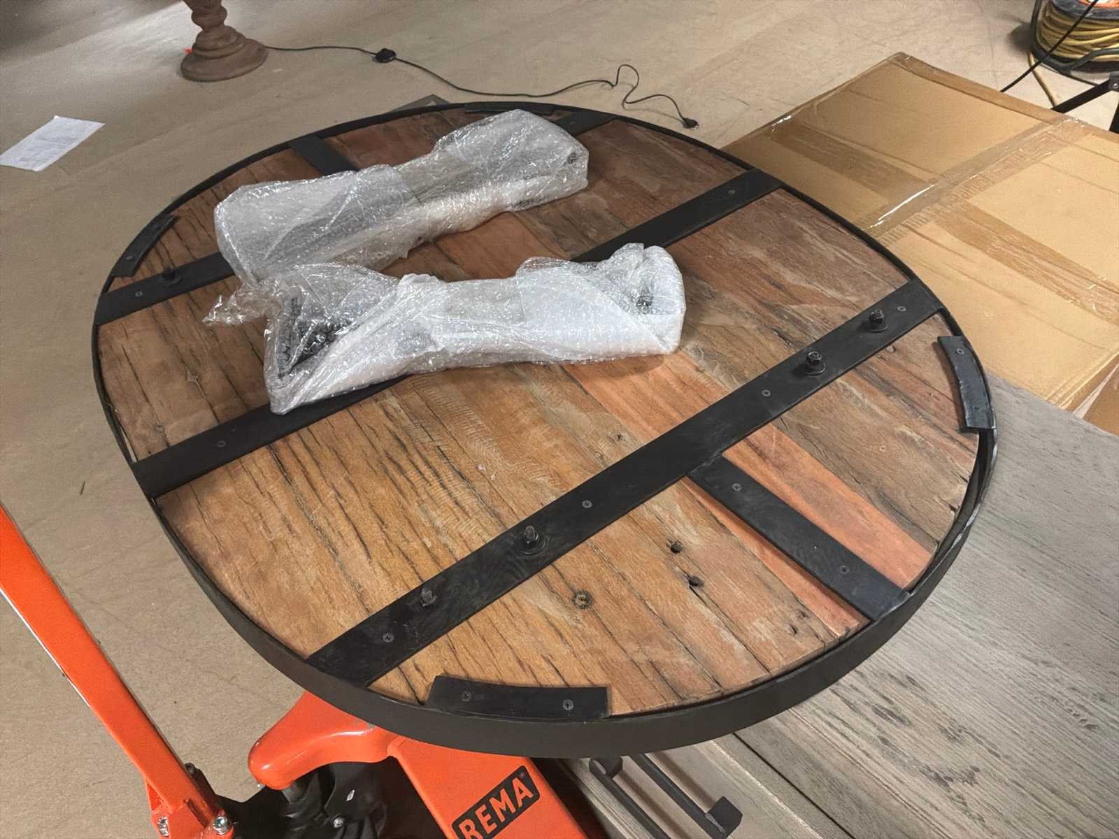 Salontafel dient nog gemonteerd te worden. Model: Xander Lengte: 80cm Breedte: 100cm Hoogte: 41cm Materiaal: Hout en ijzer