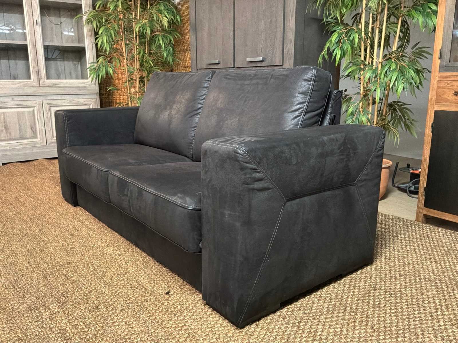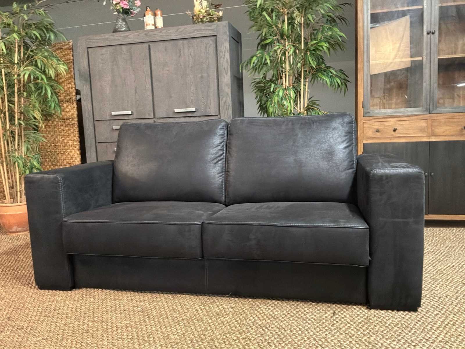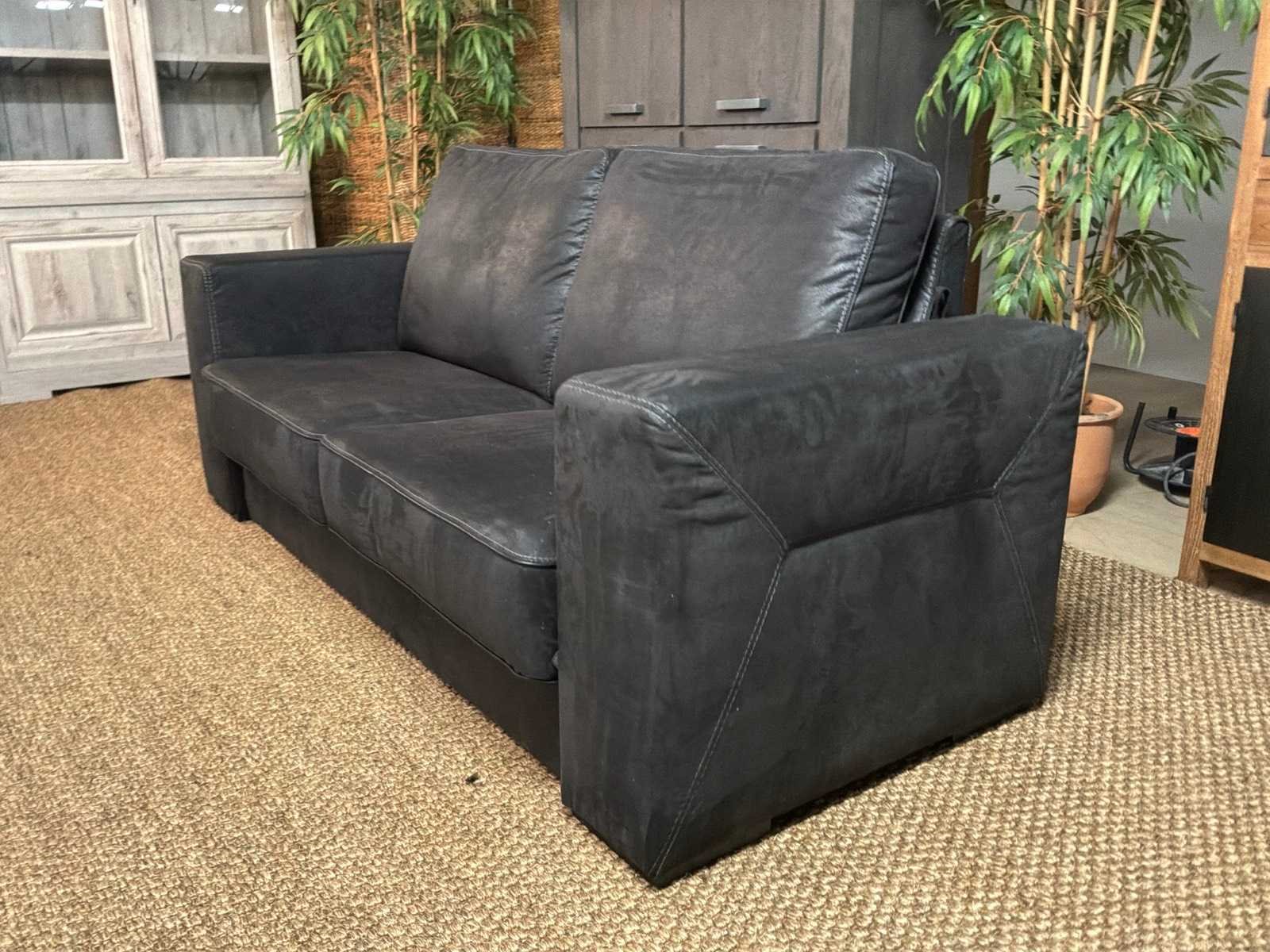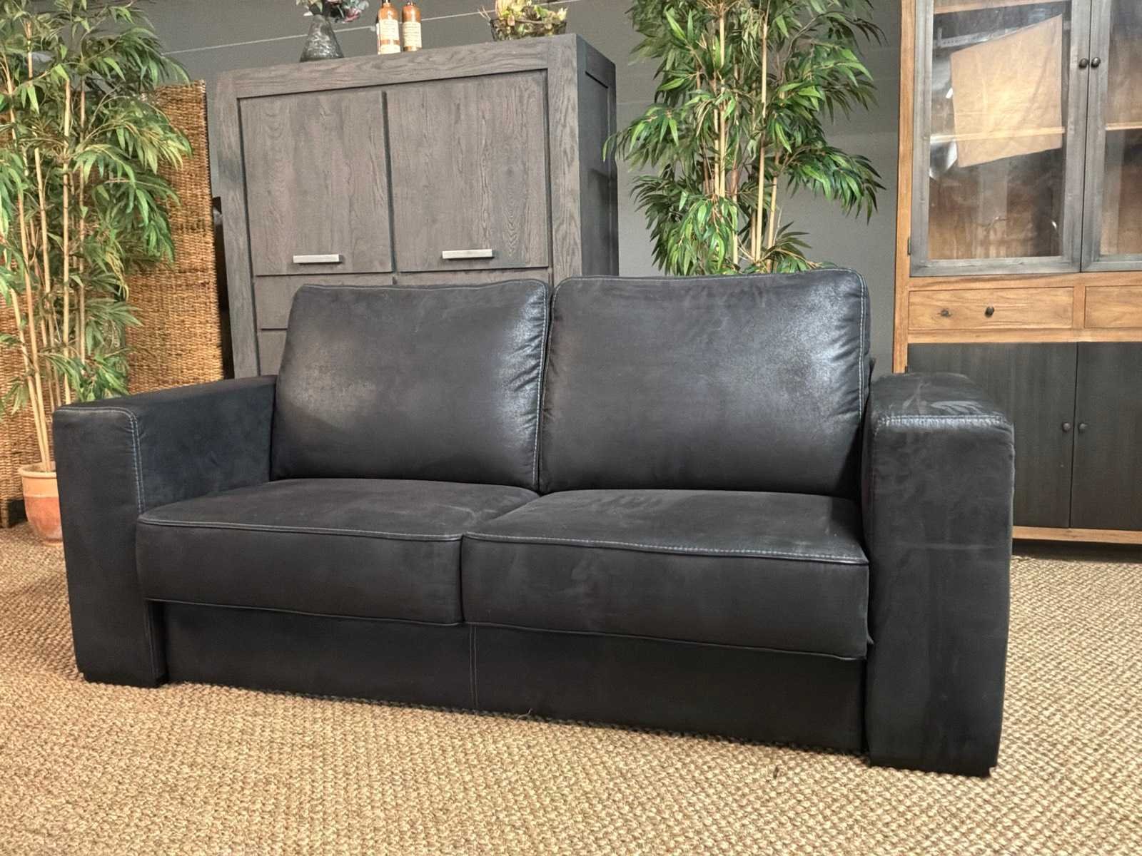 Bank beschikt over afneembare armleuningen Model: Bizas Zitplaatsen: 2.5 Kleur: Zwart Lengte: 90cm Breedte: 200cm Hoogte: 90cm Zithoogte: 42cm