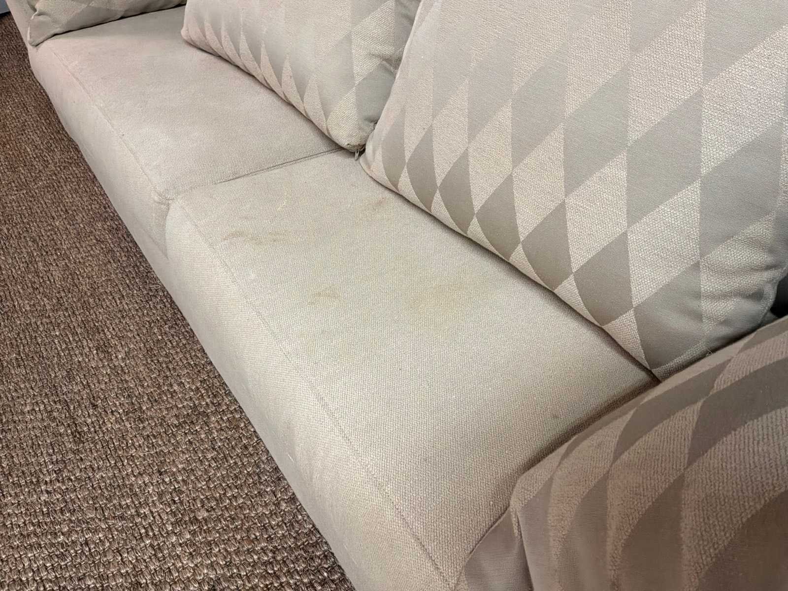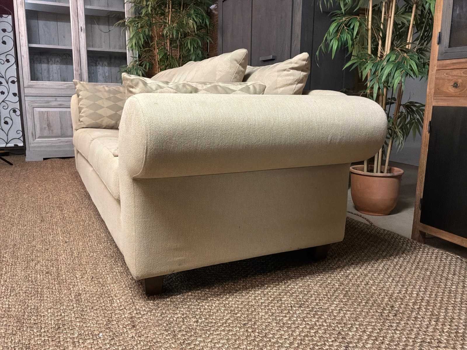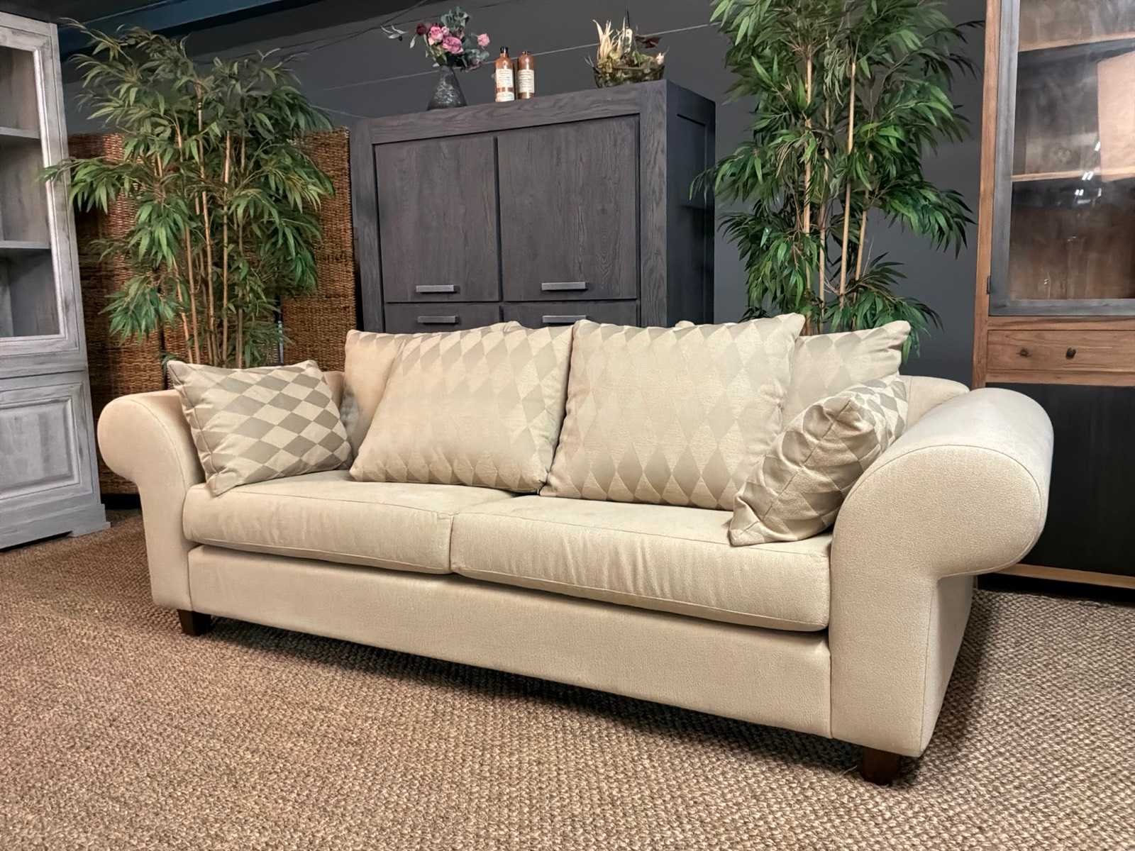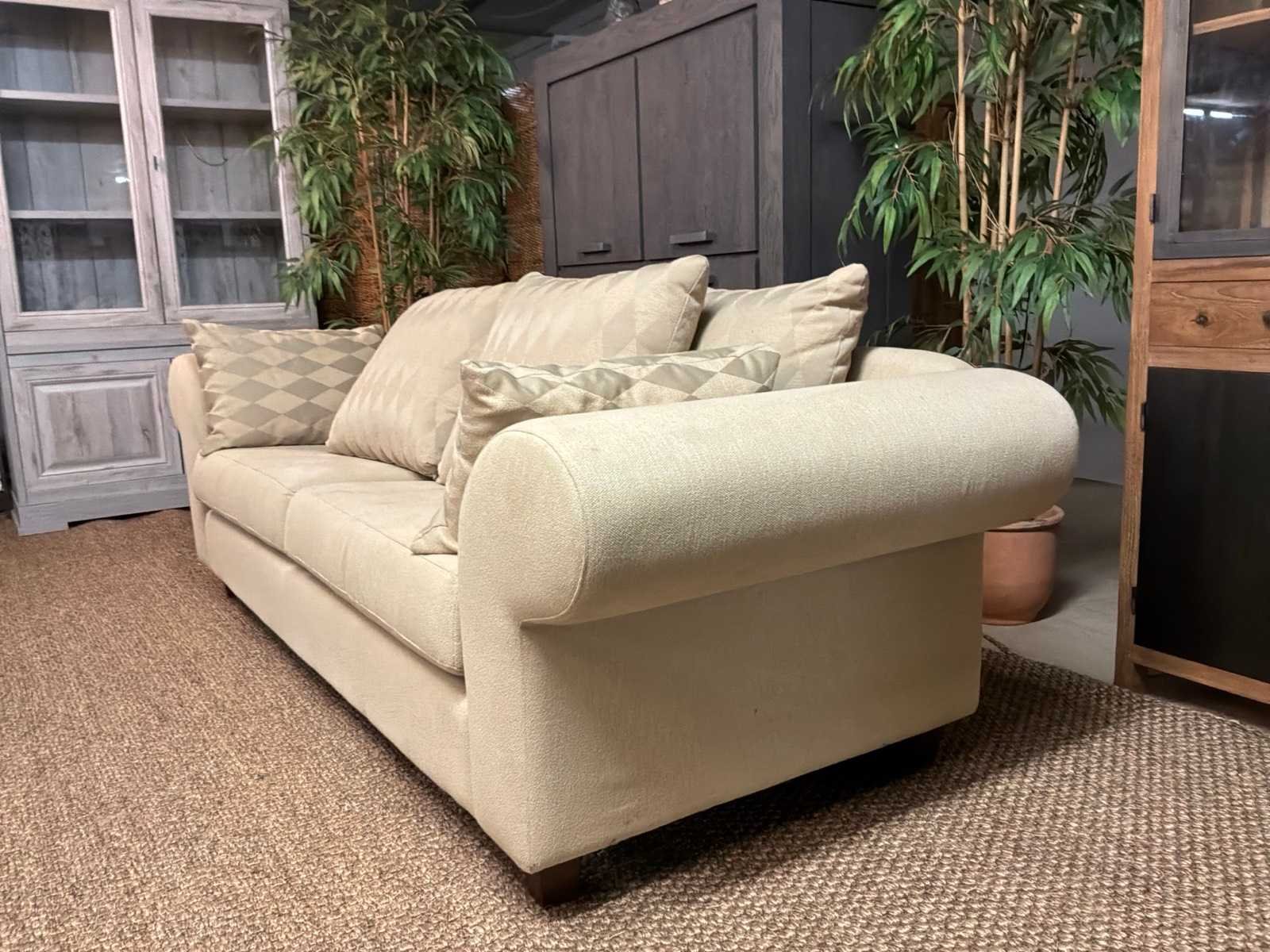 Bank bevat vlekken Model: Yava Kleur: Beige Lengte: 92cm Breedte: 250cm Hoogte: 85cm Zithoogte: 50cm