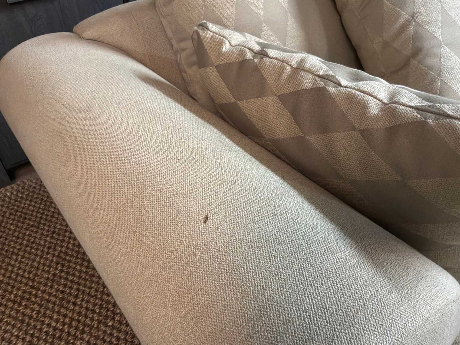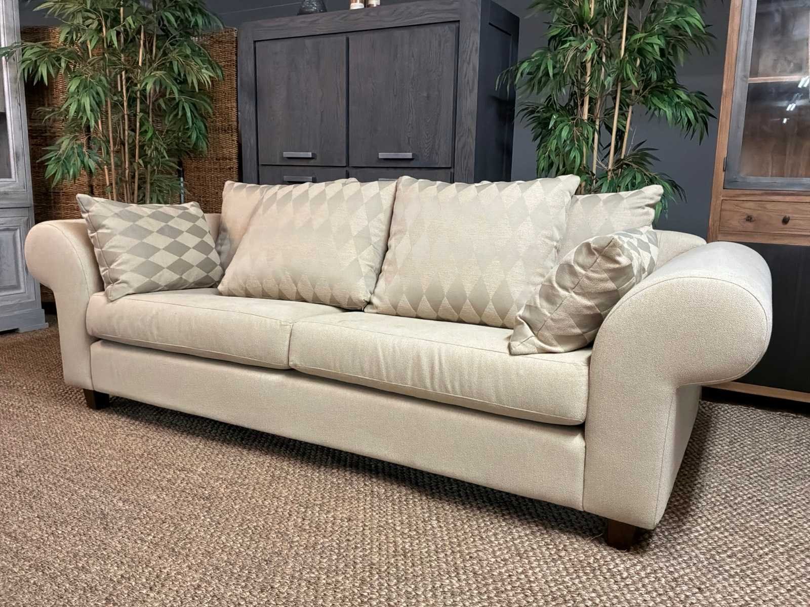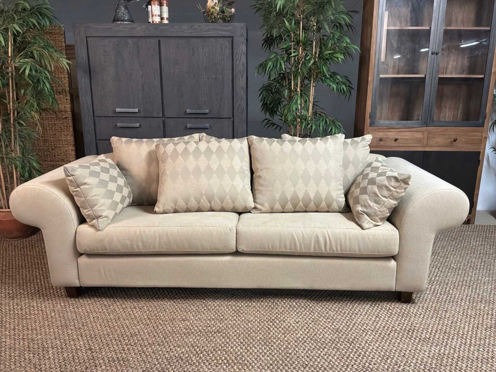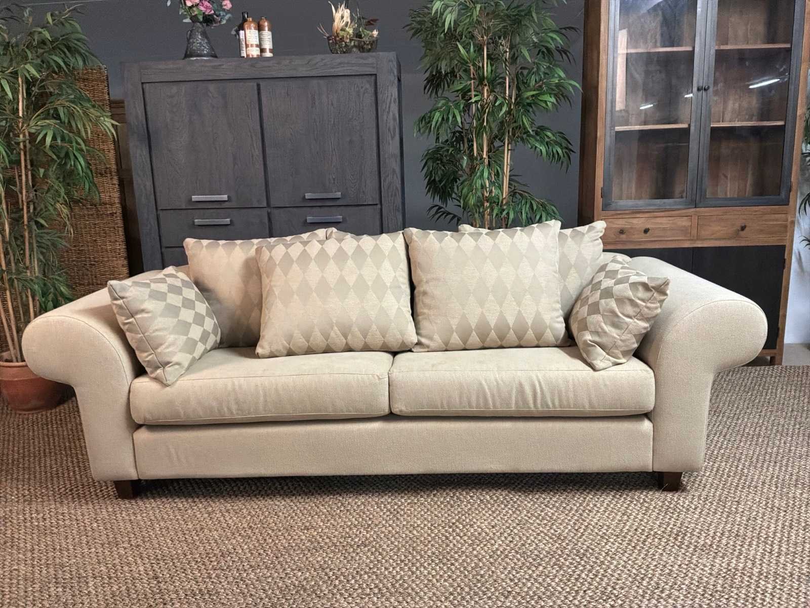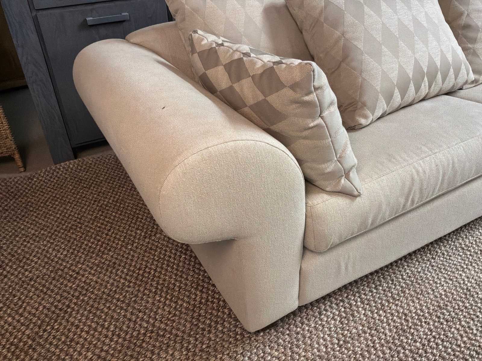 Bank bevat vlekken Model: Yava Kleur: Beige Lengte: 92cm Breedte: 250cm Hoogte: 85cm Zithoogte: 50cm
