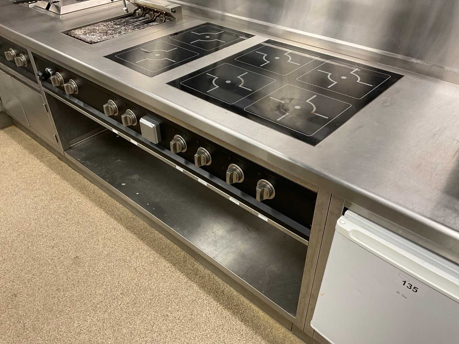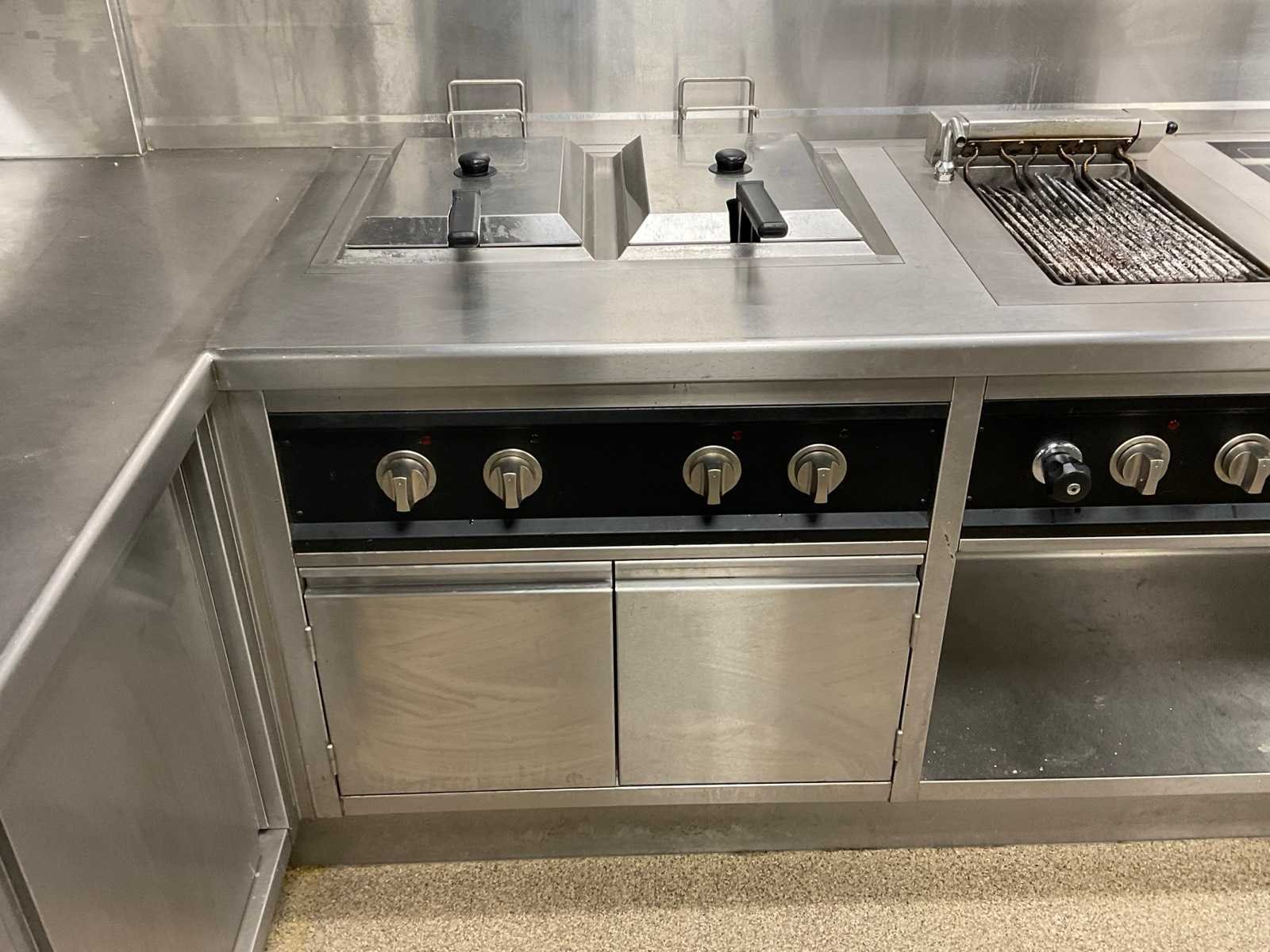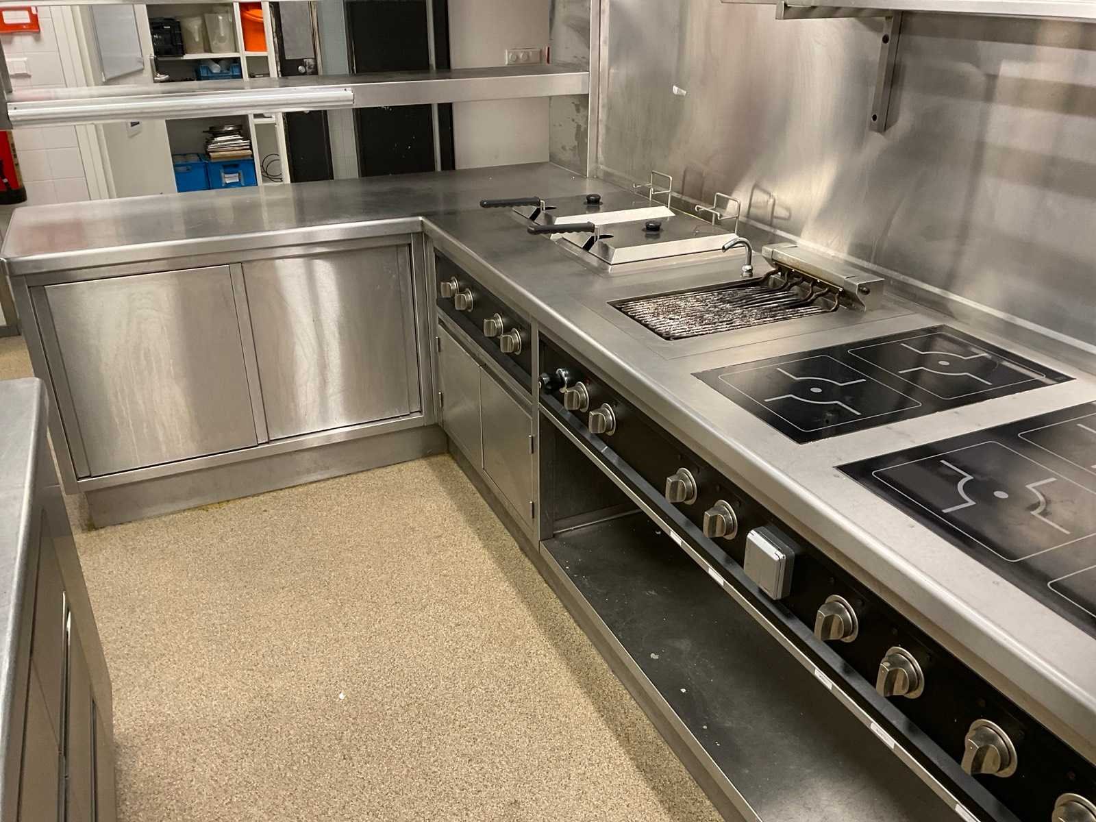 V.v. 6-pits inductiekookplaat, lavasteengrill, dubbele friteuse, warmhoudkast en brug Elektrisch verwarmd: true Totale afmeting L: 4700mm Totale afmeting Breedte: 2000mm Totale afmeting Hoogte: 920mm