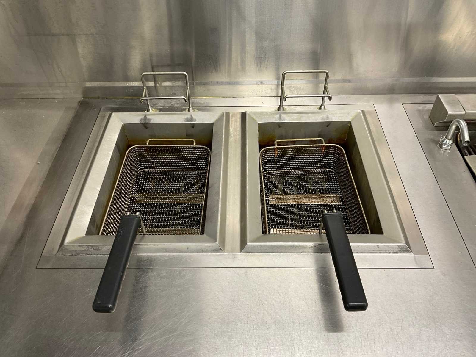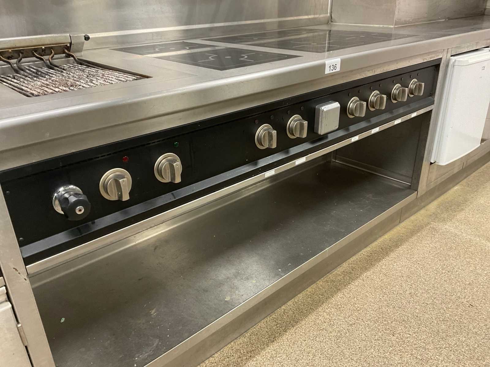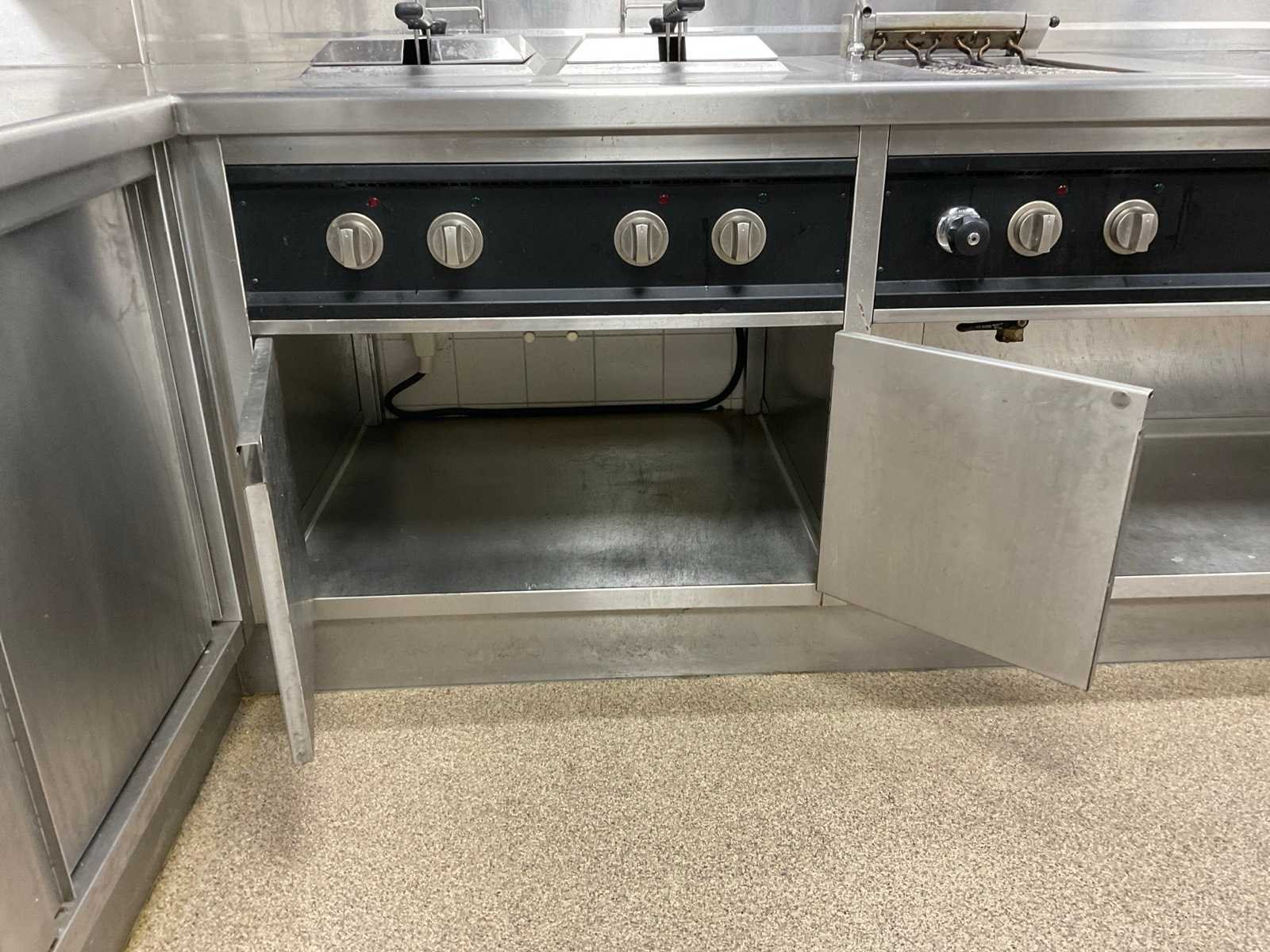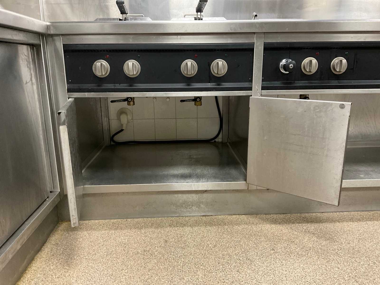 V.v. 6-pits inductiekookplaat, lavasteengrill, dubbele friteuse, warmhoudkast en brug Elektrisch verwarmd: true Totale afmeting L: 4700mm Totale afmeting Breedte: 2000mm Totale afmeting Hoogte: 920mm