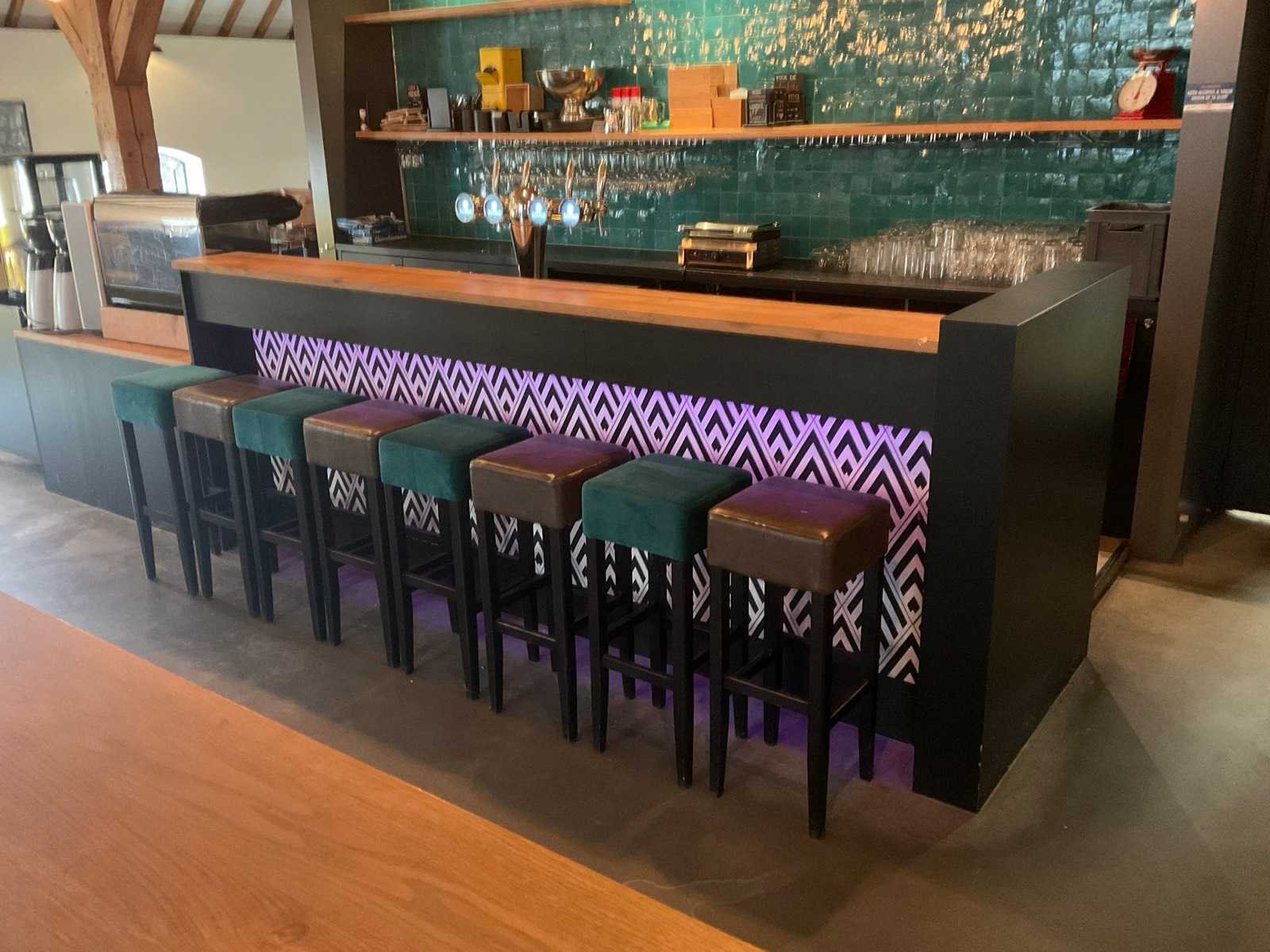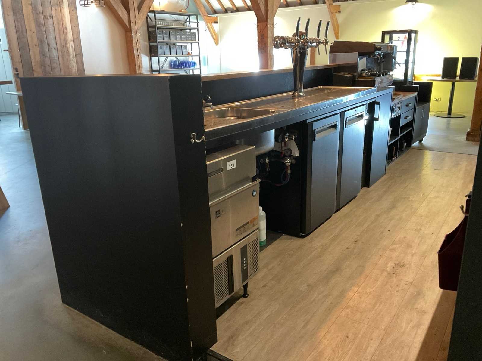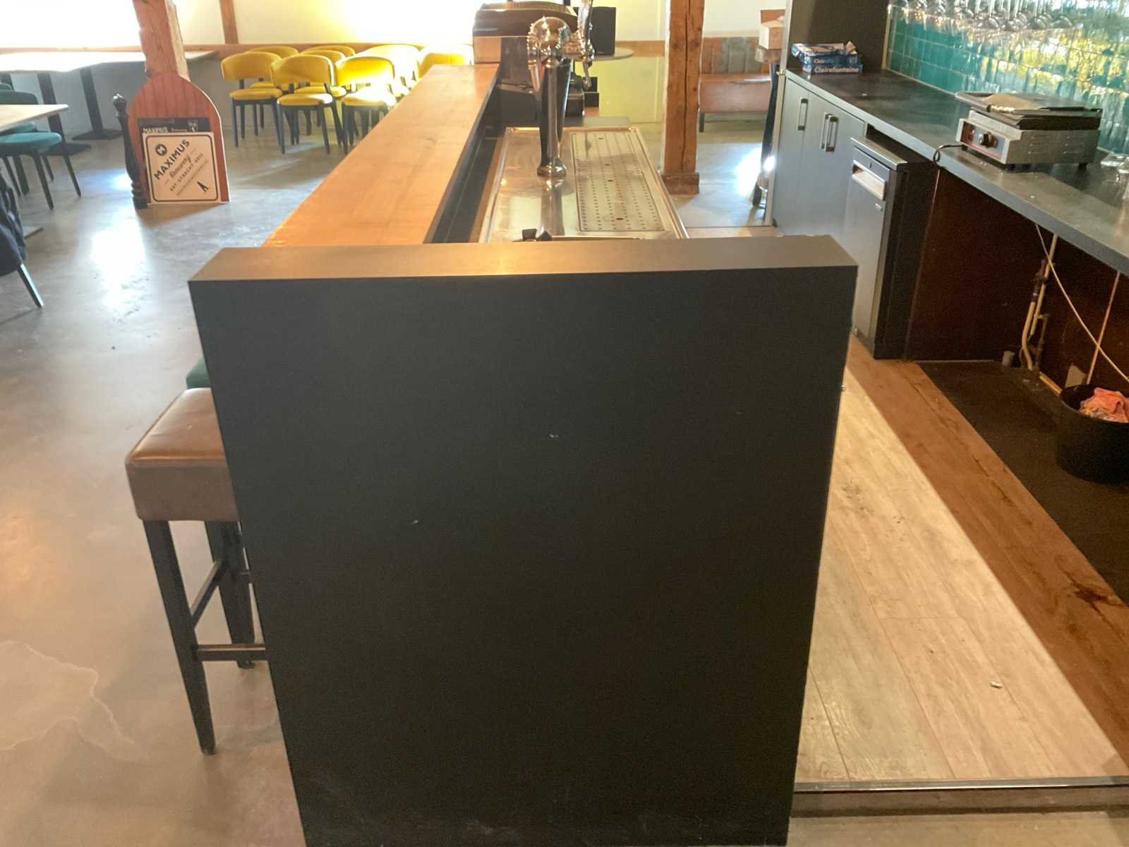 Met tapzuil, Gamko fustenkoeling, lekblad met spoelbak en kraan, 8 barkrukken en verlichting op afstandsbediening Totale afmeting L: 4650mm Totale afmeting Breedte: 1000mm Totale afmeting Hoogte: 1250mm